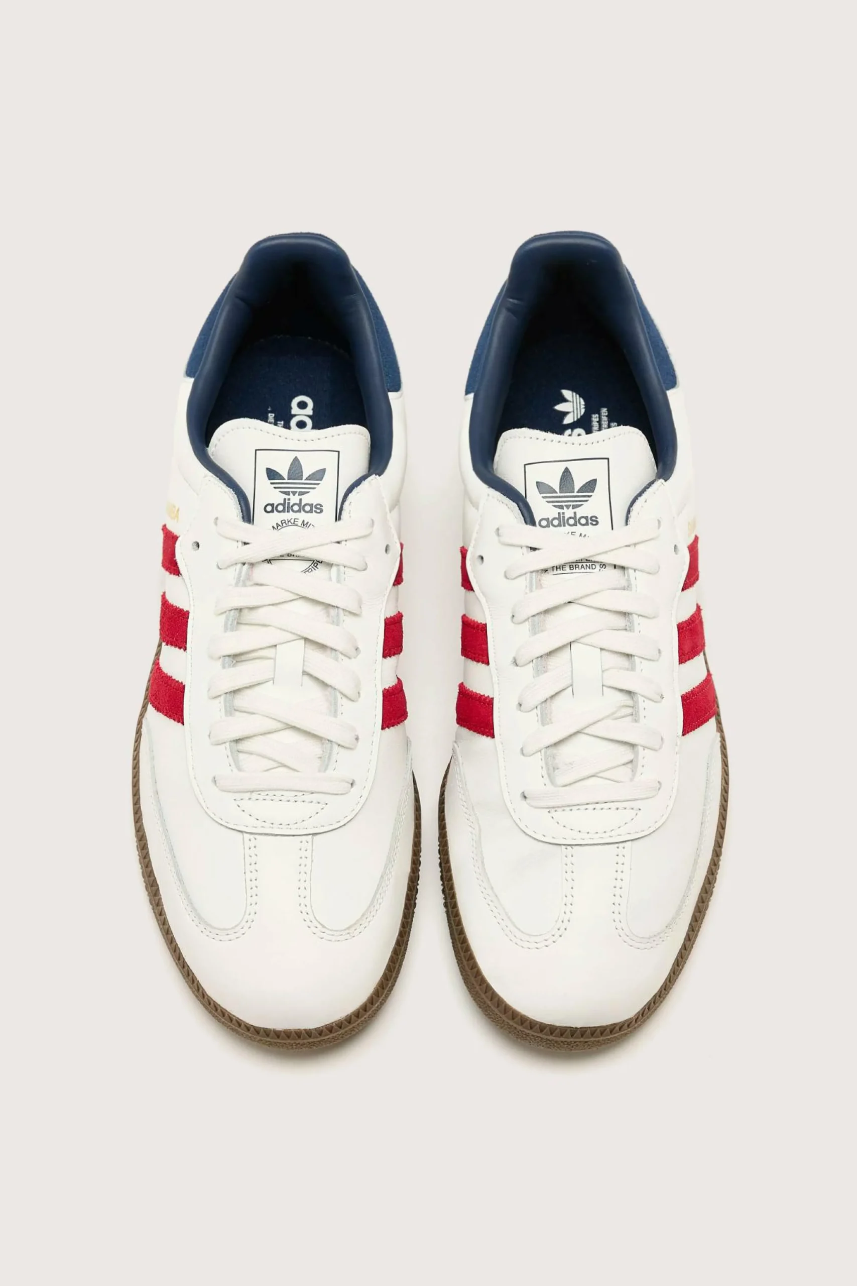 Les sneakers Adidas Samba OG présentent une tige en suède et en cuir avec un bout renforcé et des accents de marque emblématiques.