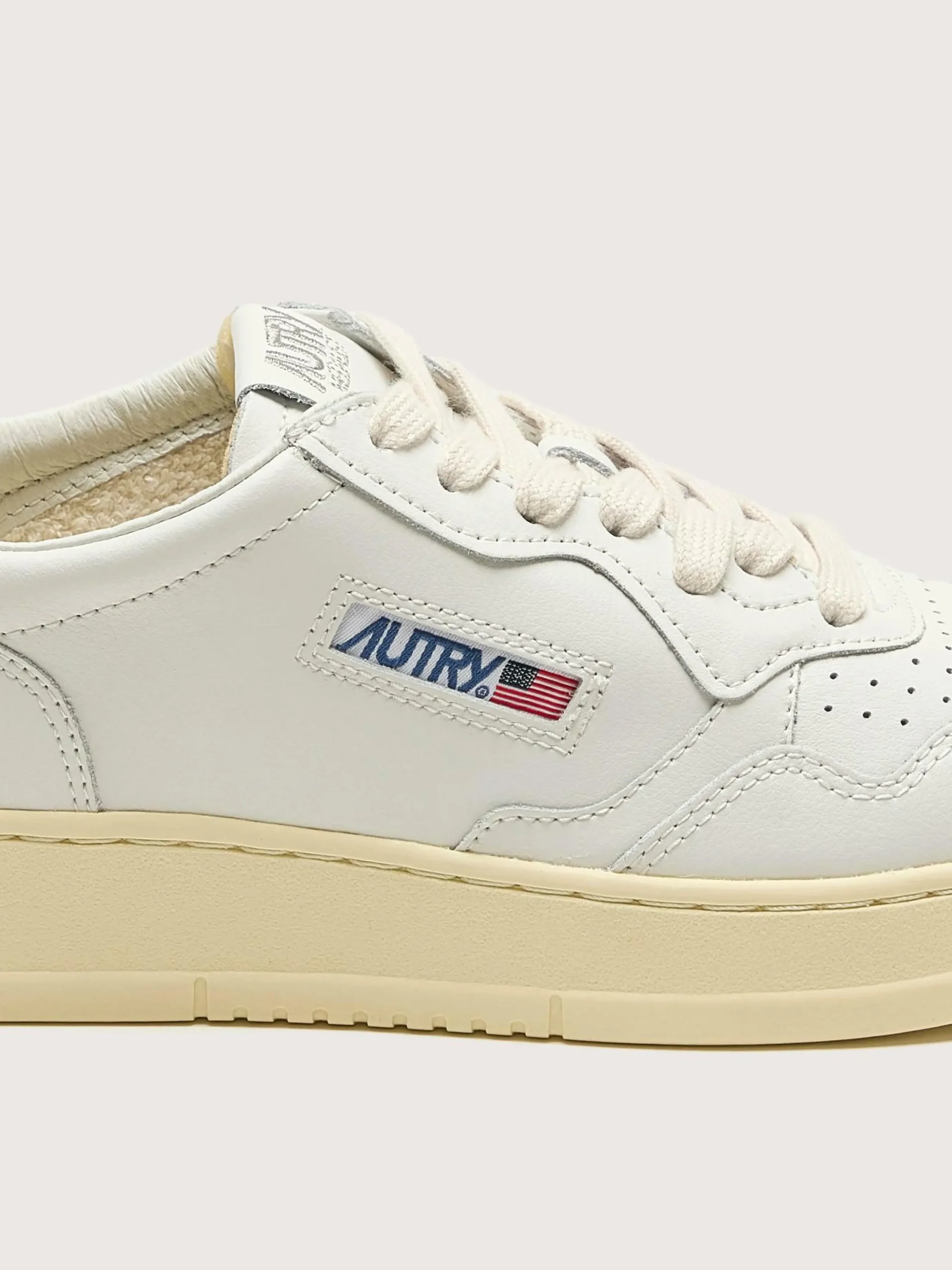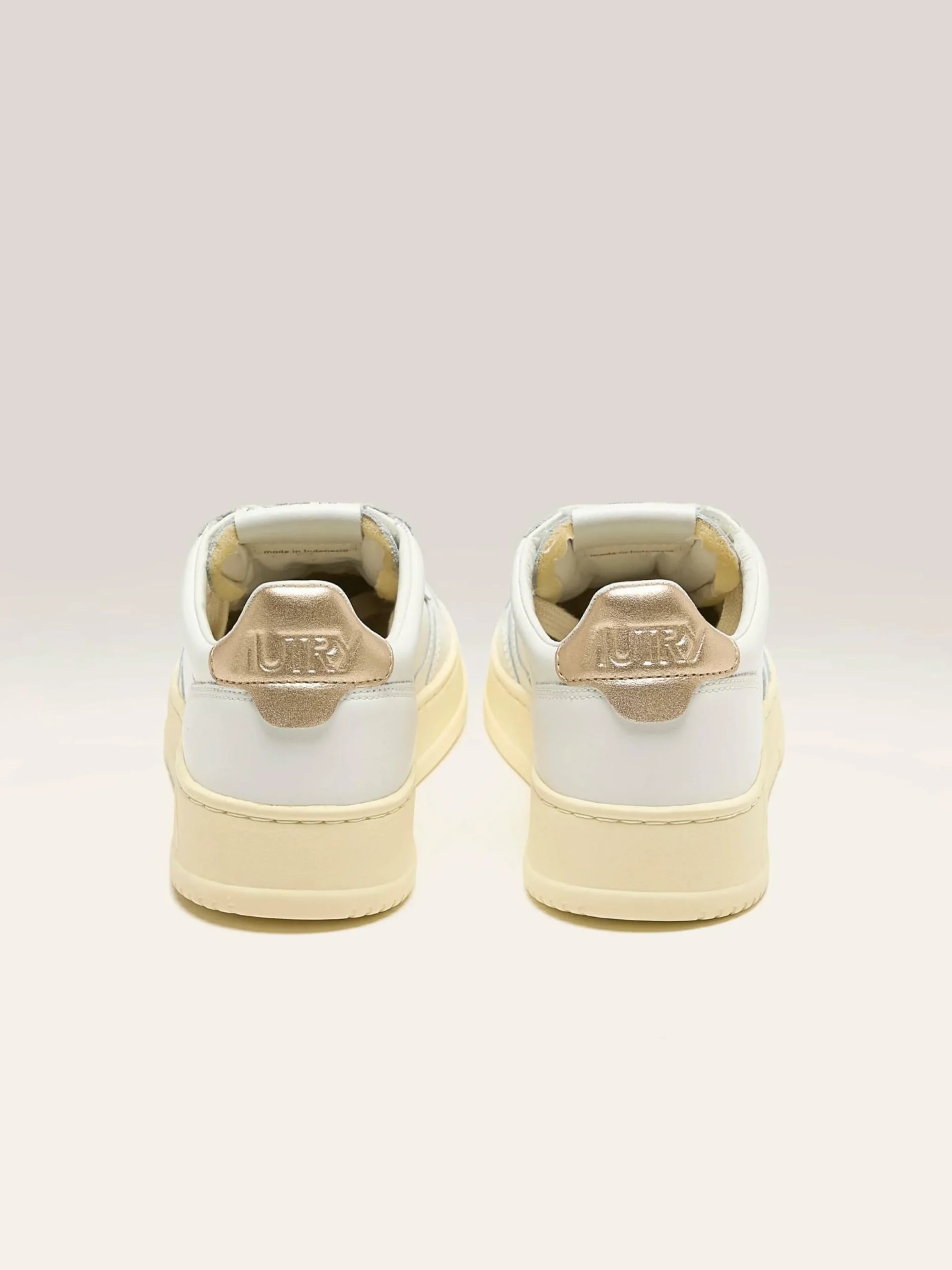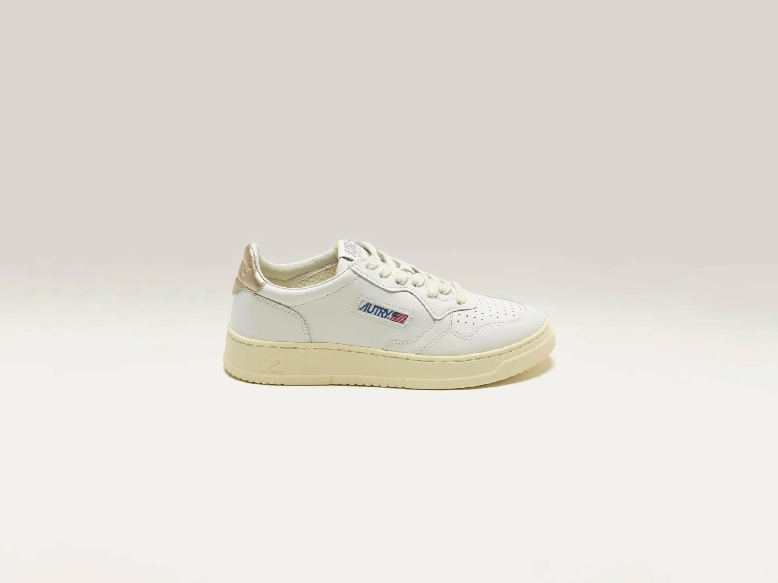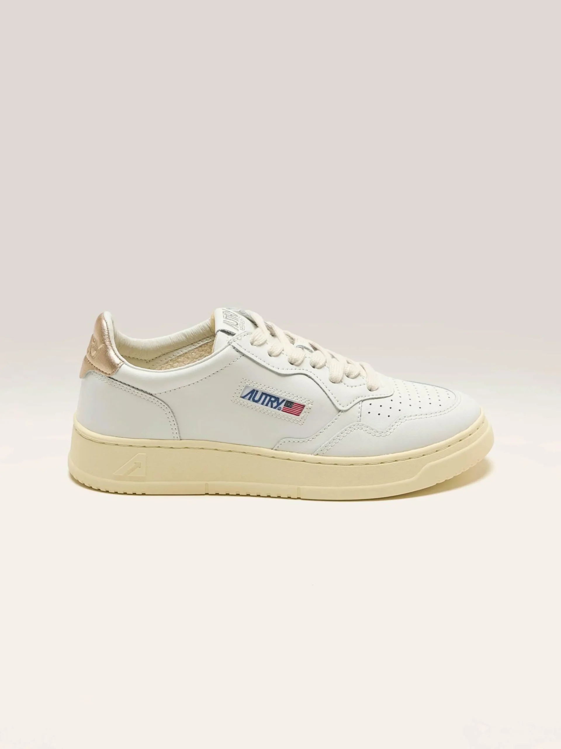 Les sneakers Autry Medalist Low présentent une silhouette sportive en cuir blanc avec une languette de talon en cuir doré.