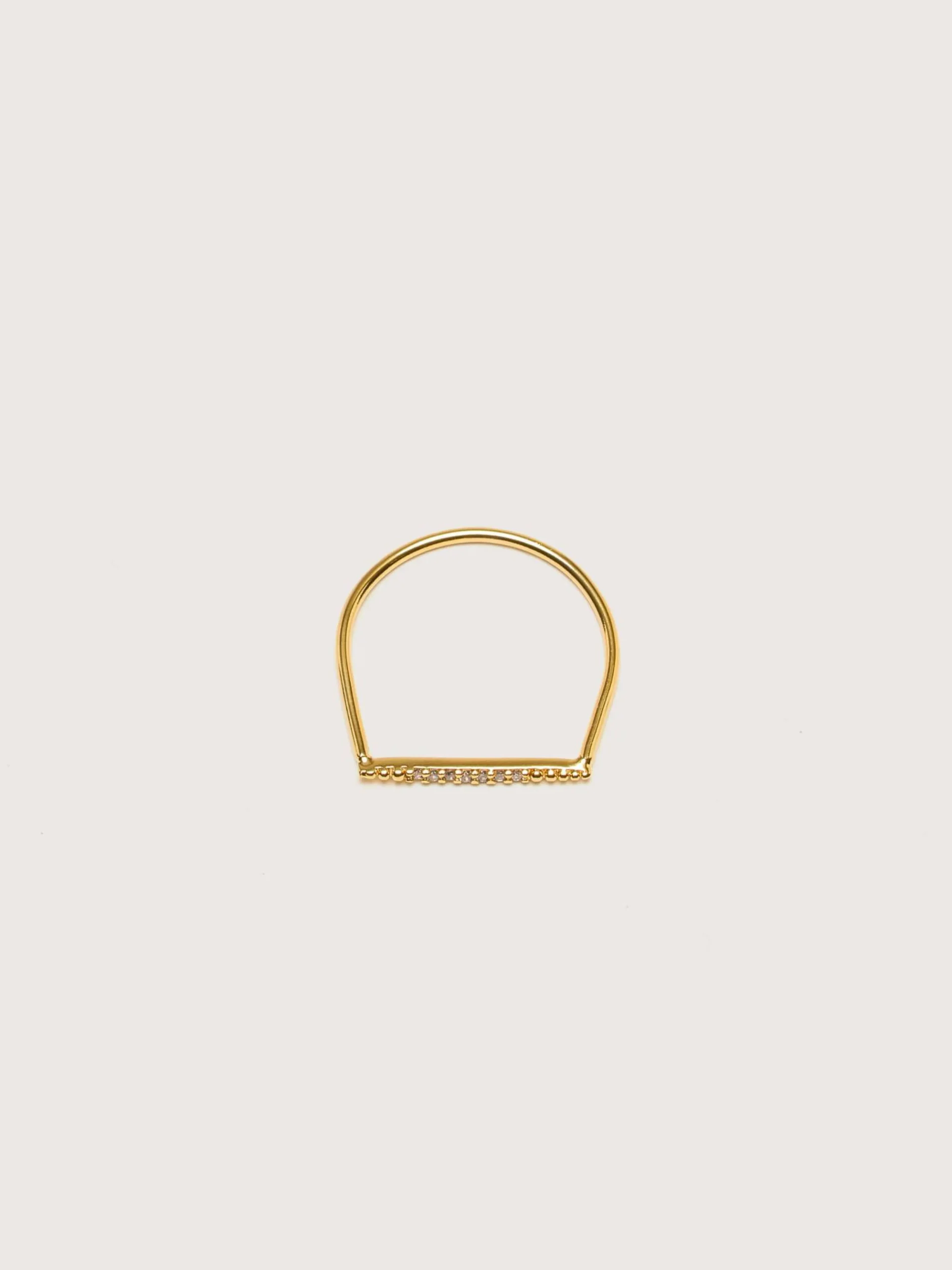 La bague ouverte Imai de BDM Studio est réglable et fabriquée en plaqué or 24k et incrustée de strass Swarovski.