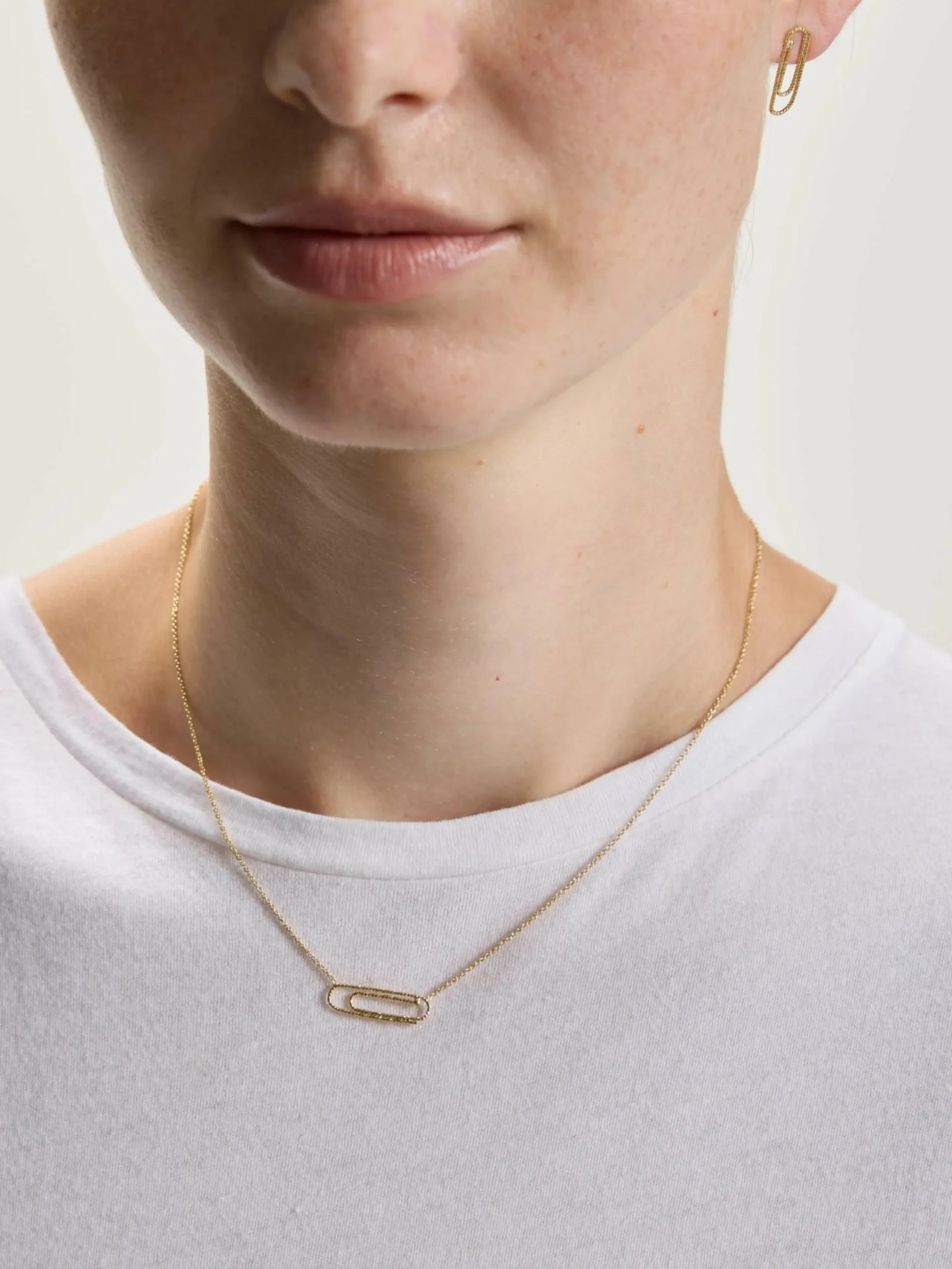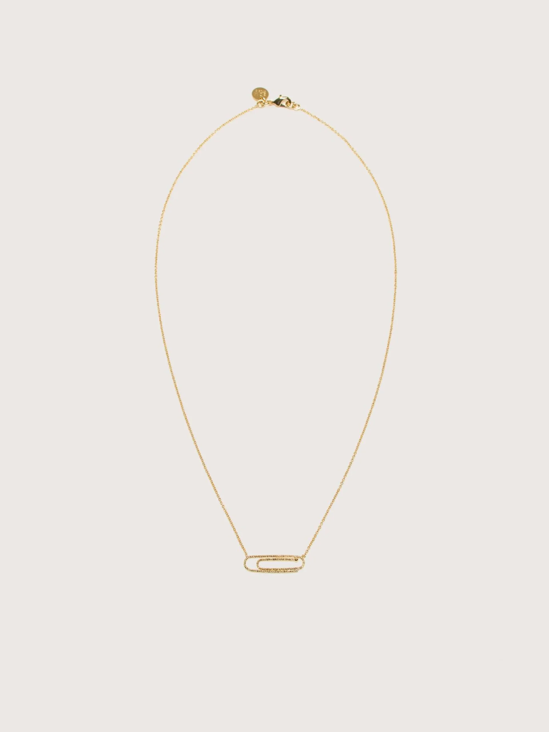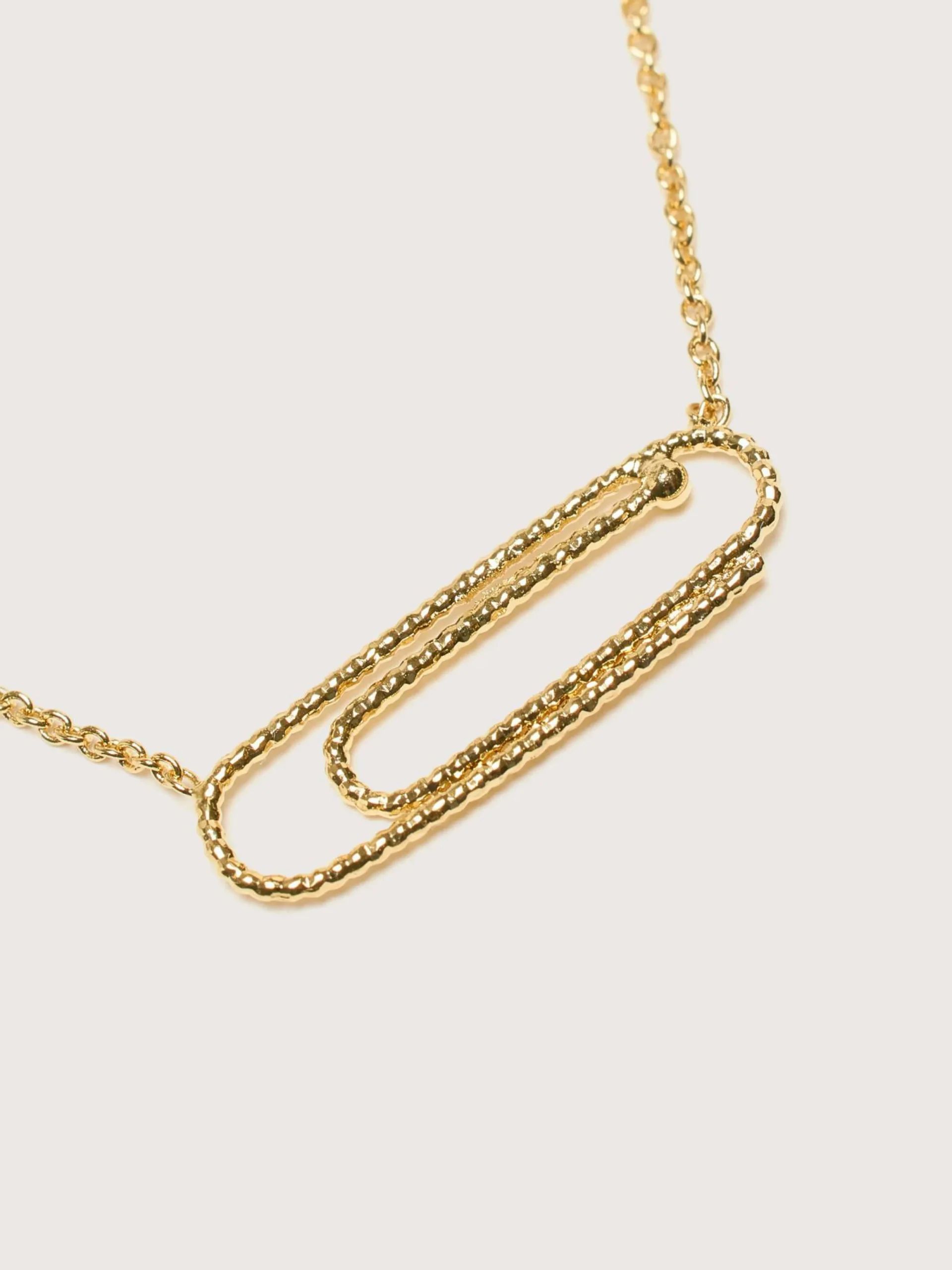 Le collier Jane de BDM Studio est une chaîne délicate plaquée or 24k avec un pendentif inspiré d’un trombone.