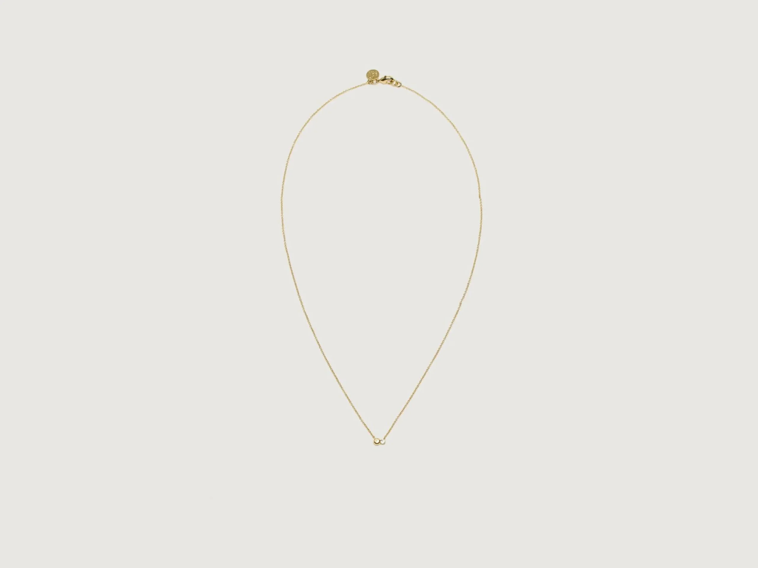 Le long collier Zéphyr de BDM Studio est une chaîne réglable en plaqué or 24k rehaussée d’un strass Swarovski au-dessus d’un pendentif à maillons.