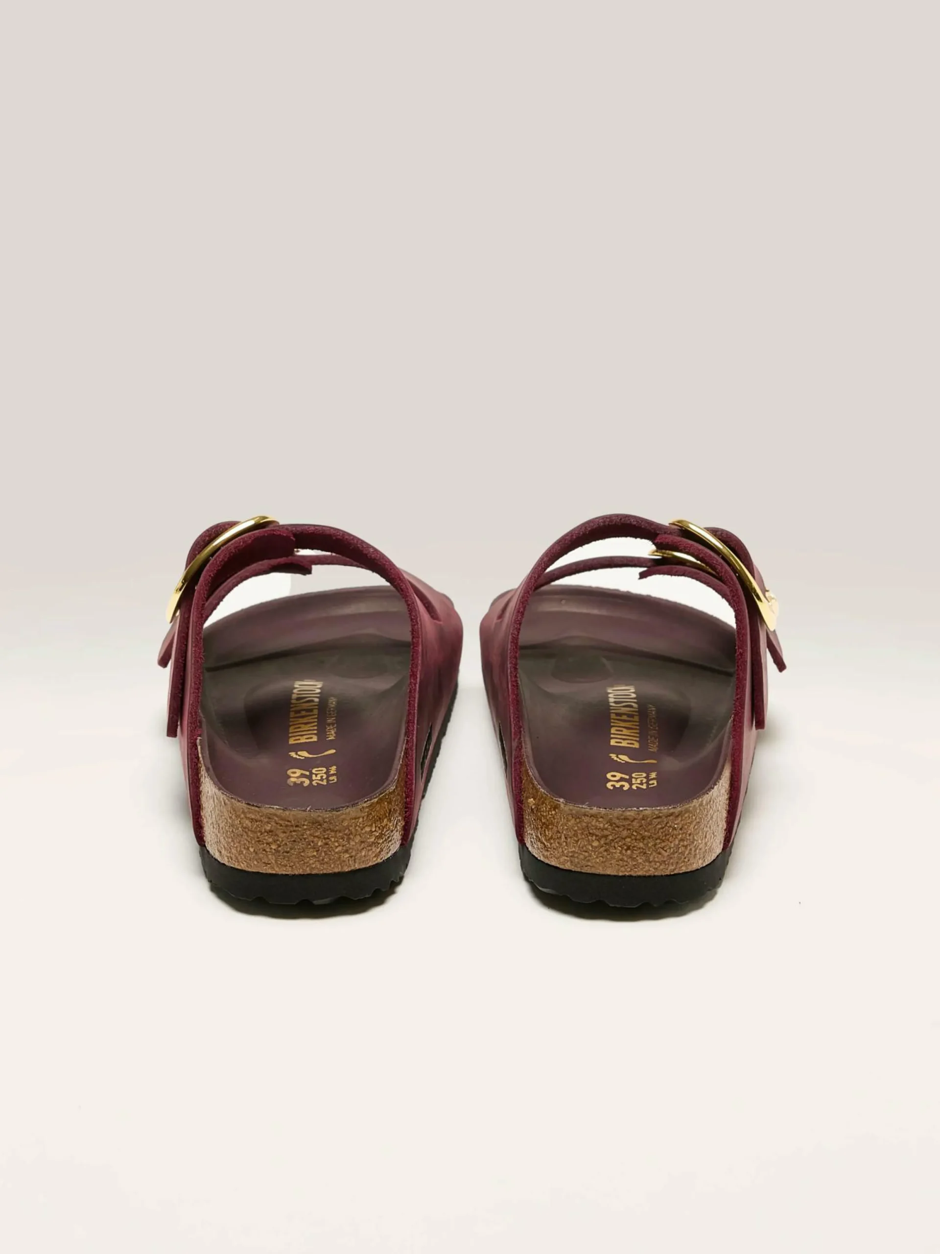 Les sandales Birkenstock Arizona Big Buckle sont dotées de deux grandes boucles artillon, d’une doublure en cuir souple et d’une épaisse tige en cuir nubuck huilé à bords bruts.