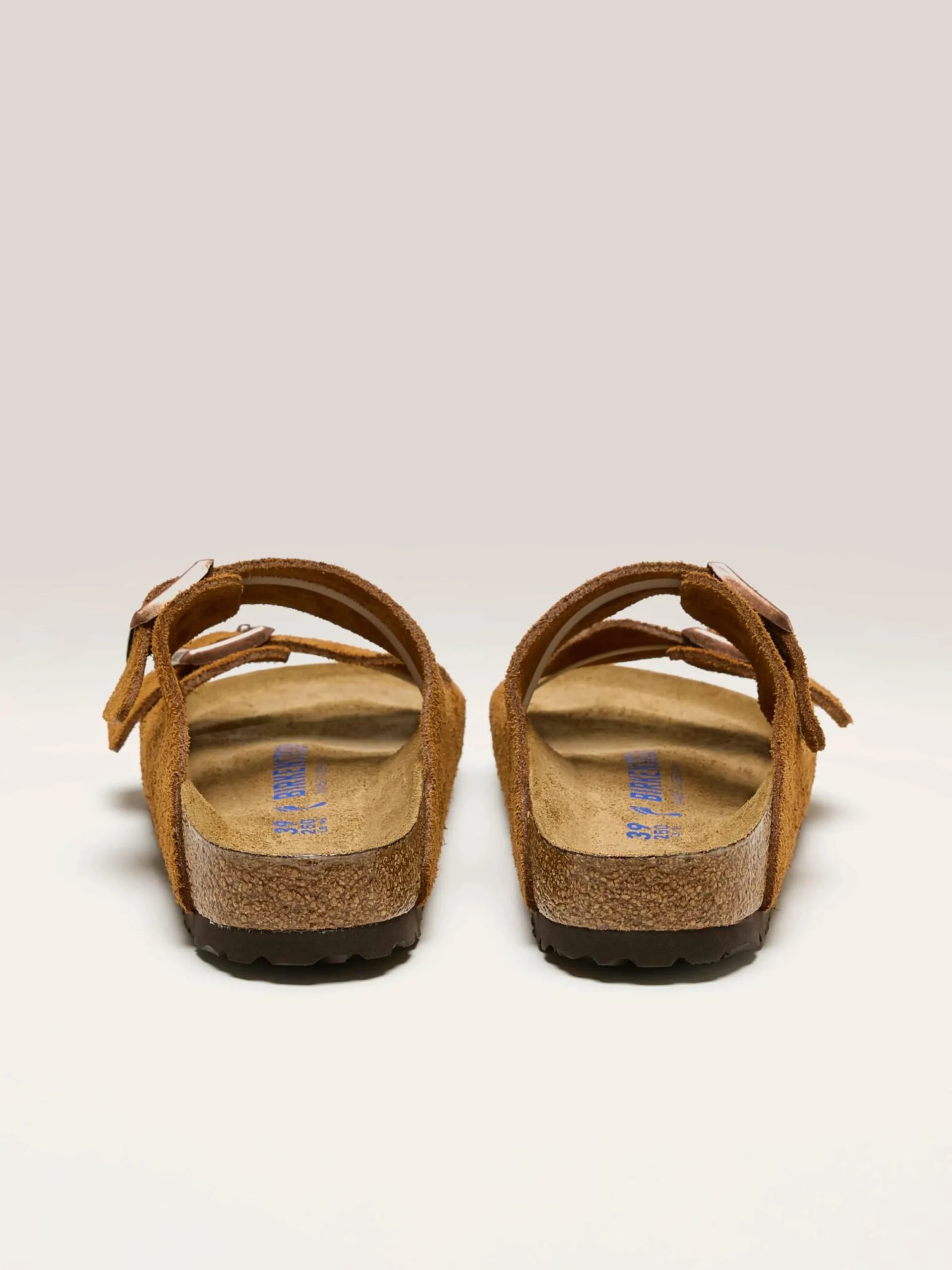 Les sandales Birkenstock Arizona Soft Footbed épousent votre pied avec un dessus et une semelle intérieure en suède souple, un lit de pied anatomique emblématique et des sangles à boucles métalliques.