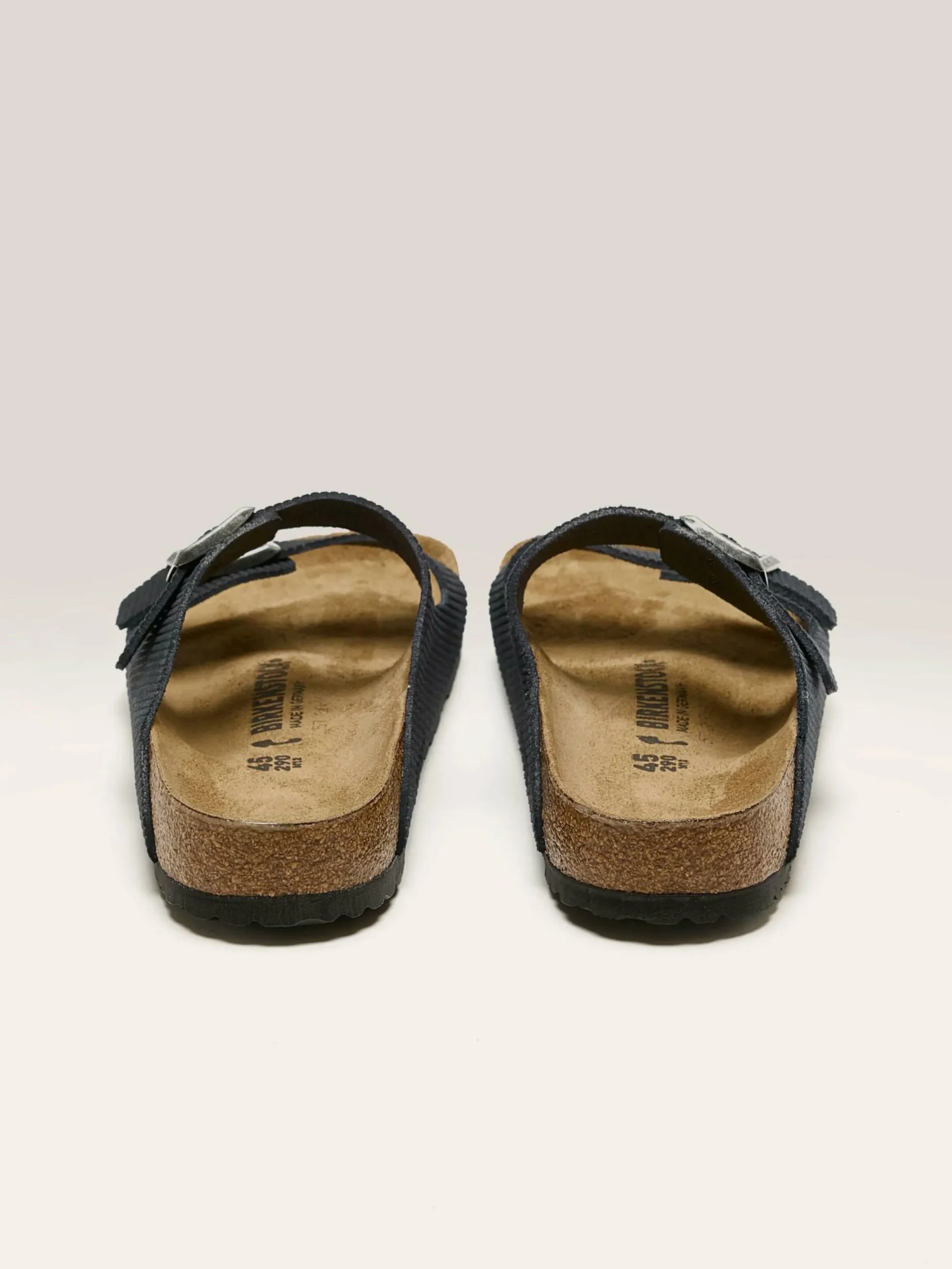 Les sandales Birkenstock Arizona Suede Embossed sont dotées d’une tige en suède souple texturée en velours côtelé et d’une semelle en liège.