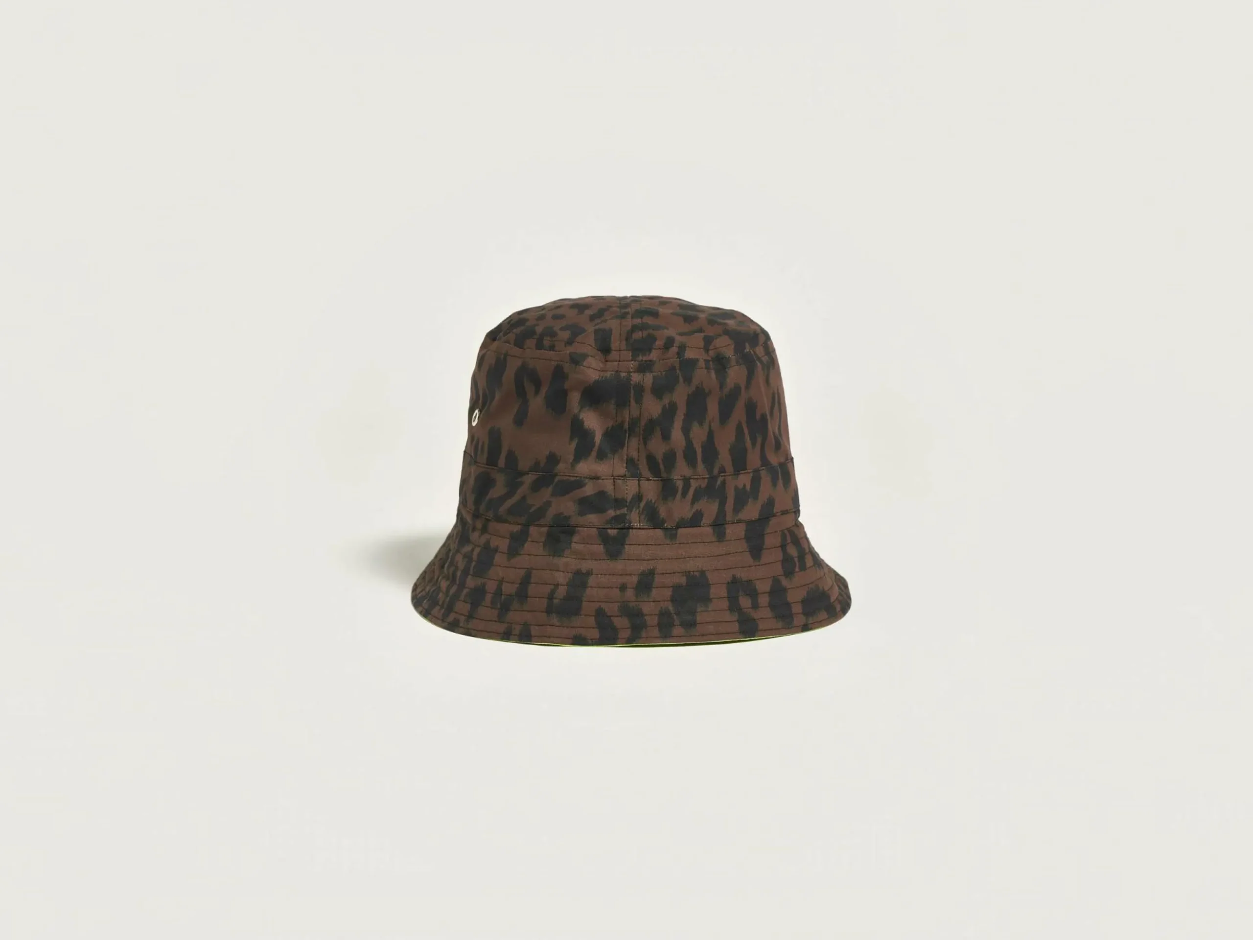 Bob réversible imprimé léopard à bord surpiqué avec poche latérale.