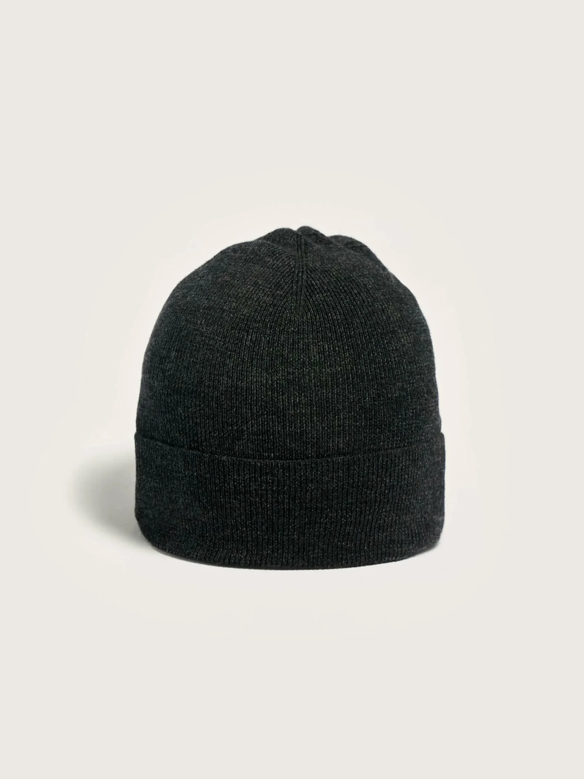 Bonnet côtelé classique en laine mérinos superfine noire.