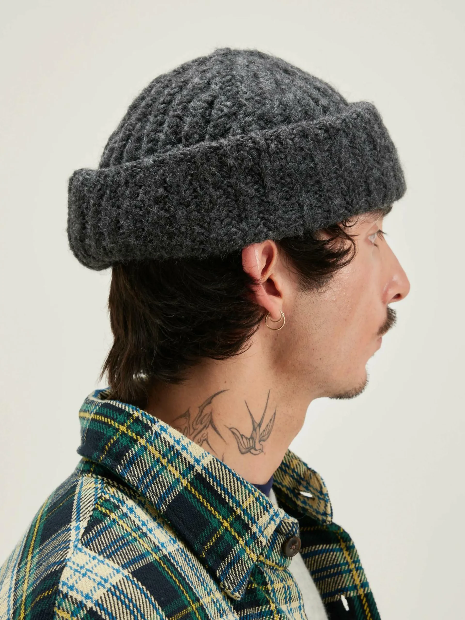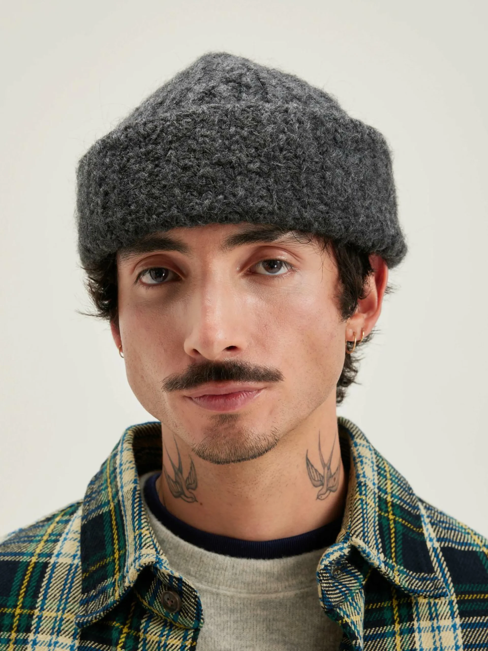 Bonnet de pêcheur tricoté de couleur gris moyen.