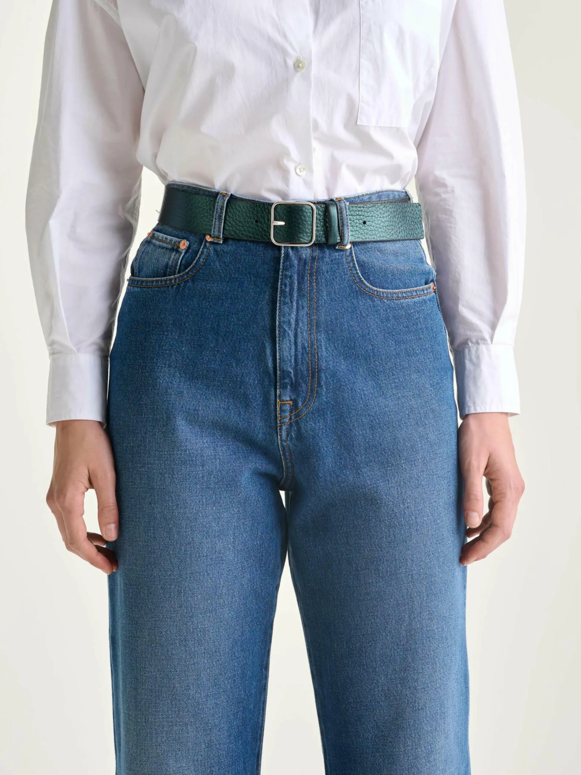 Ceinture classique en cuir grainé couleur vert Hunter.