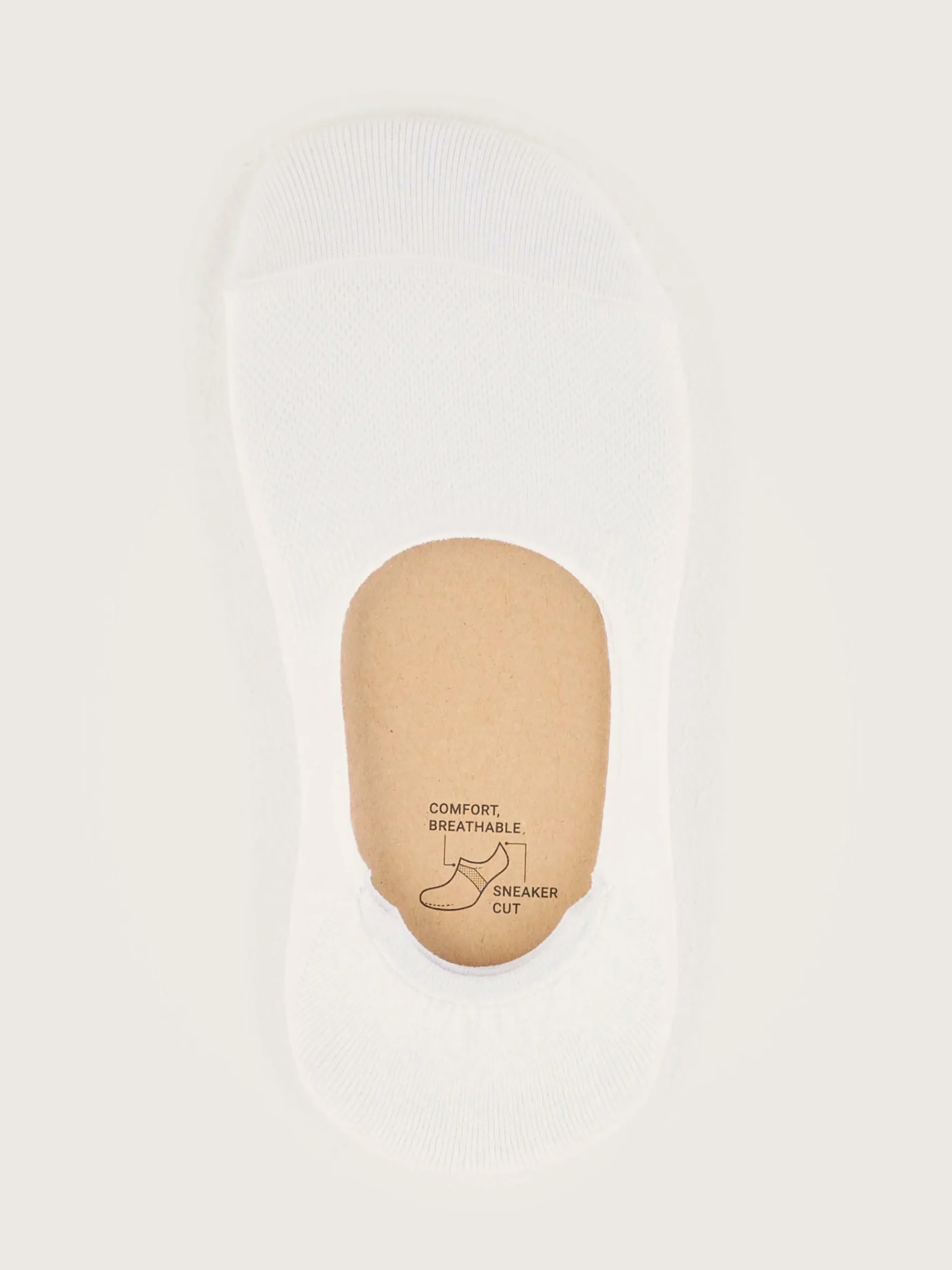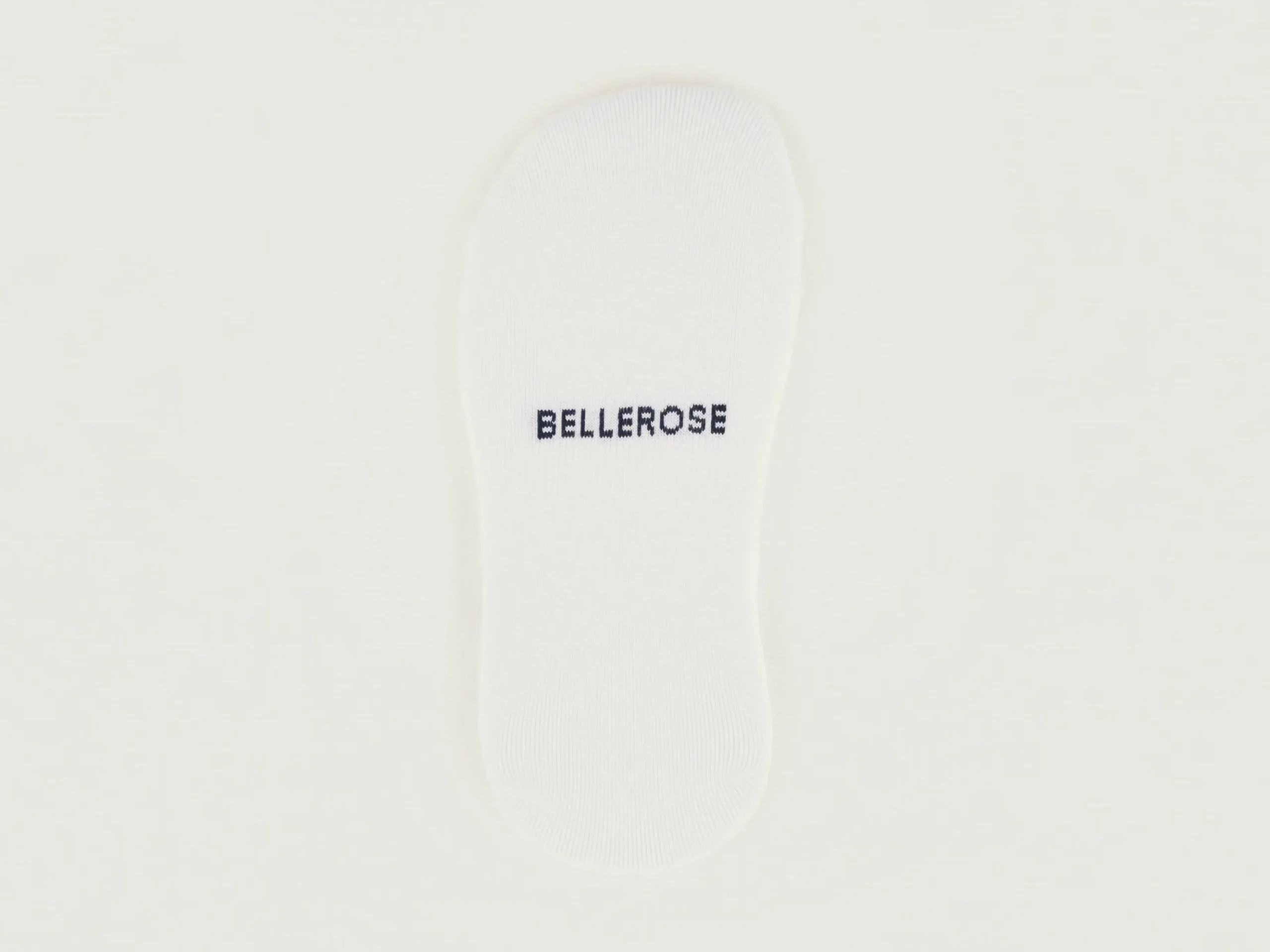 Chaussettes courtes blanches en tricot côtelé autour du pied et gomme antidérapante derrière le talon.