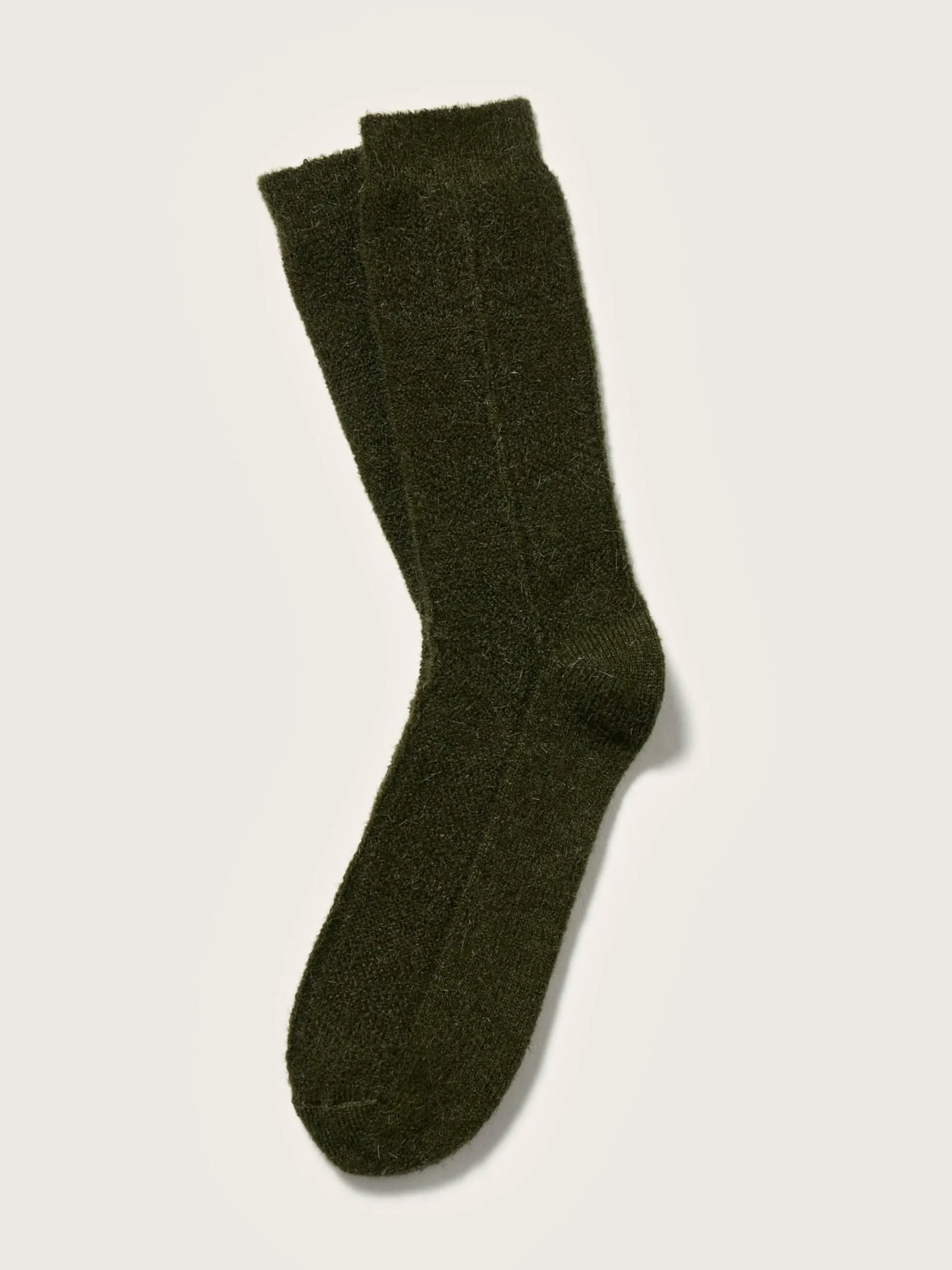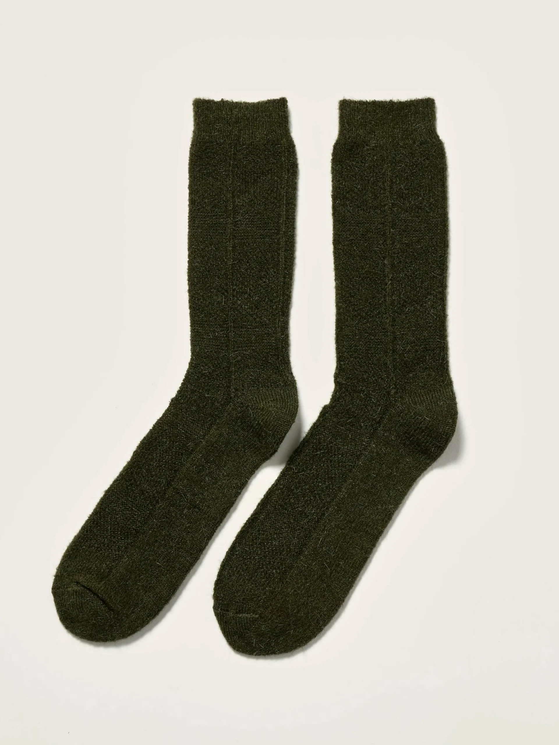 Chaussettes classiques de couleur verte tricotées en maille fantaisie avec motif à carreaux.