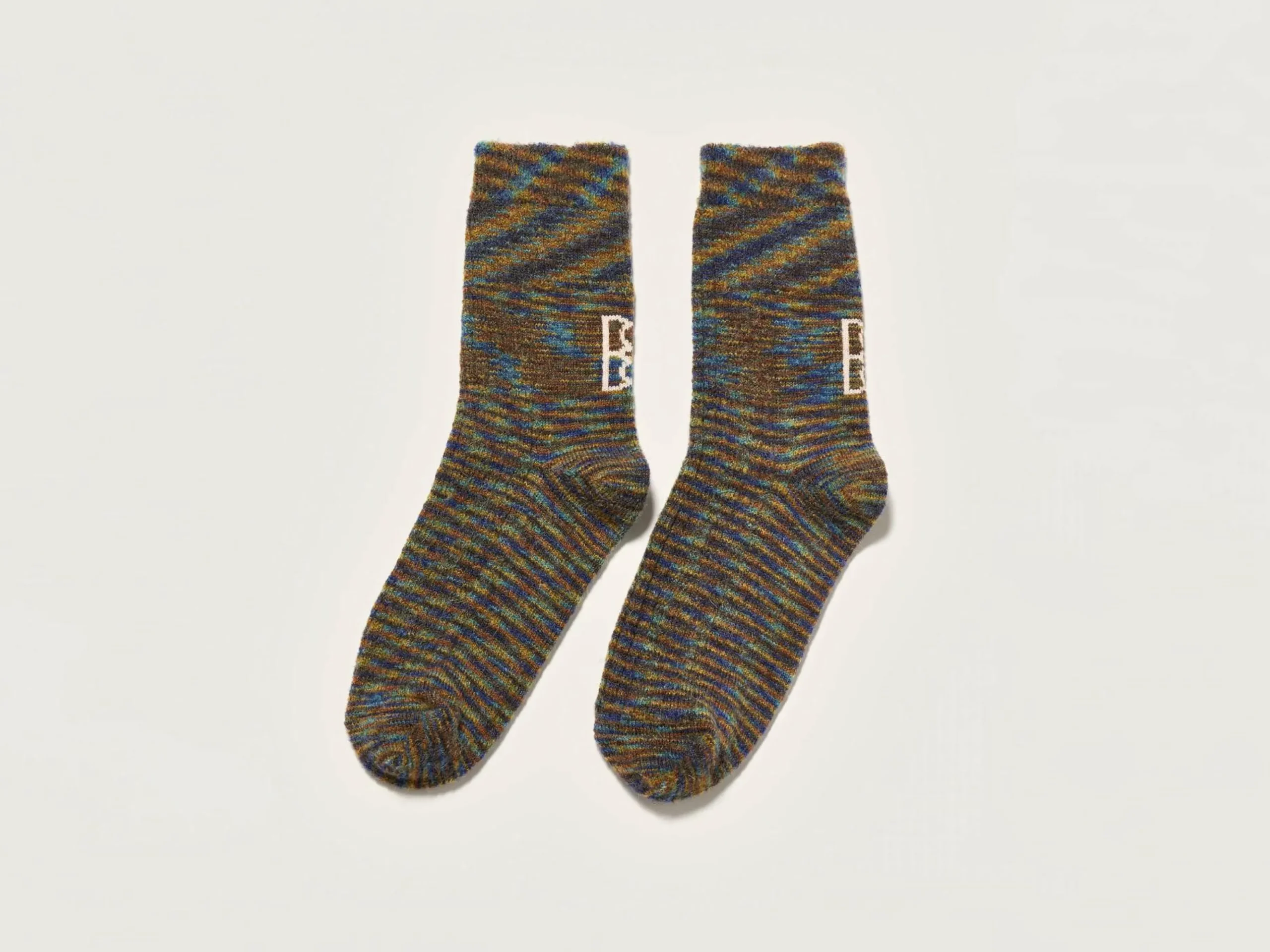 Chaussettes classiques en fil imprimé avec logo Bellerose contrasté rose clair sur les chevilles.