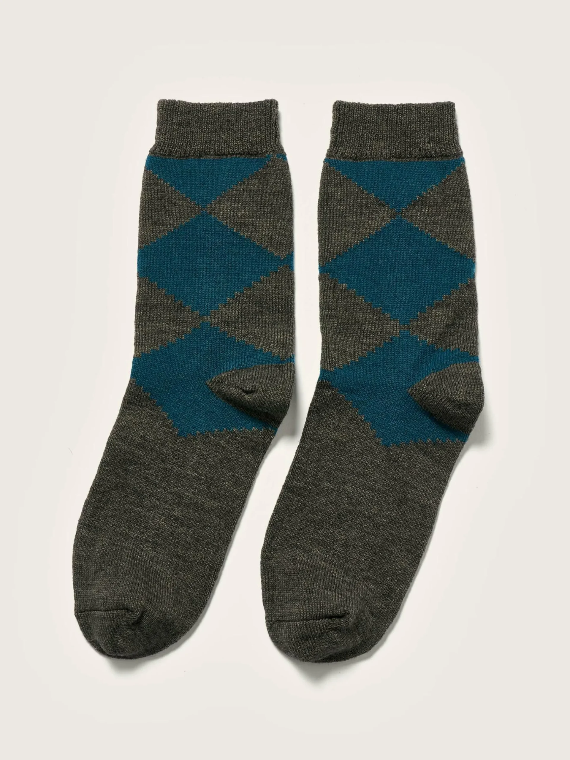 Chaussettes classiques en gris moyen avec motif de losanges.