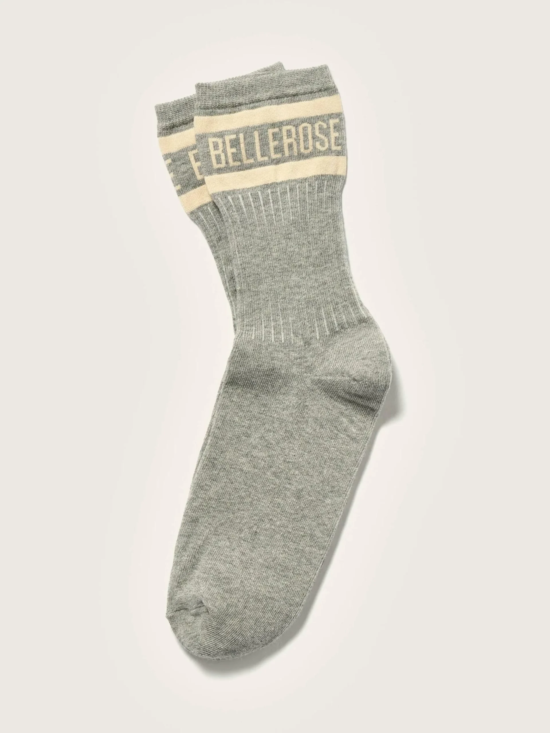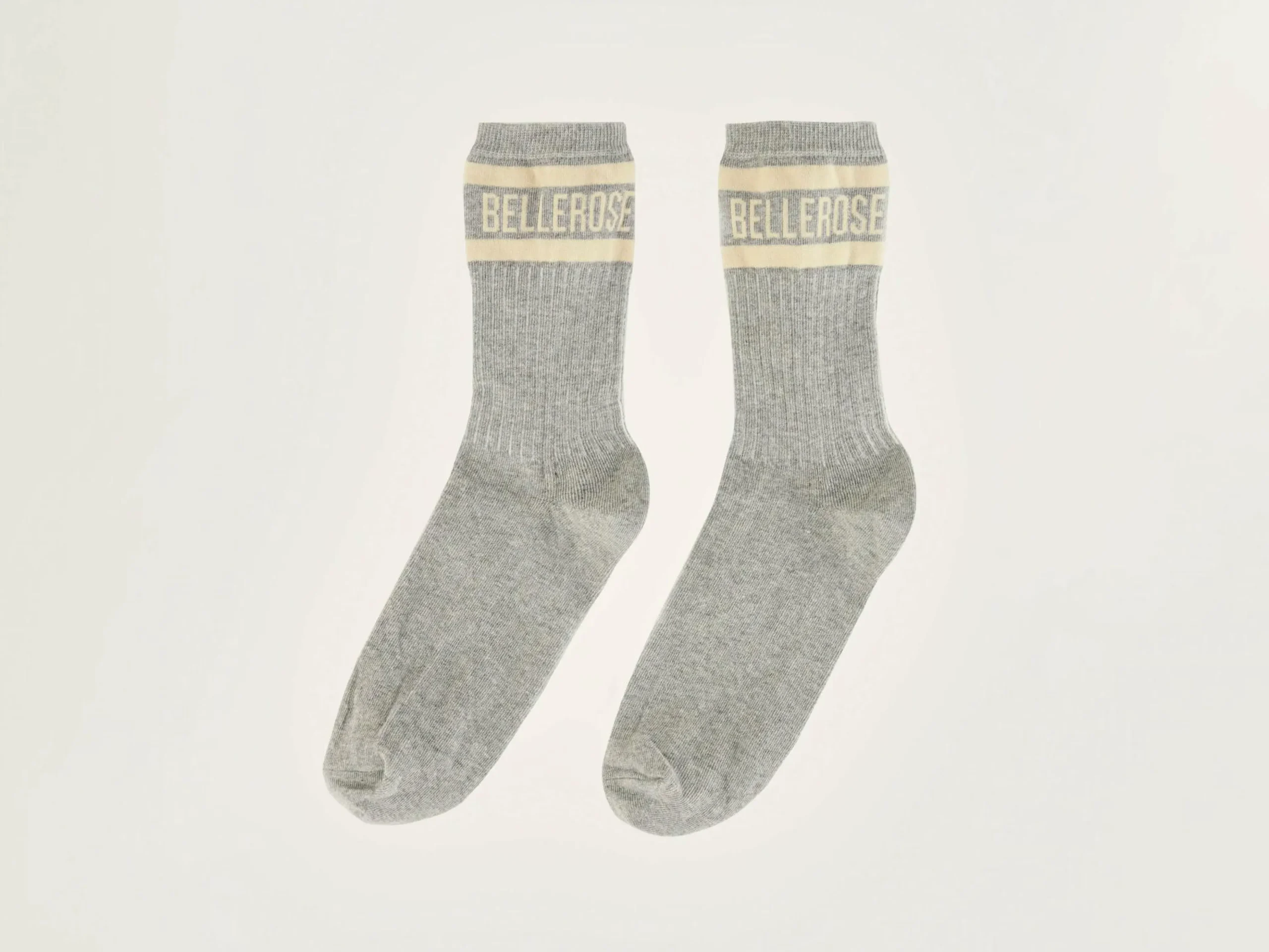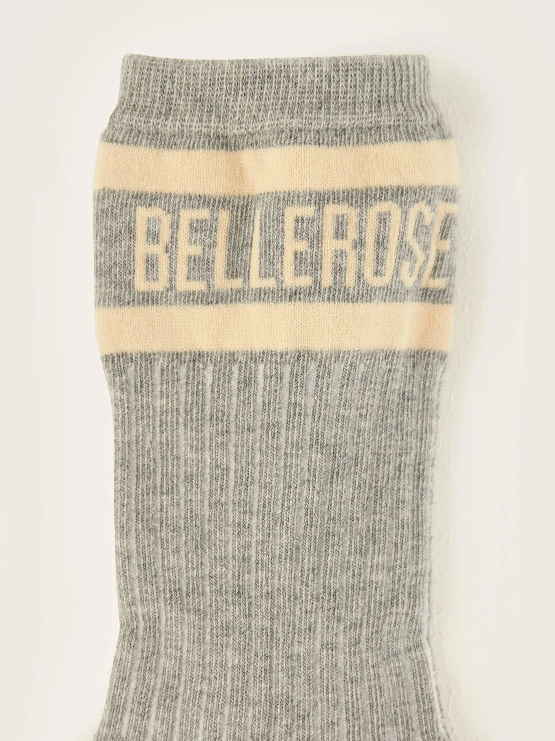 Chaussettes classiques en gris chiné avec le logo Bellerose en écru sur la cheville.