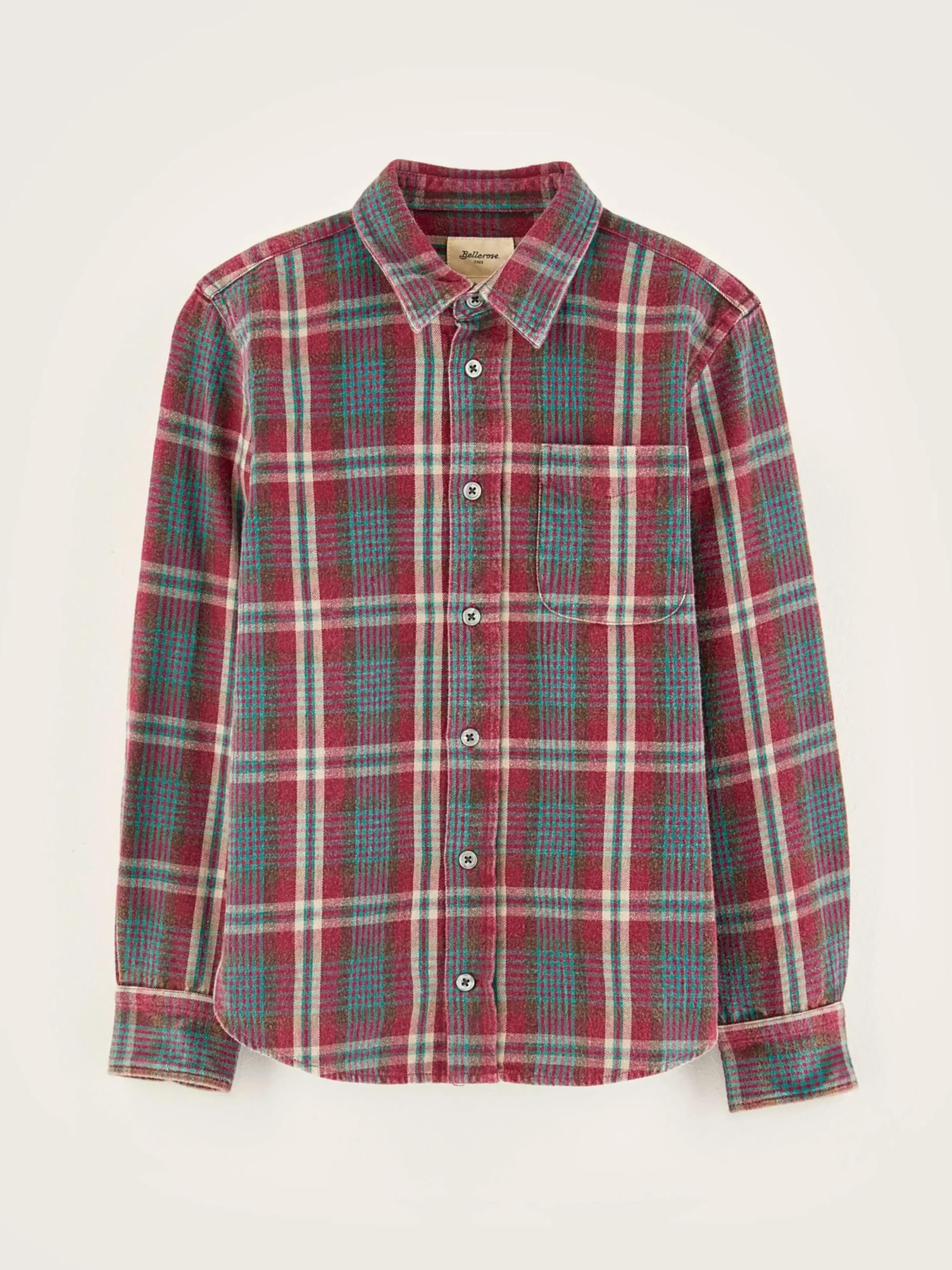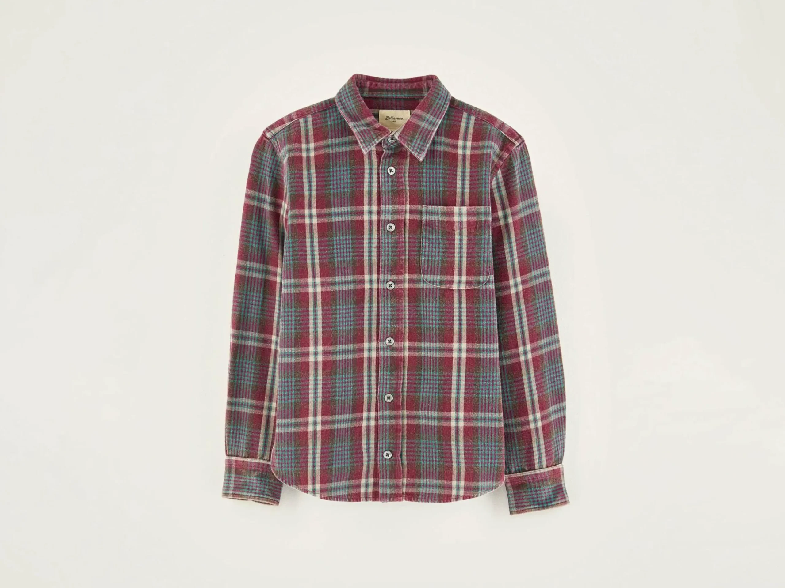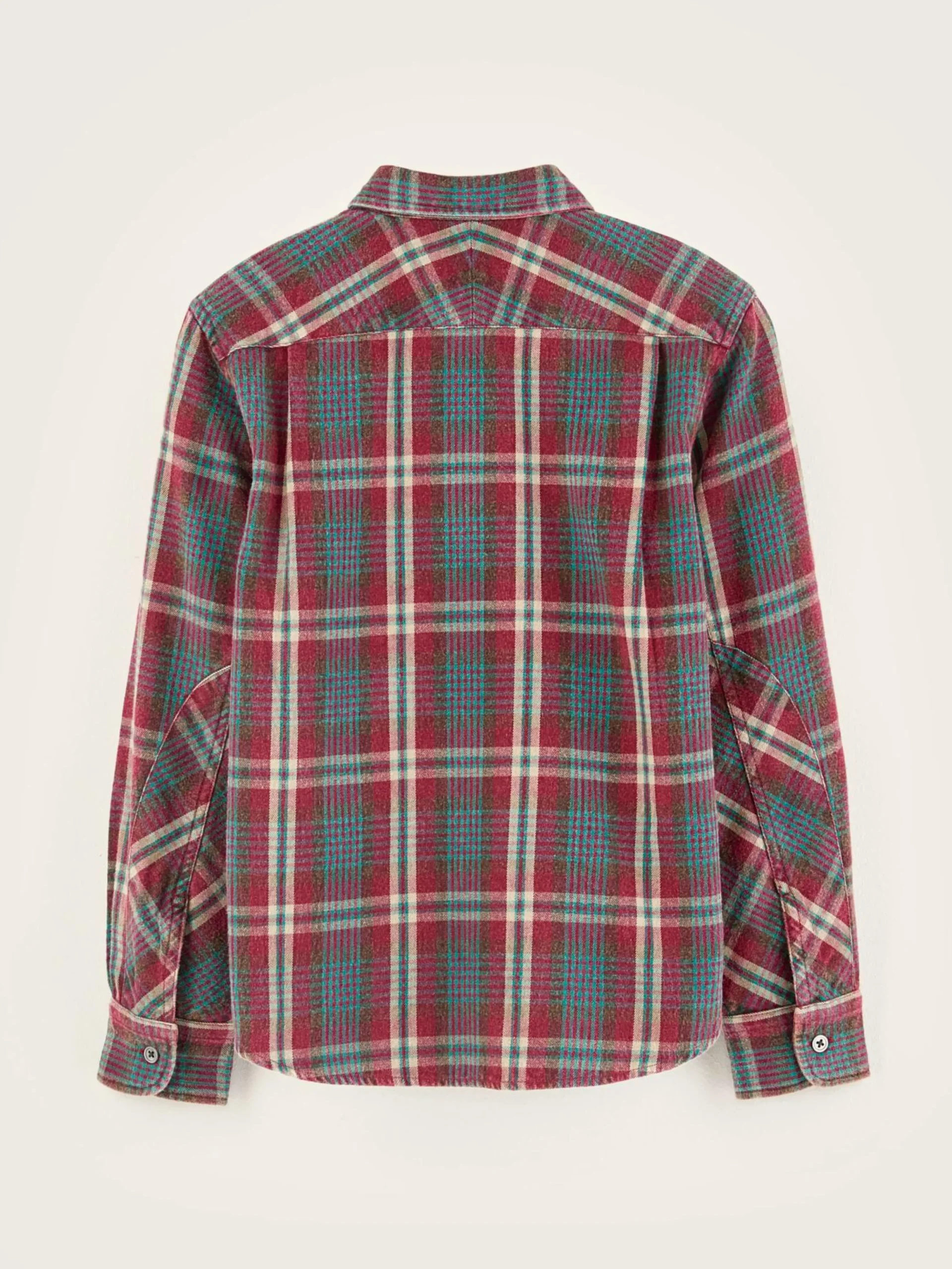 Chemise en coton à carreaux, coupe classique avec fermeture par boutons et coudières de renfort sur les manches.
