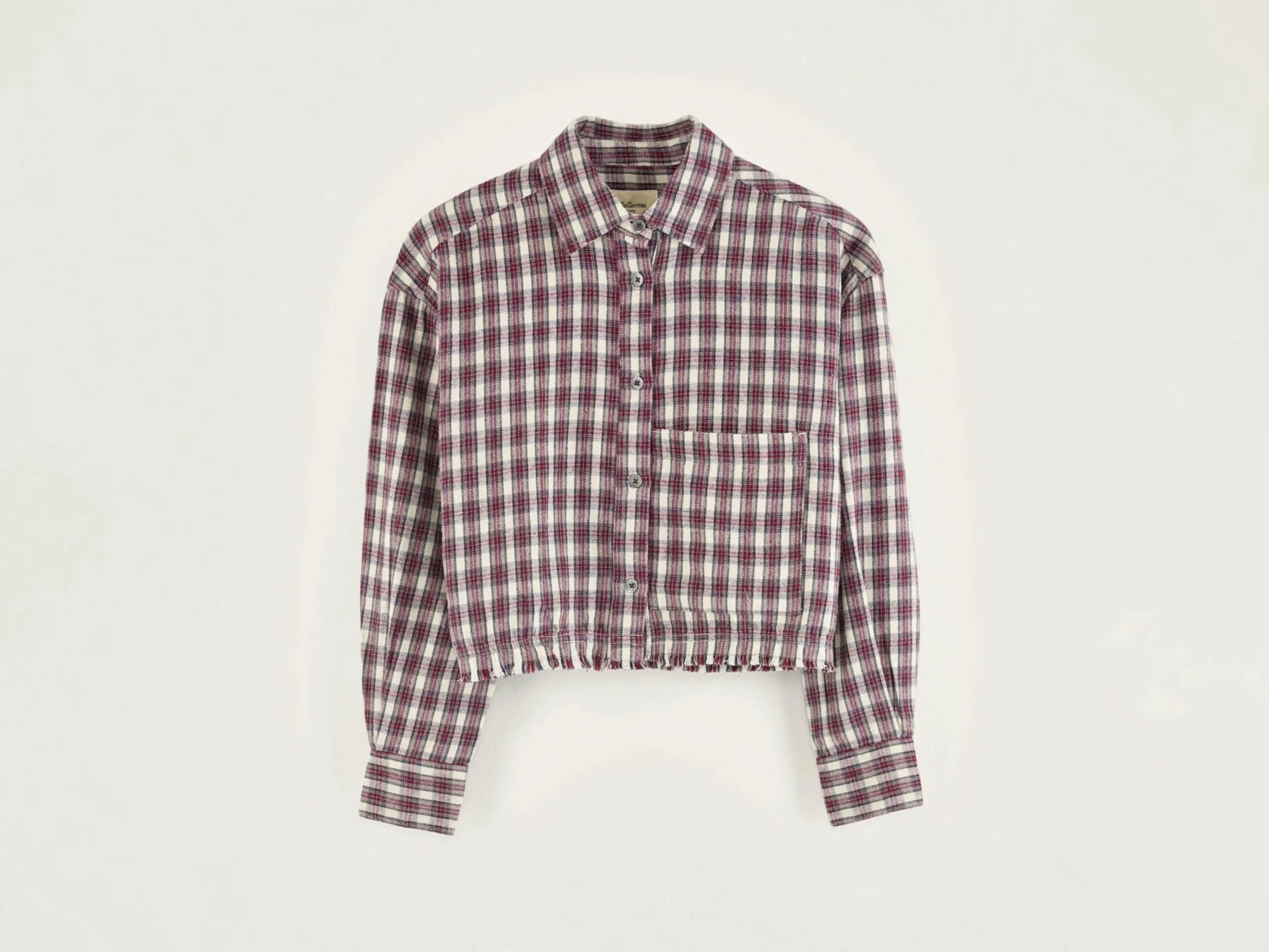 Chemise droite en coton à carreaux avec manches longues et poignets boutonnés.