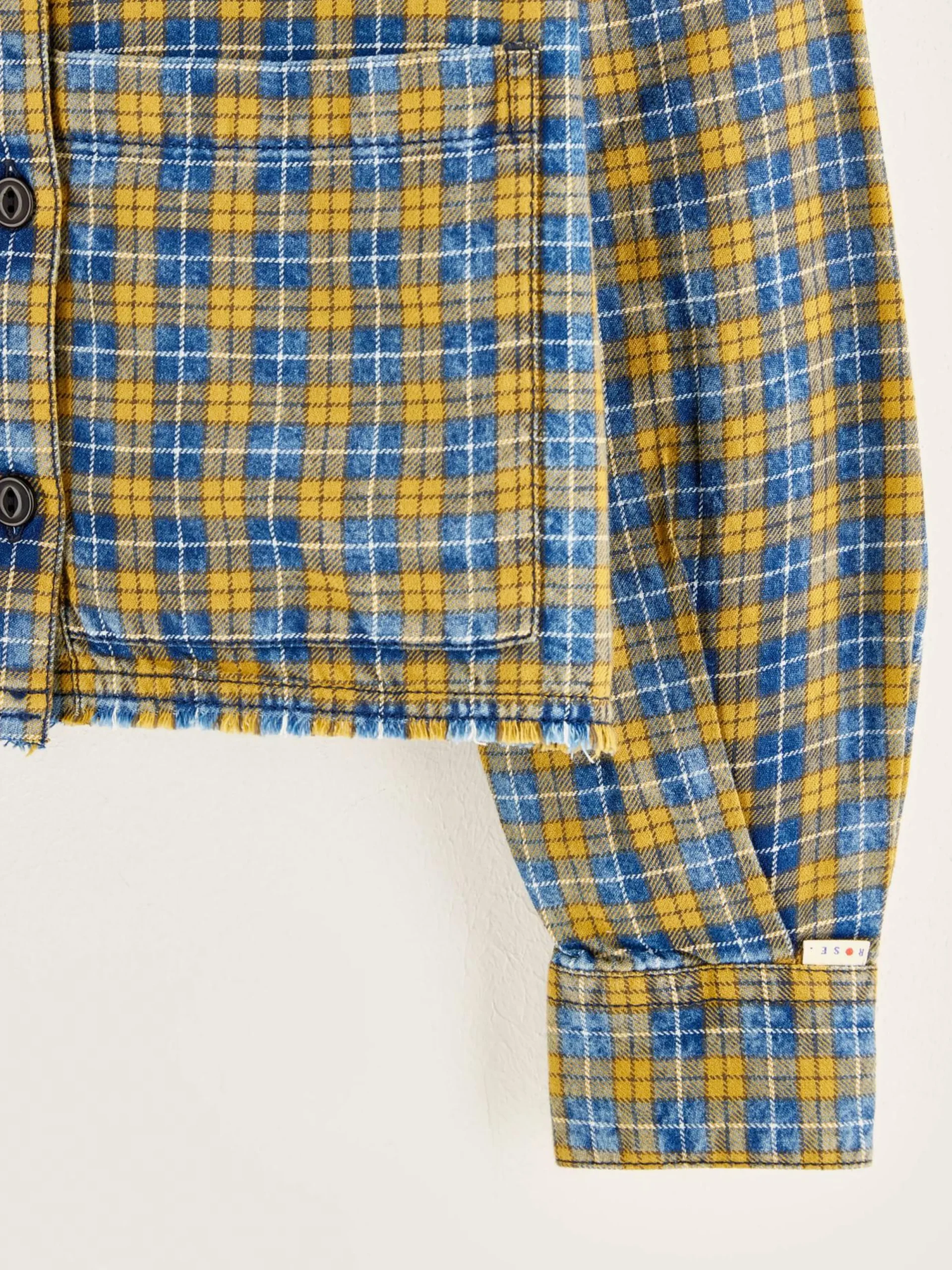 Chemise droite en coton à carreaux avec manches longues et poignets boutonnés.