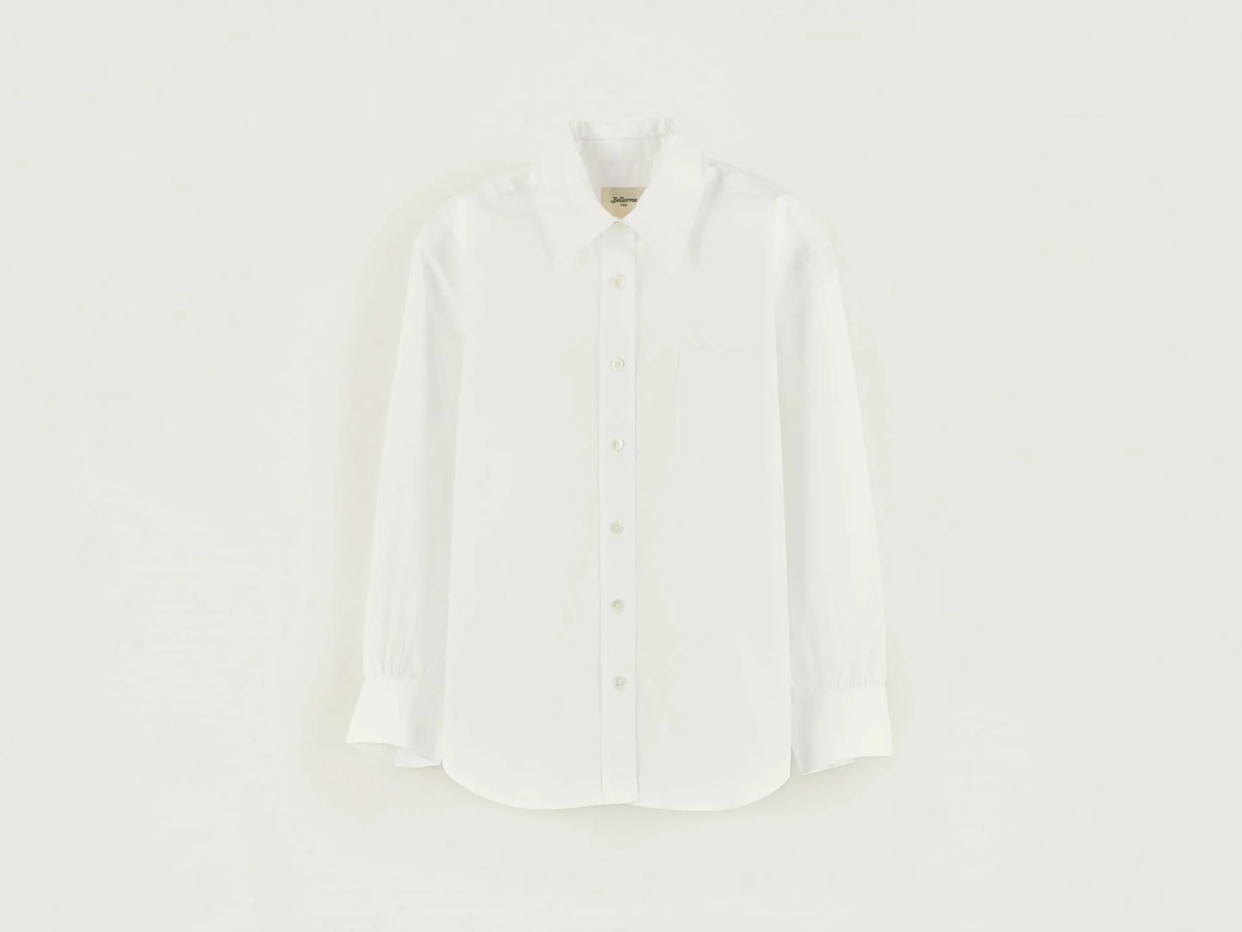 Chemise droite classique en popeline de coton blanc éclatant.