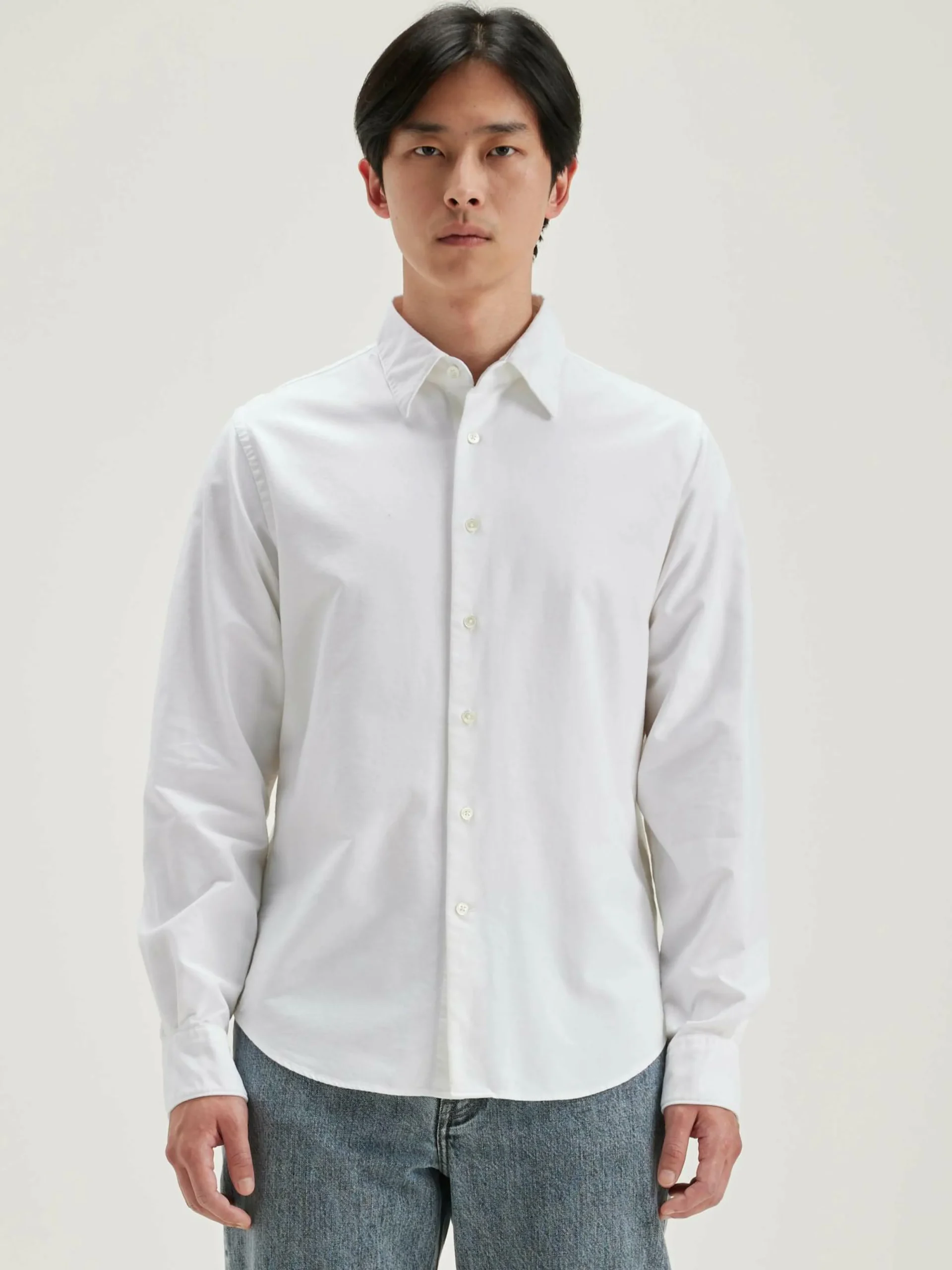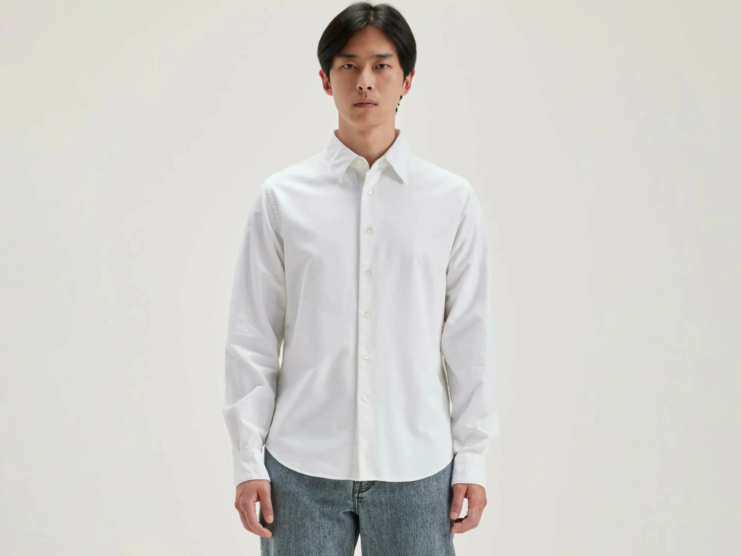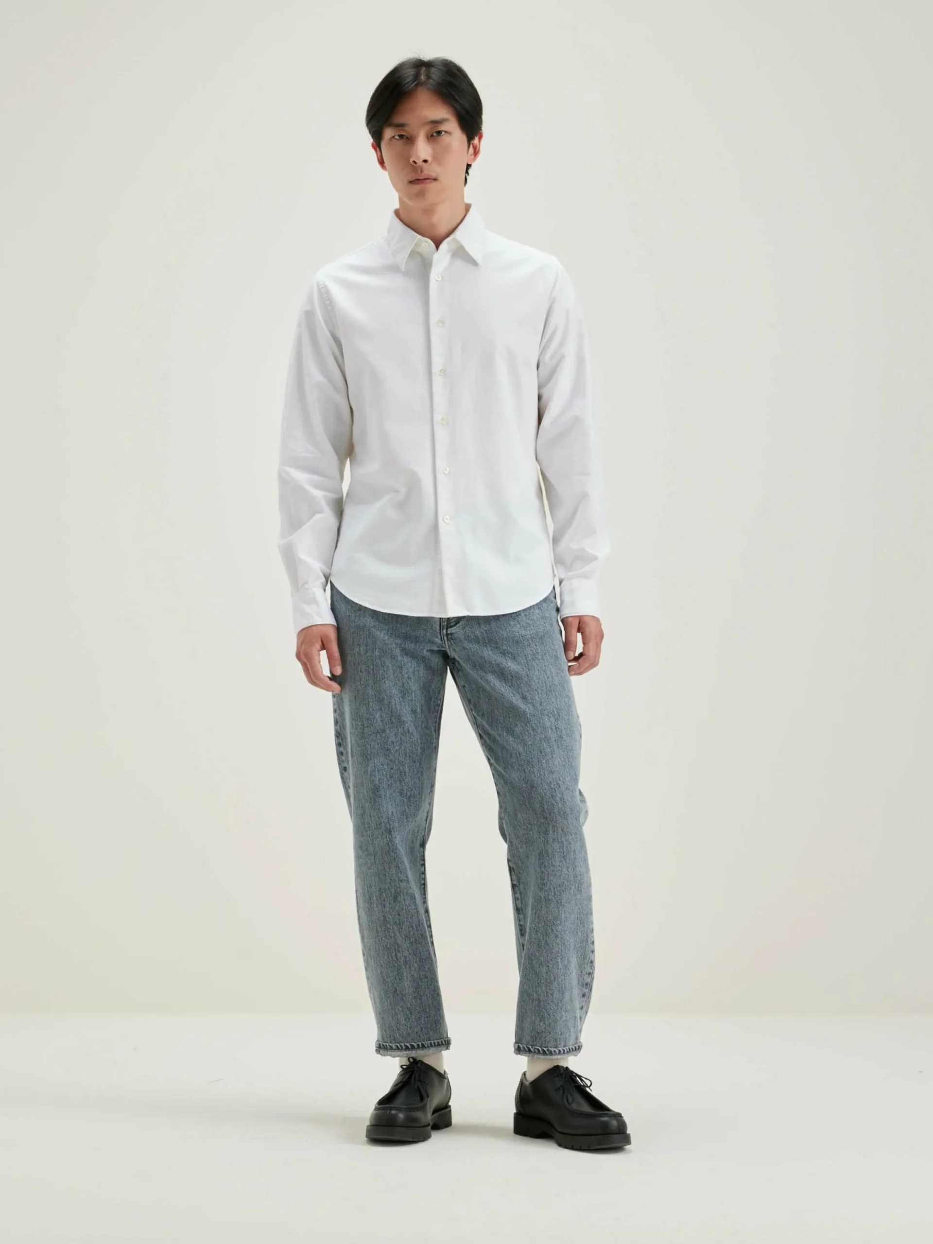 Chemise en popeline de coton blanche, coupe classique.