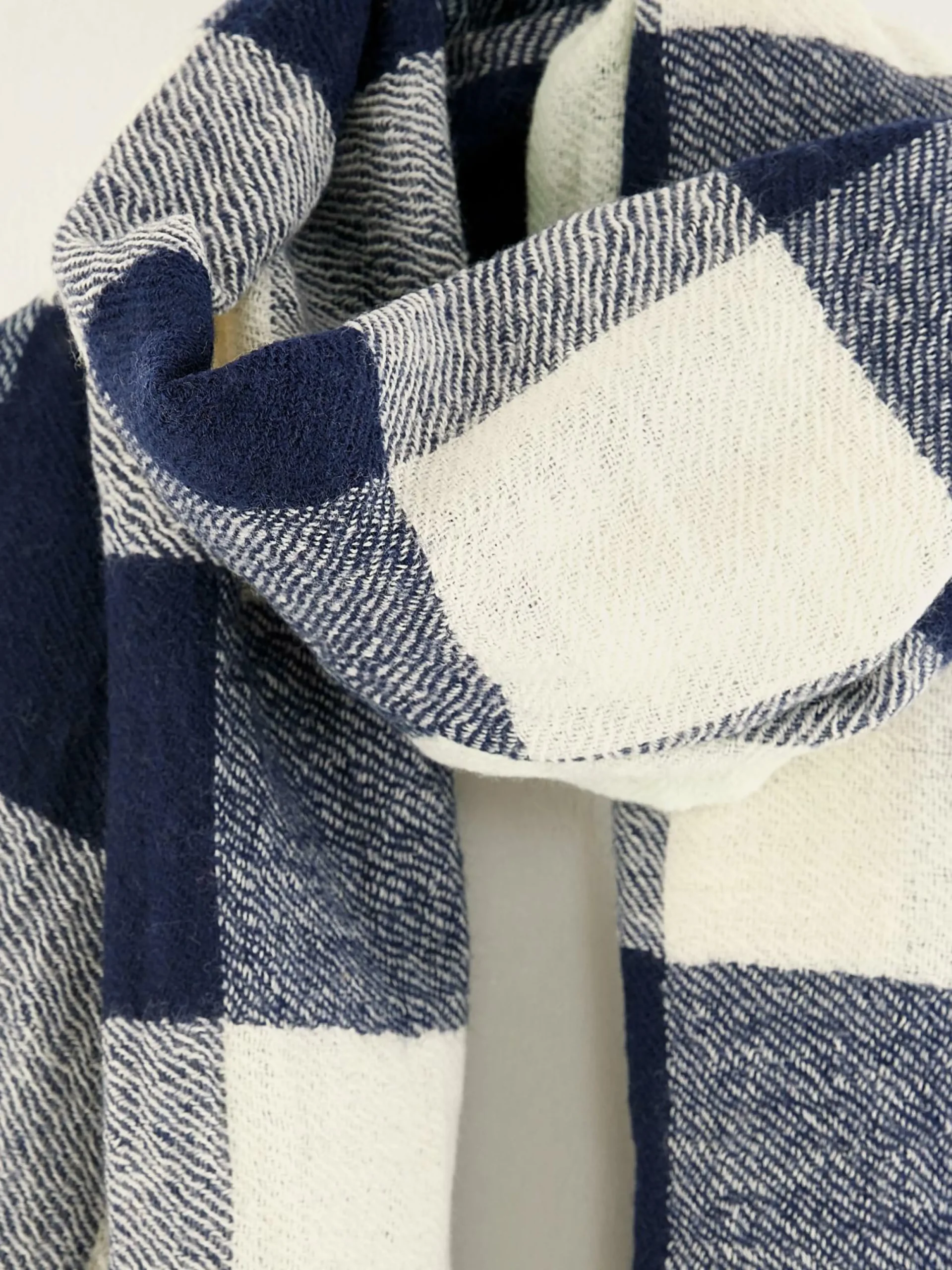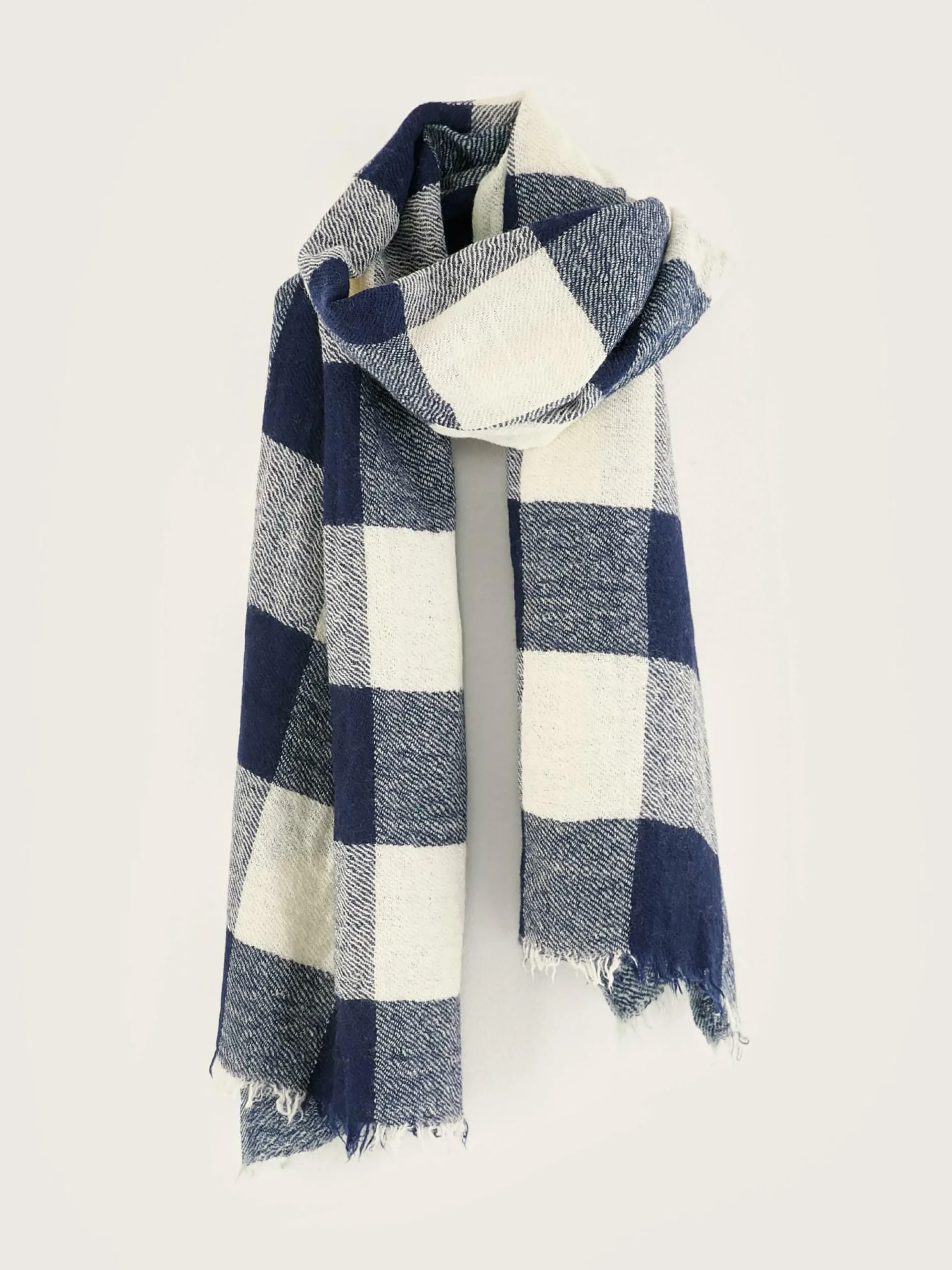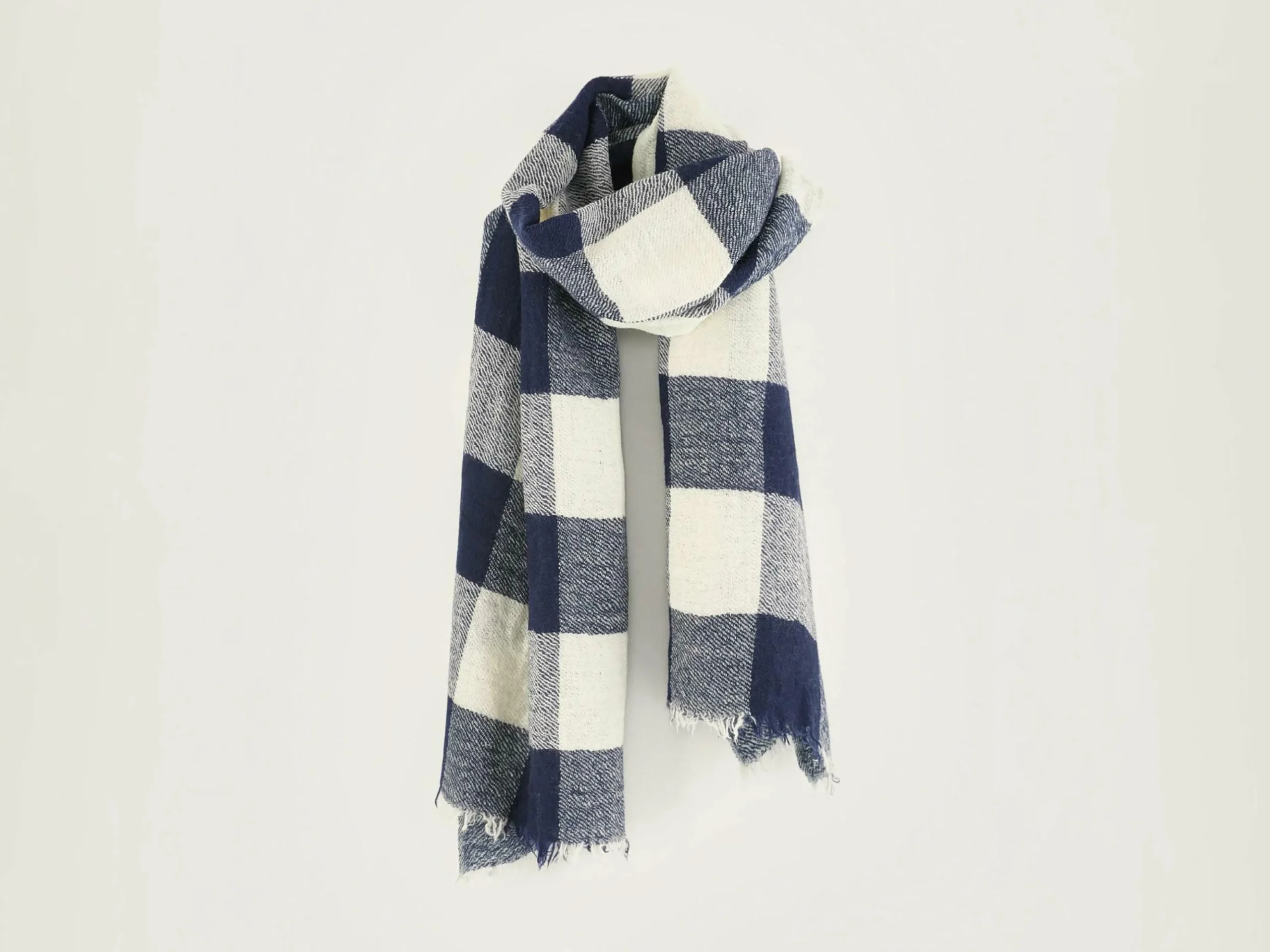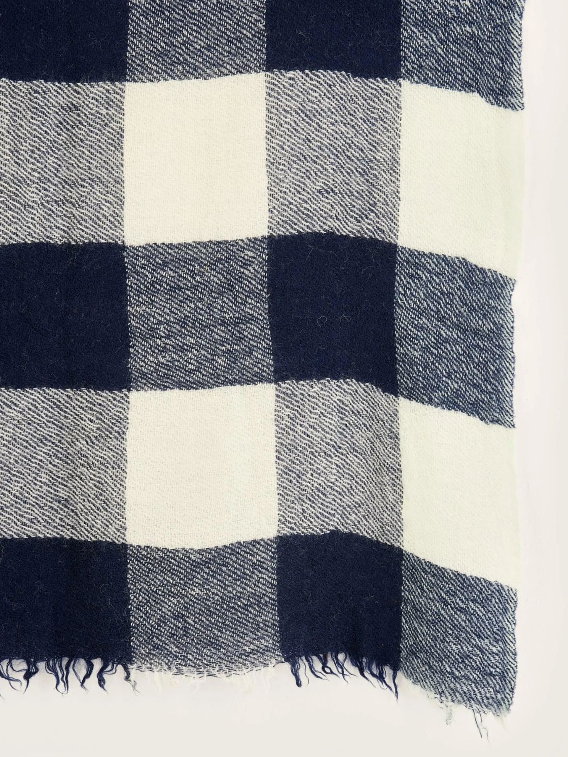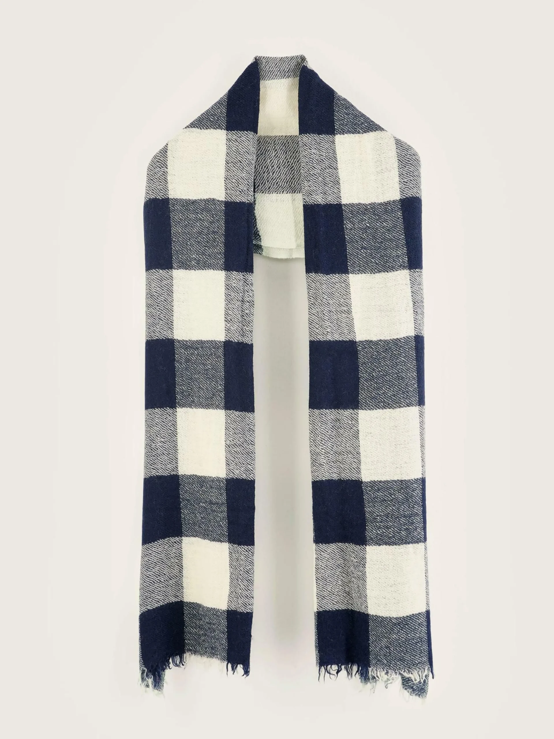 Écharpe tissée classique en laine à carreaux noirs et blancs.