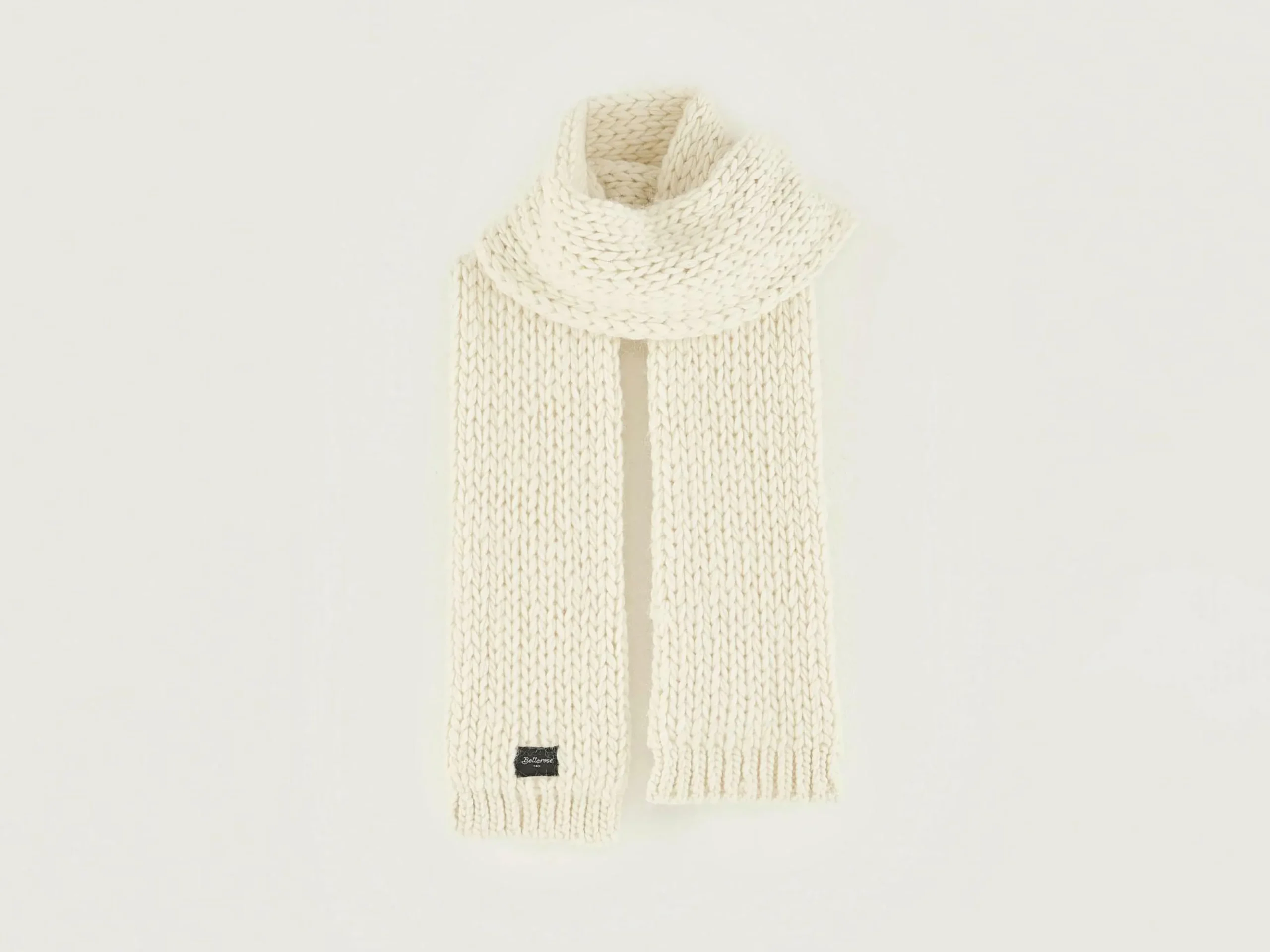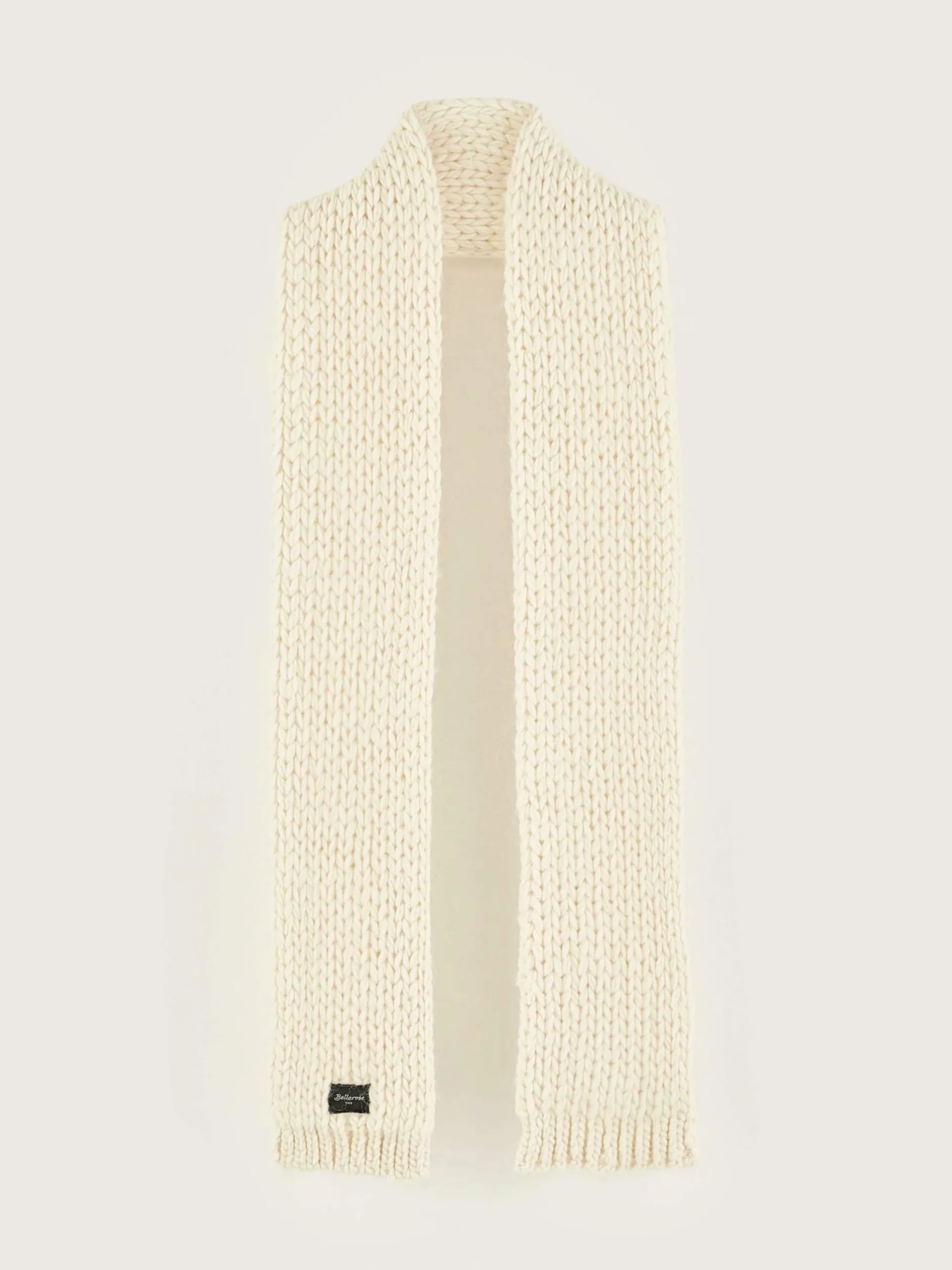 Écharpe en jersey tricotée en maille épaisse couleur ivoire.