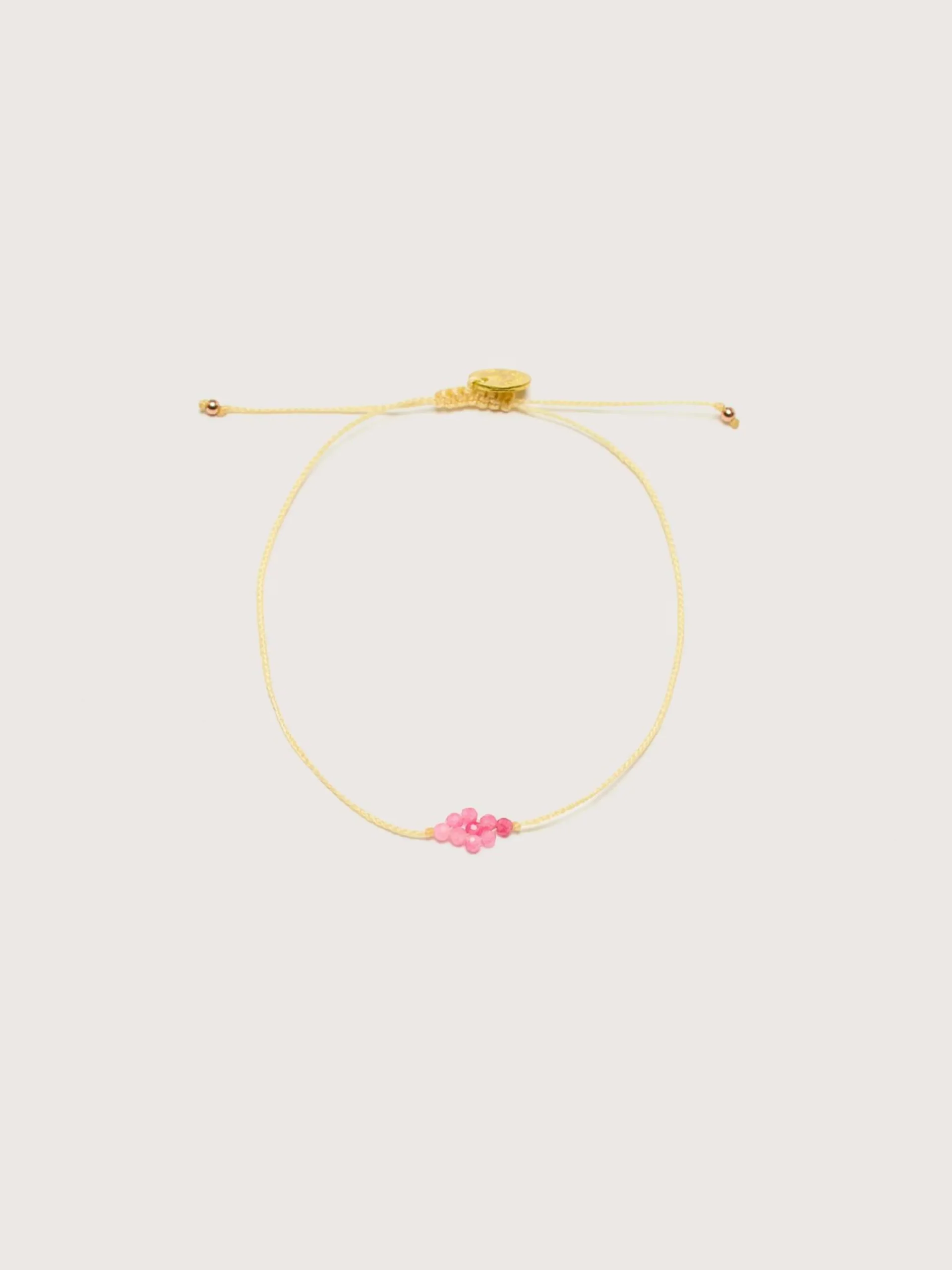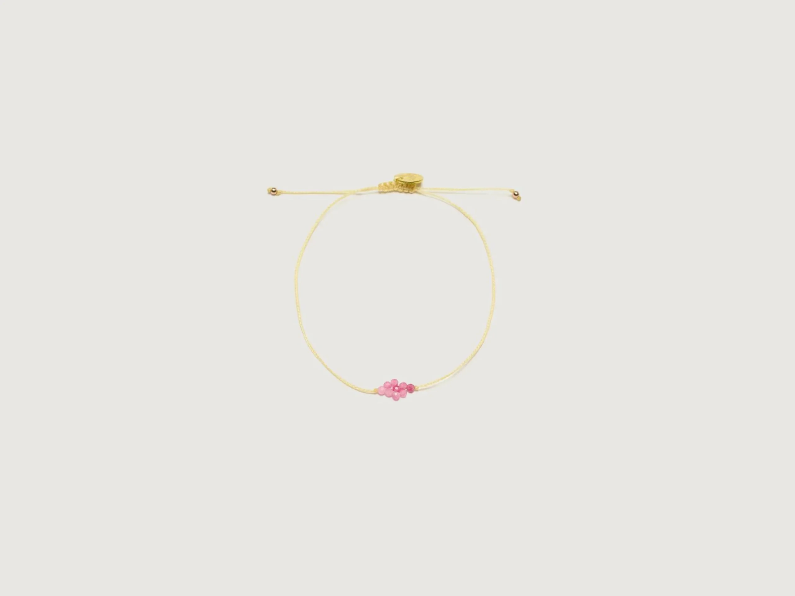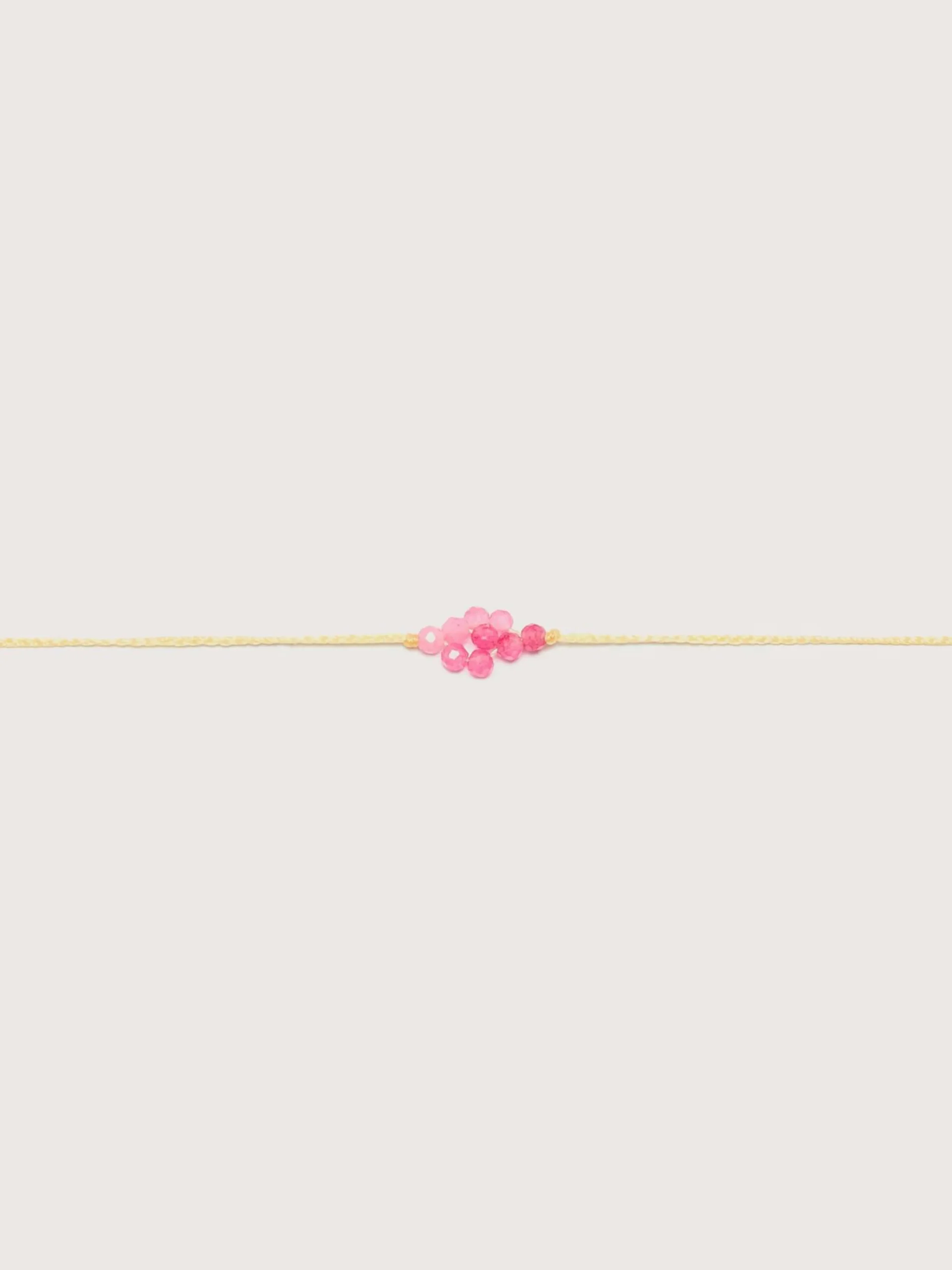Le bracelet Guanabana Halley est composé d’une grappe de pierres grenat et d’une fermeture réglable.