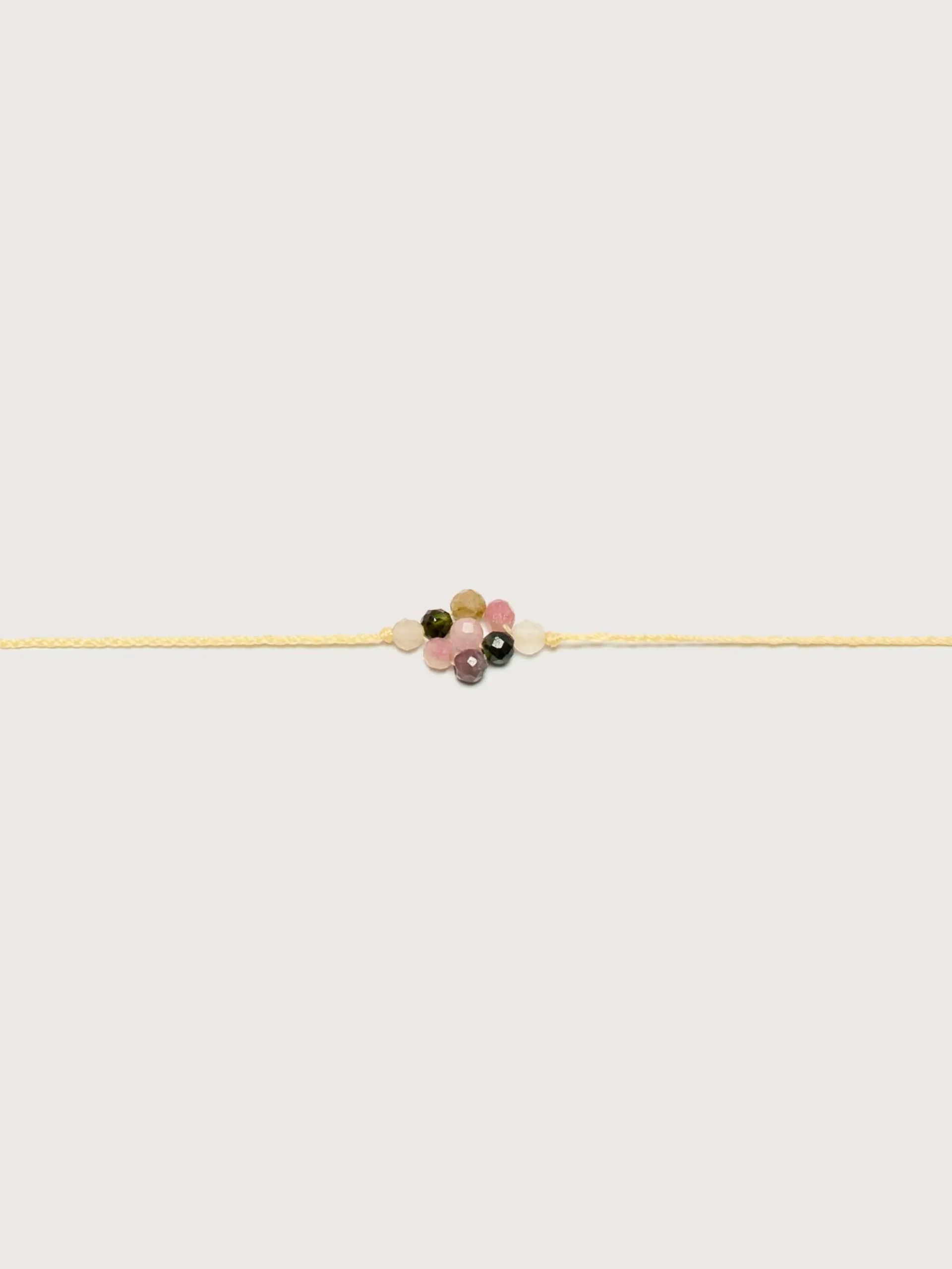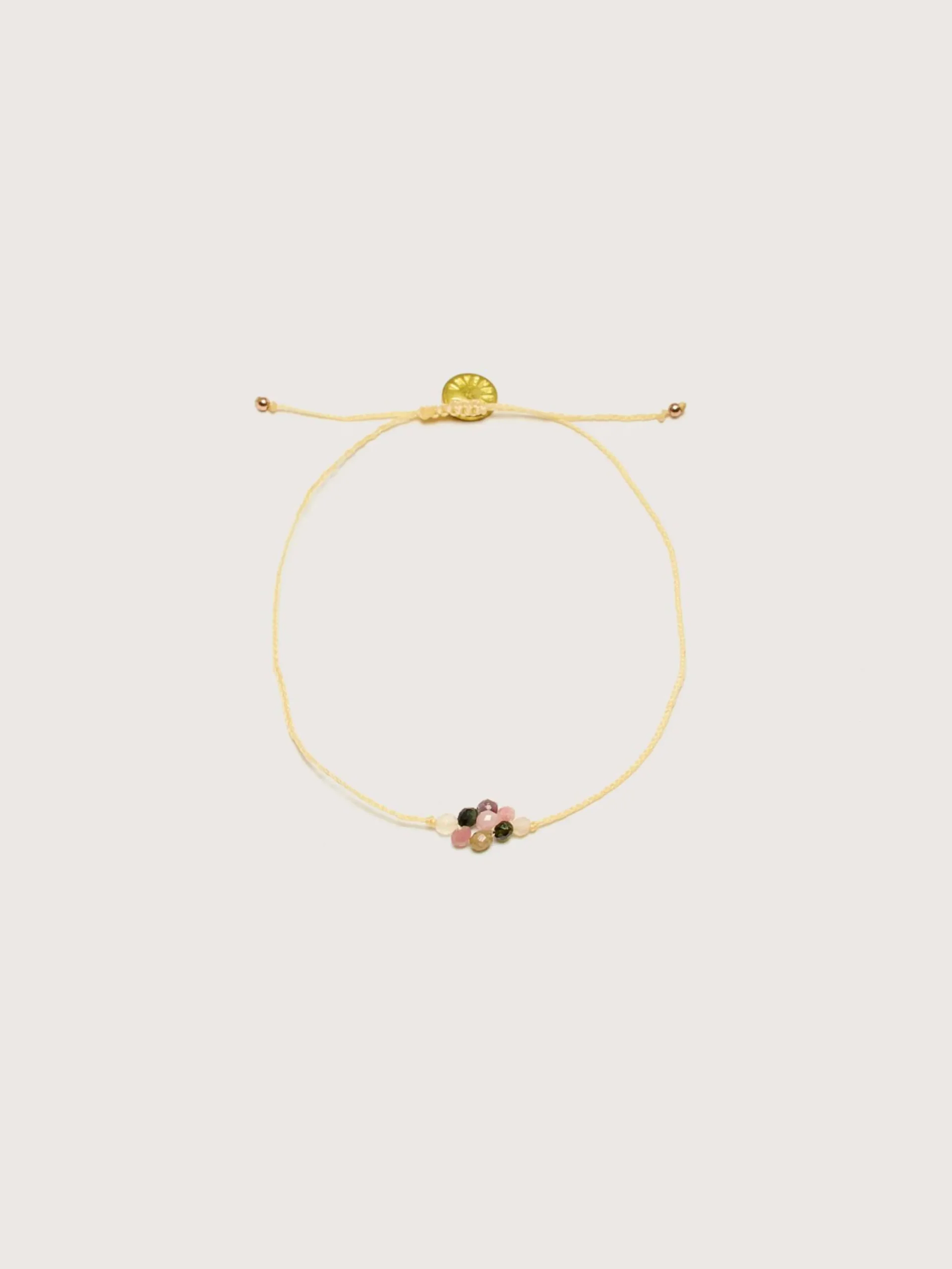 Le bracelet Guanabana Halley est composé d’une grappe de pierres de tourmaline et d’une fermeture réglable.
