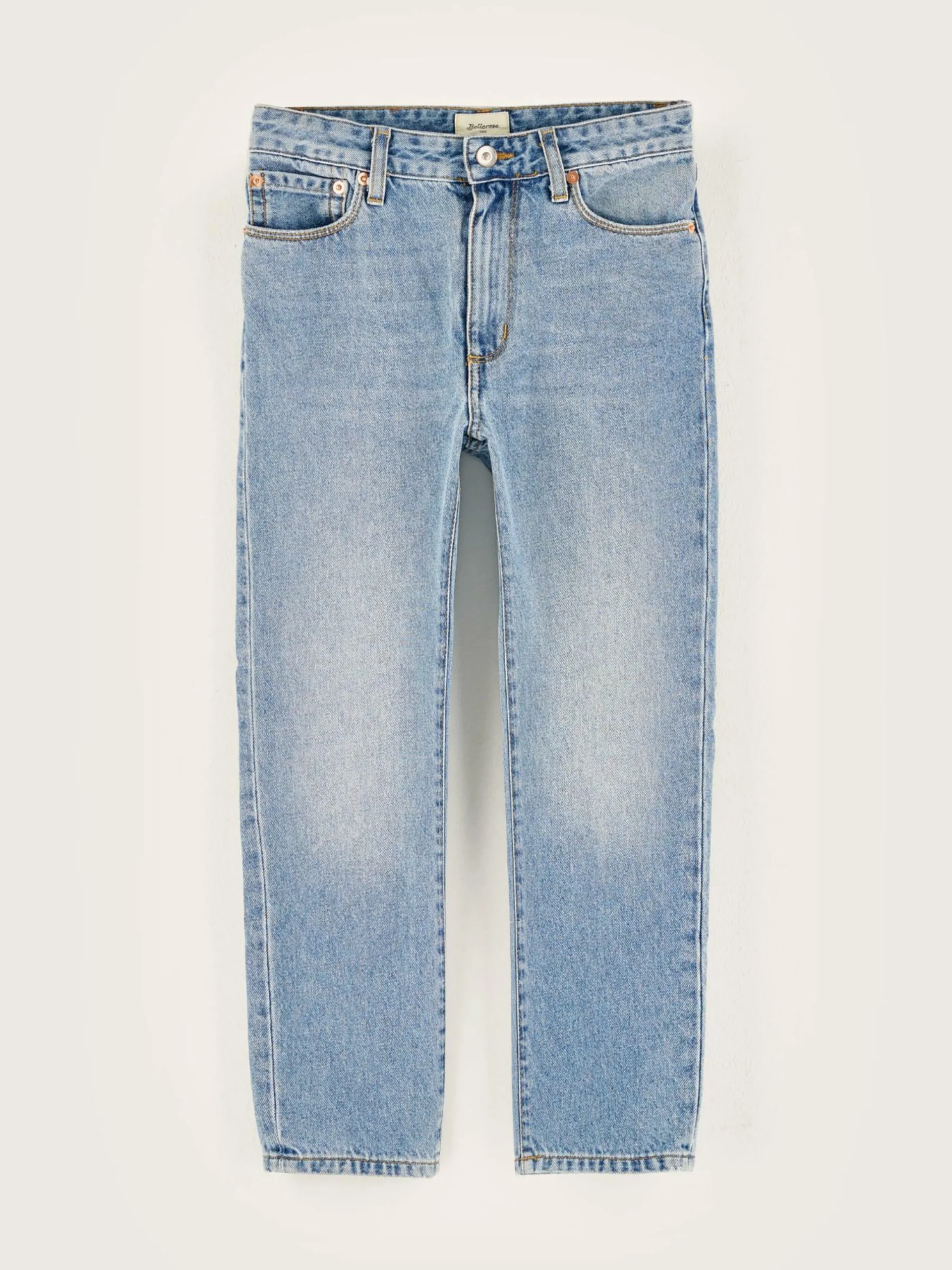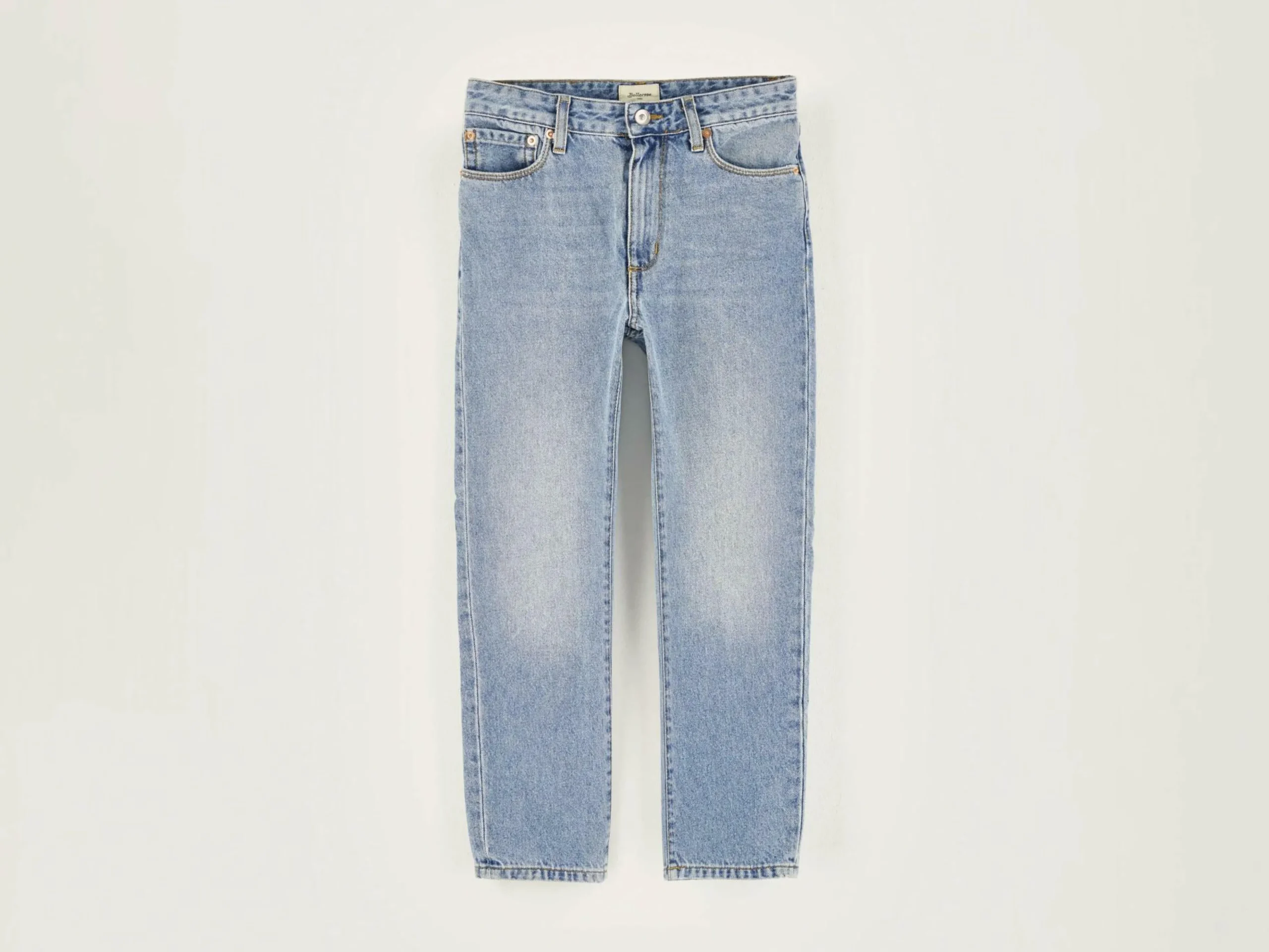 Jean régulier et tapered en denim de coton bleu clair vintage.