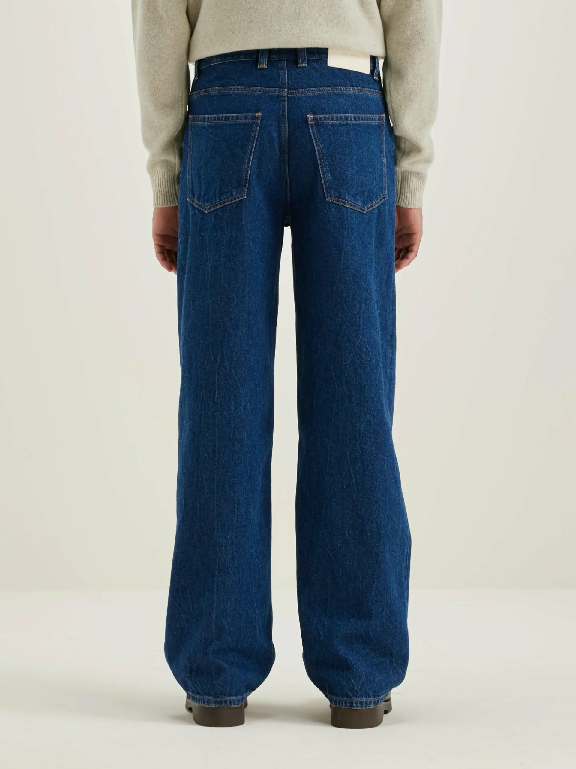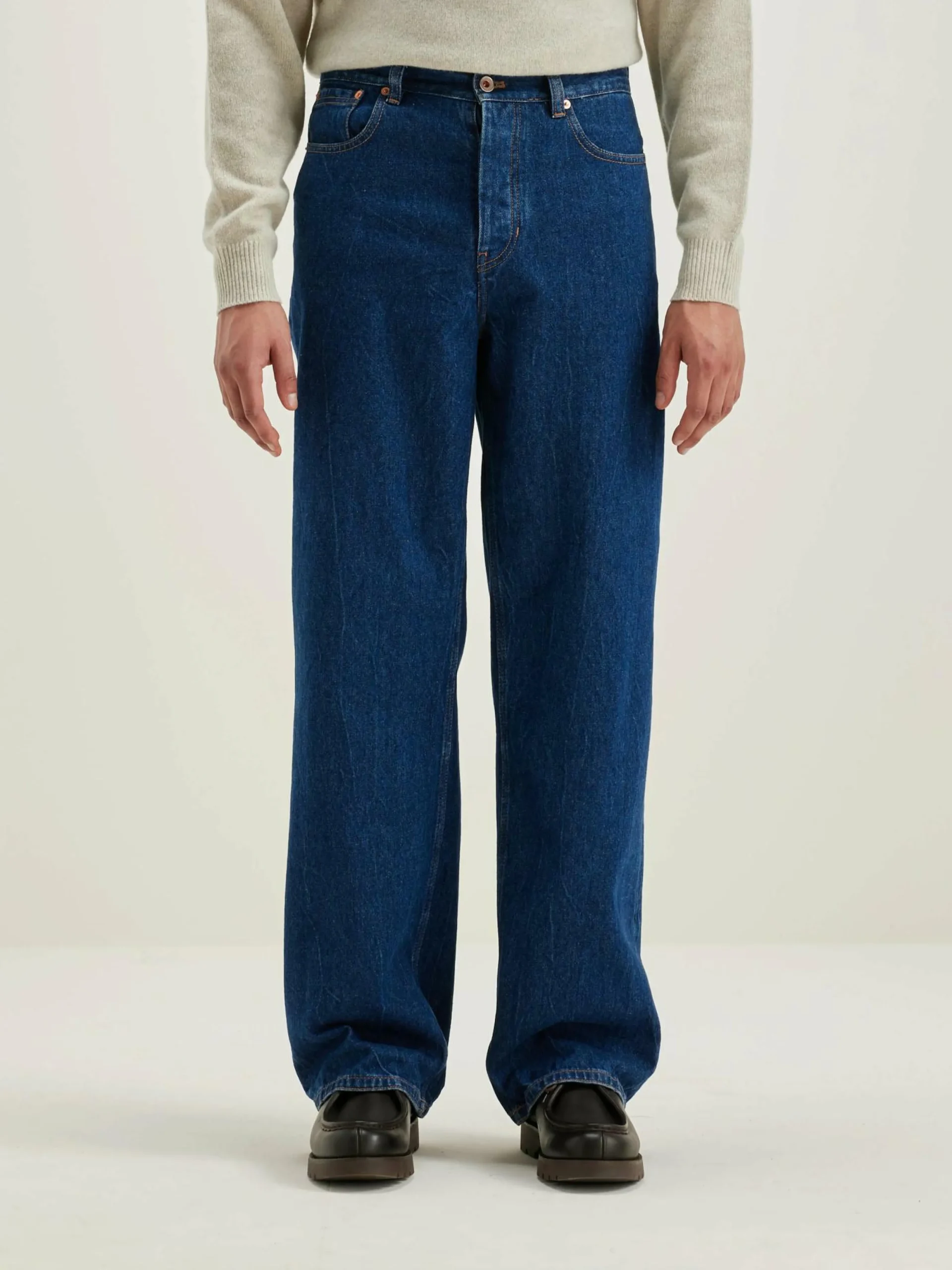 Jean taille basse oversize à 5 poches en denim léger avec jambes larges.