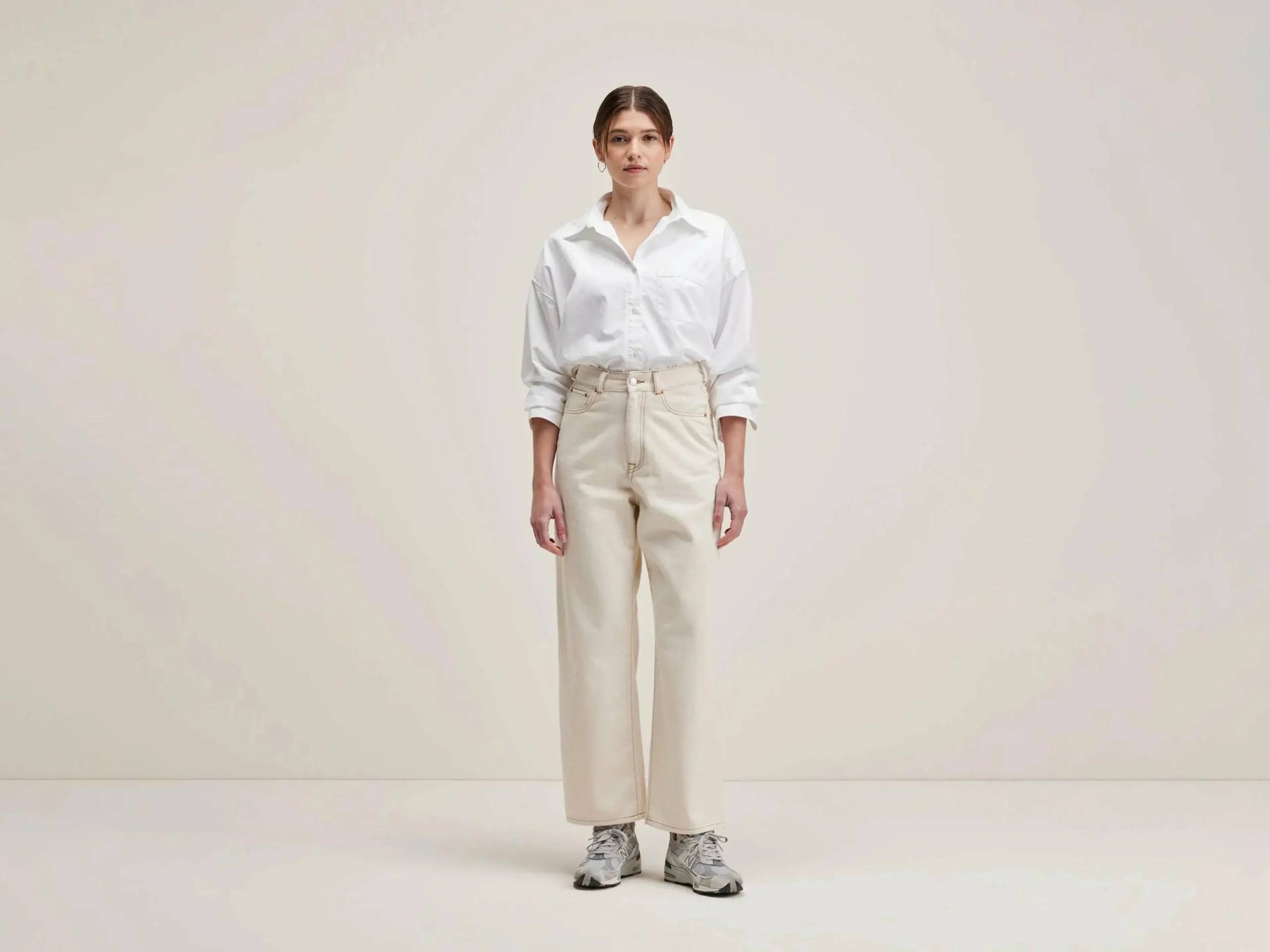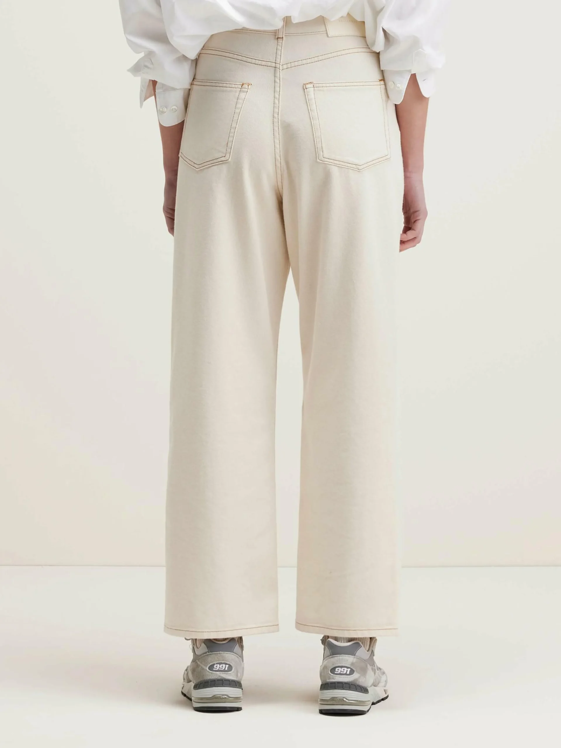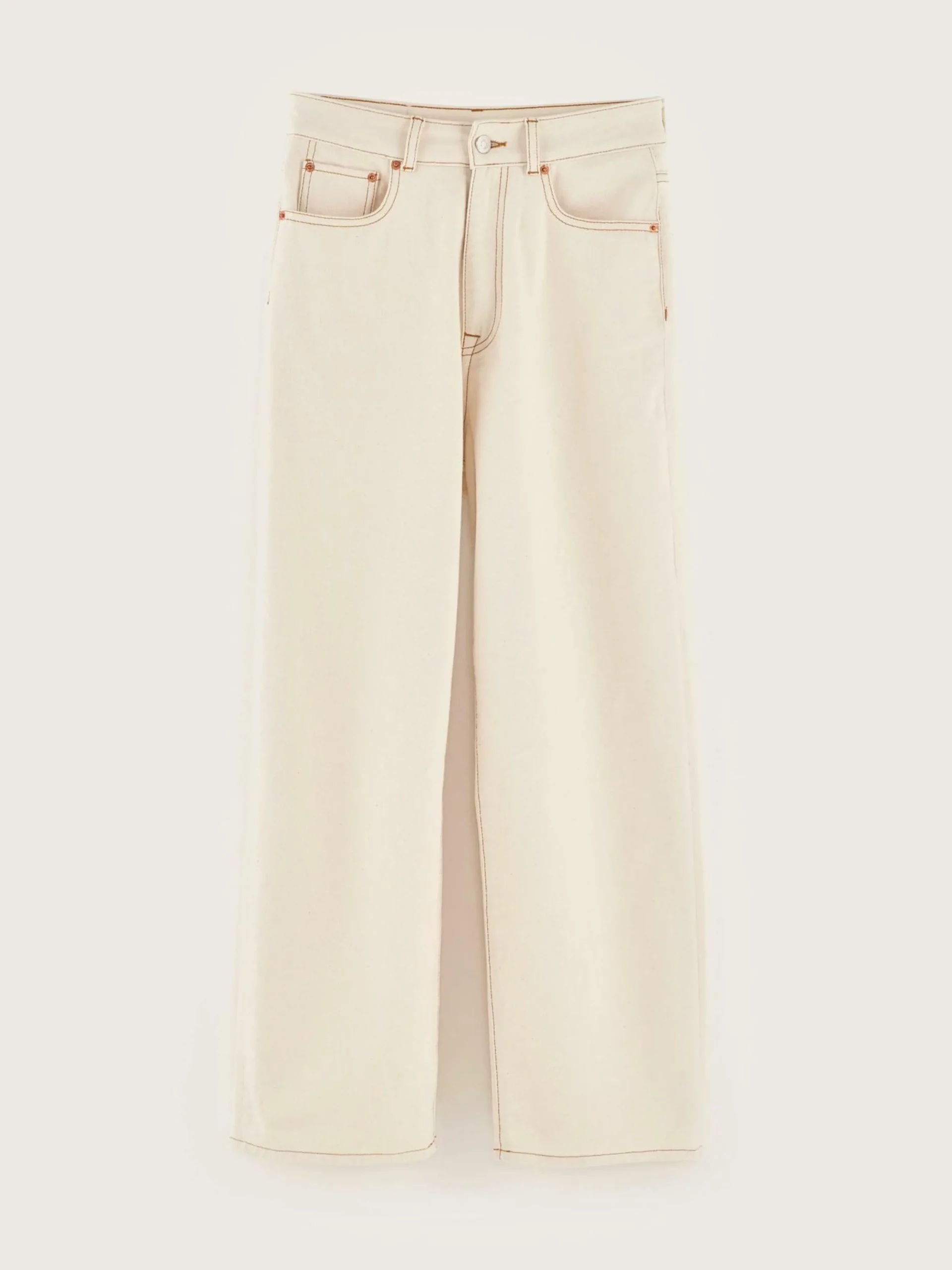 Jean large à taille très haute avec 5 poches en denim de coton écru.