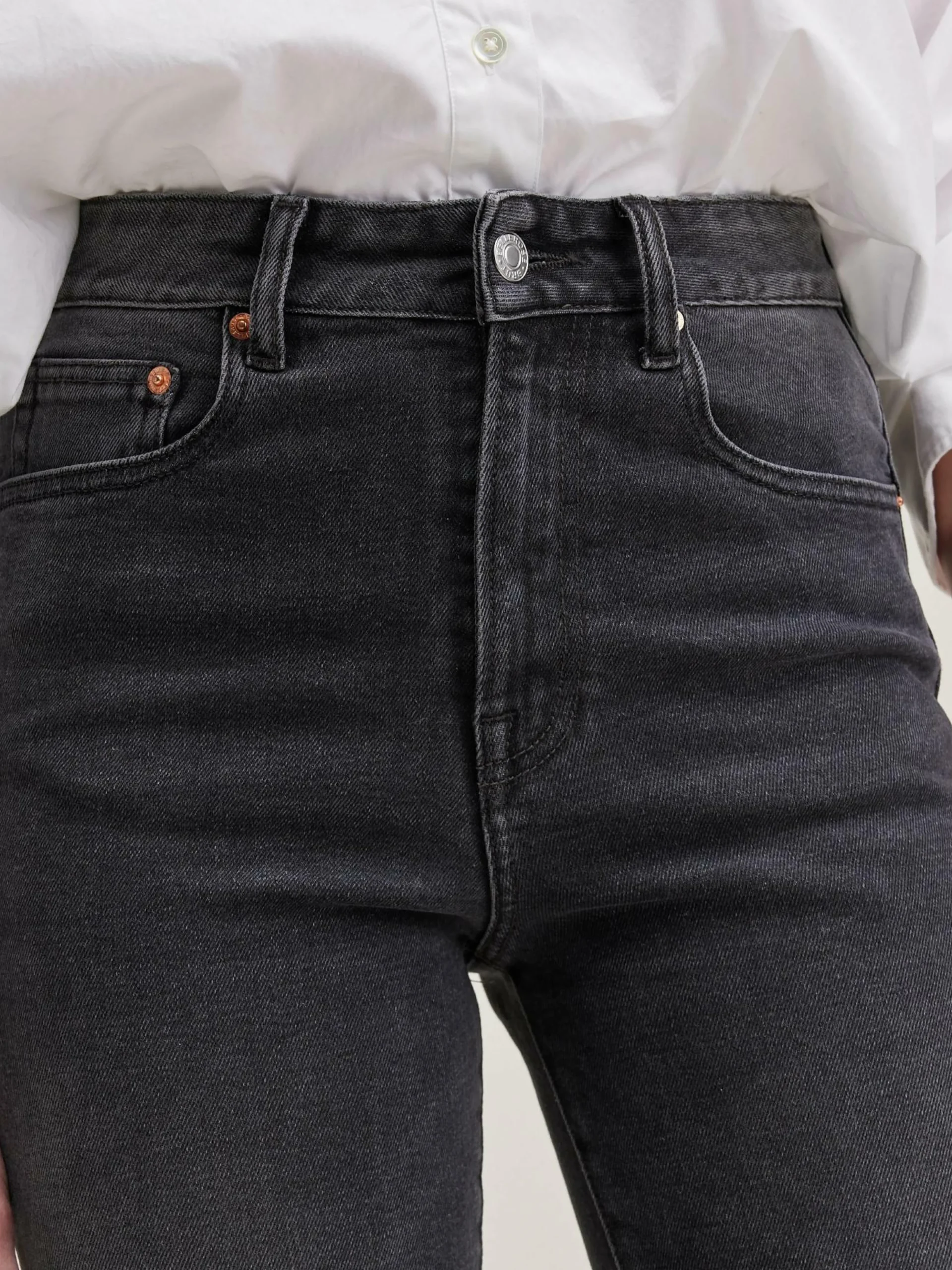 Jean slim taille haute en denim noir vintage.