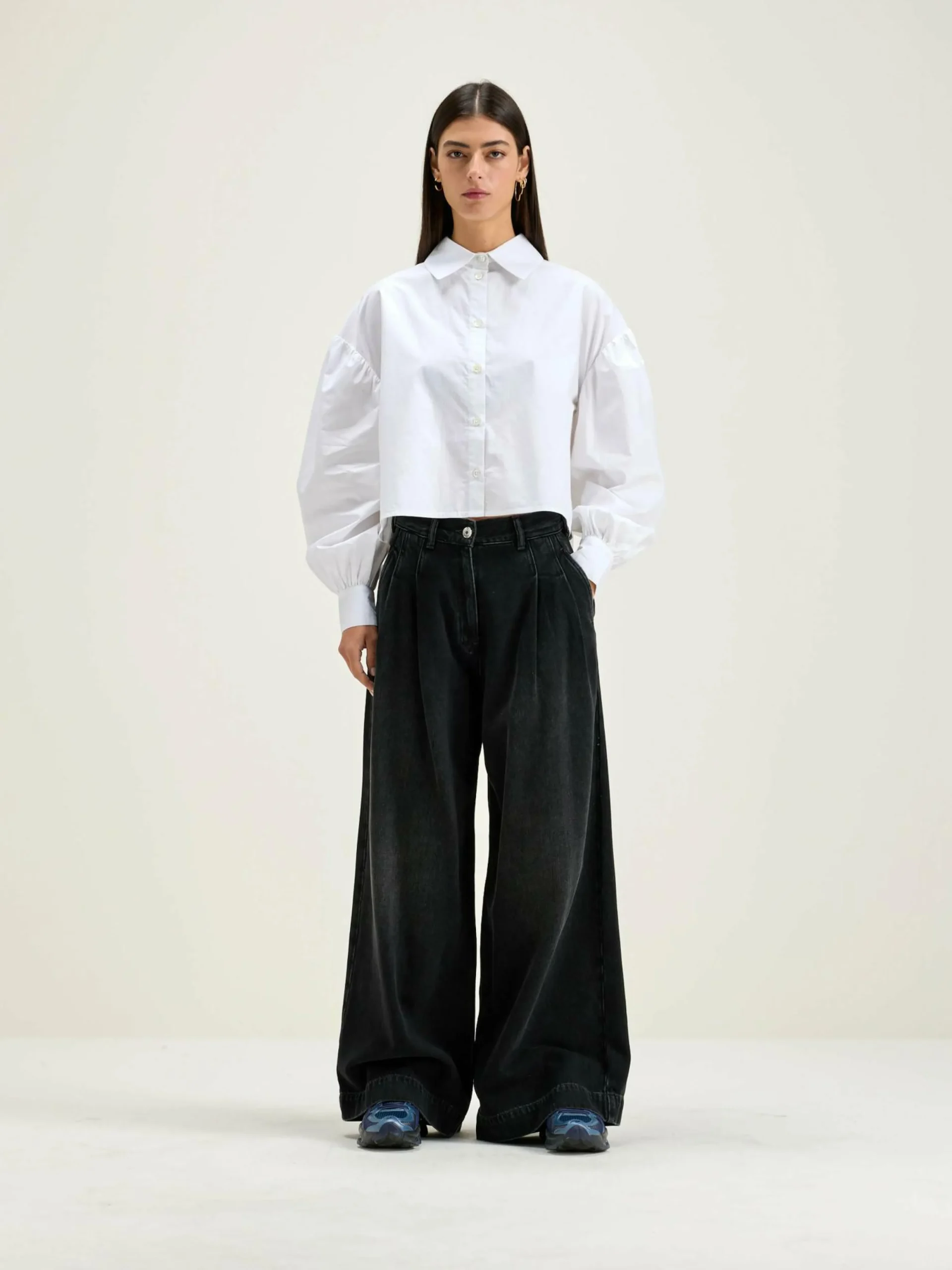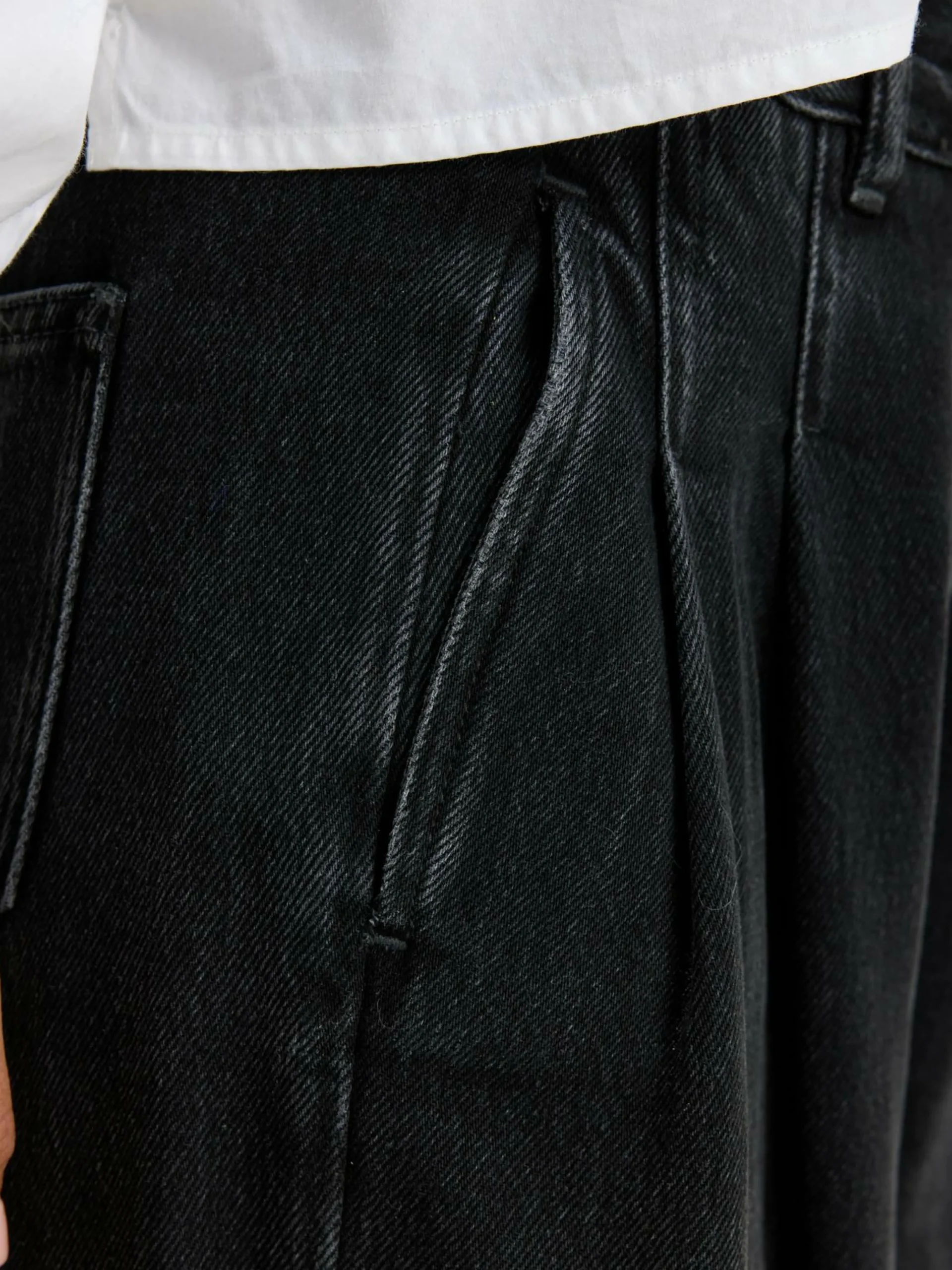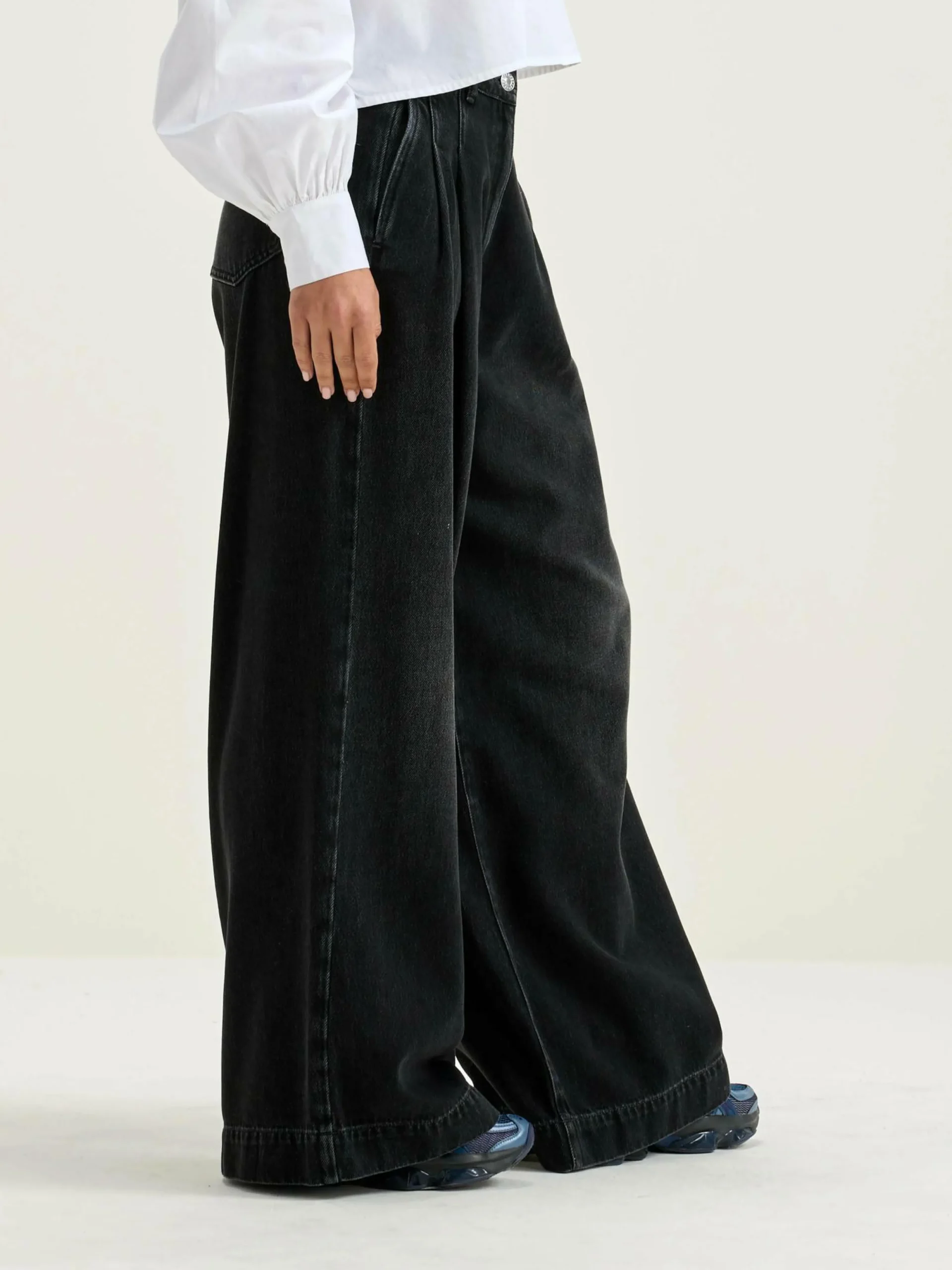 Jean plissé, taille haute et jambes très larges en denim noir.