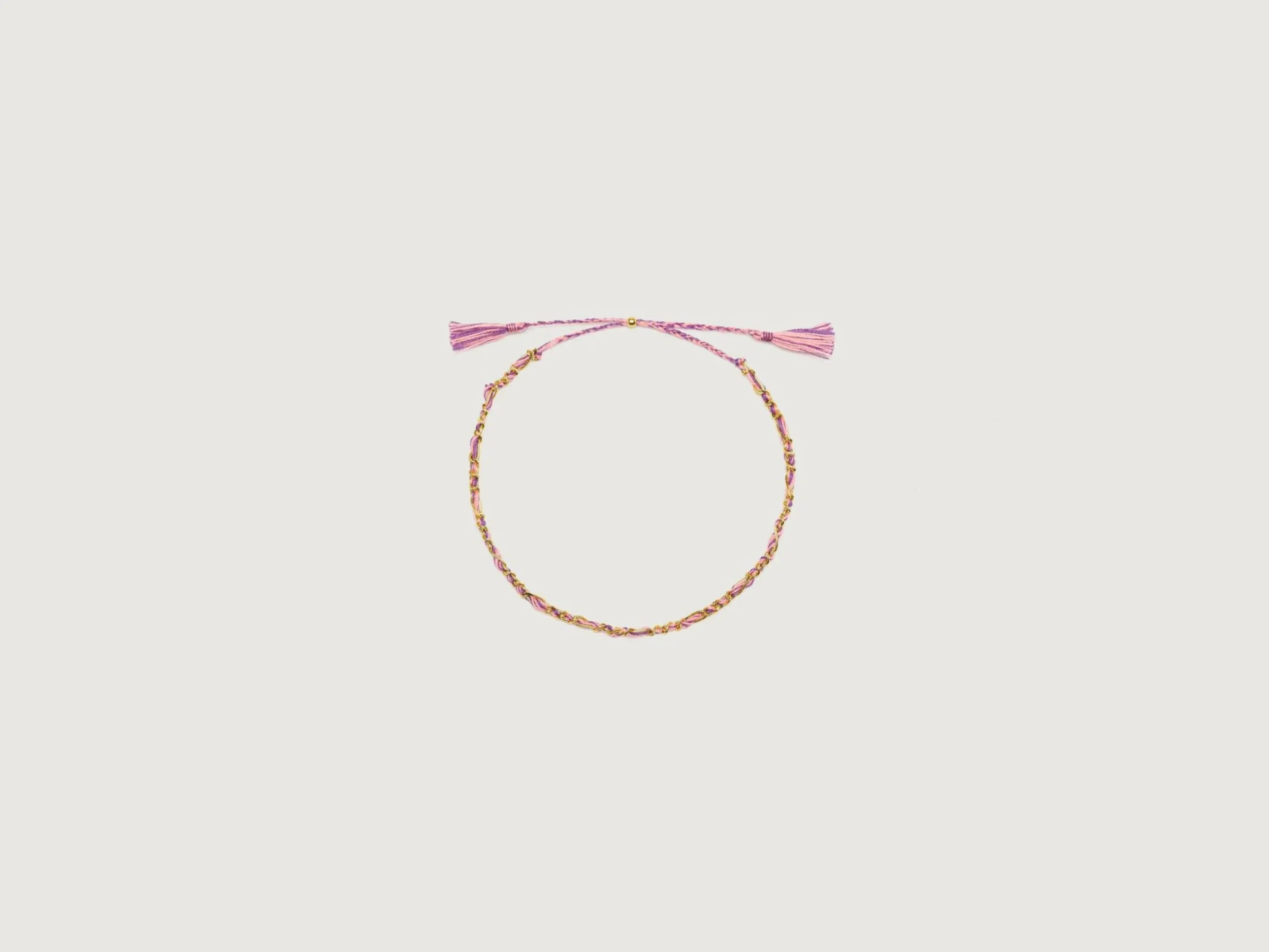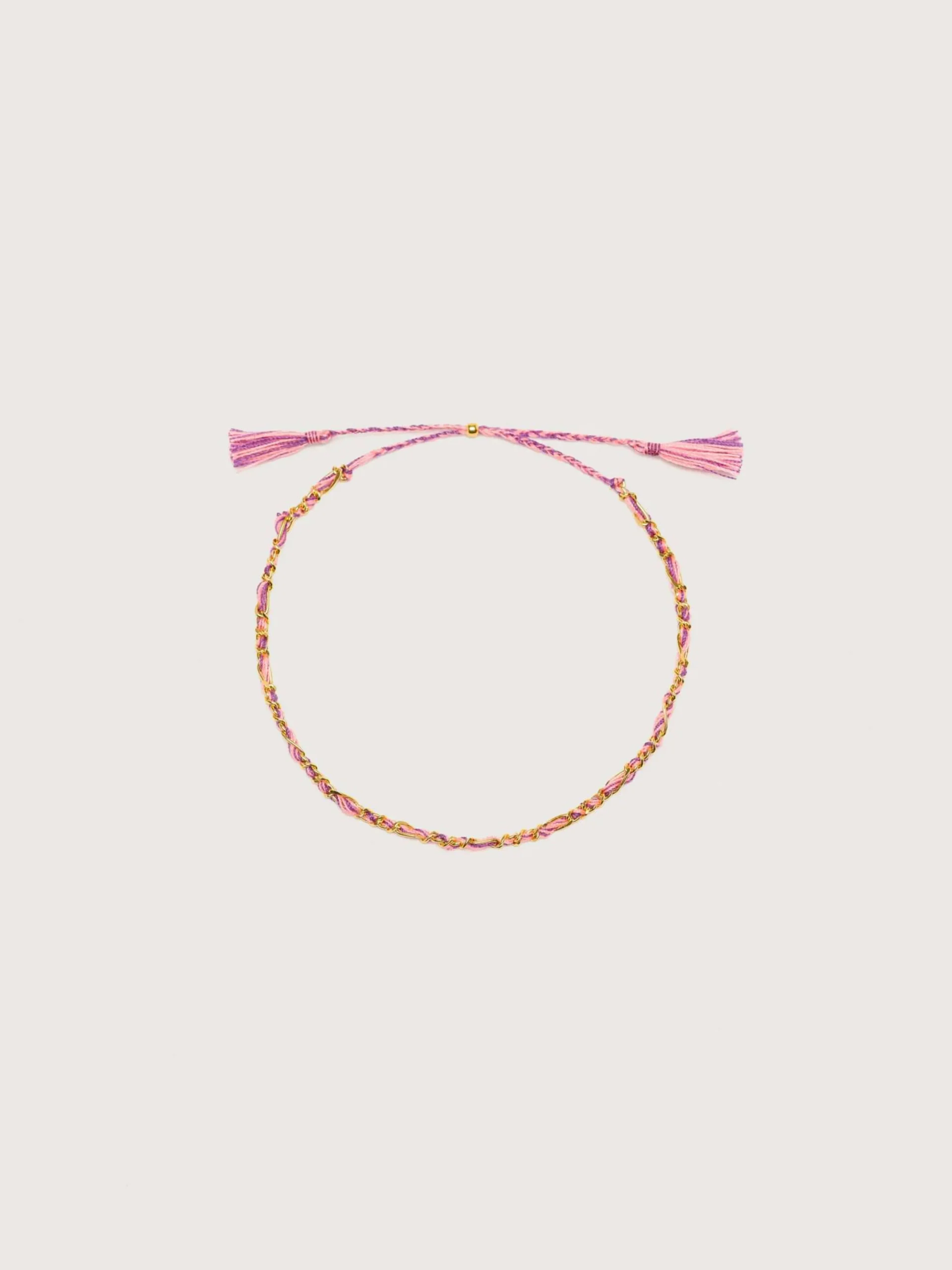 Le bracelet Borderline est une chaîne tressée en argent et en corde, ajustable et fabriquée à la main.