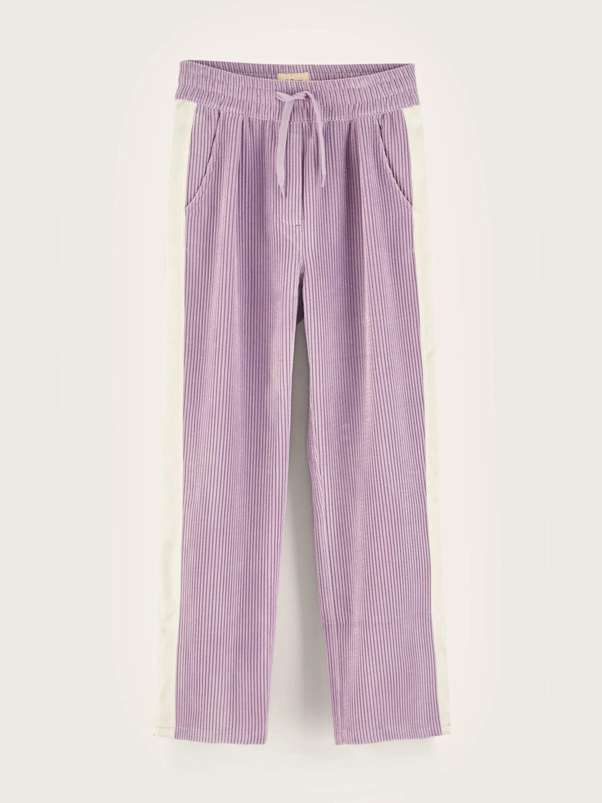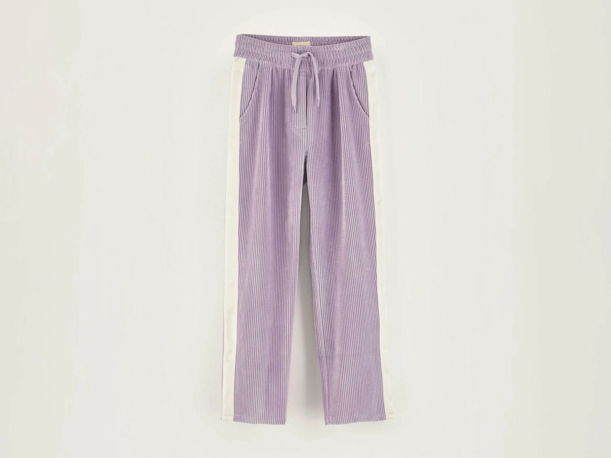 Pantalon de jogging, taille haute et jambes droites fabriqué en velours côtelé couleur lavande.