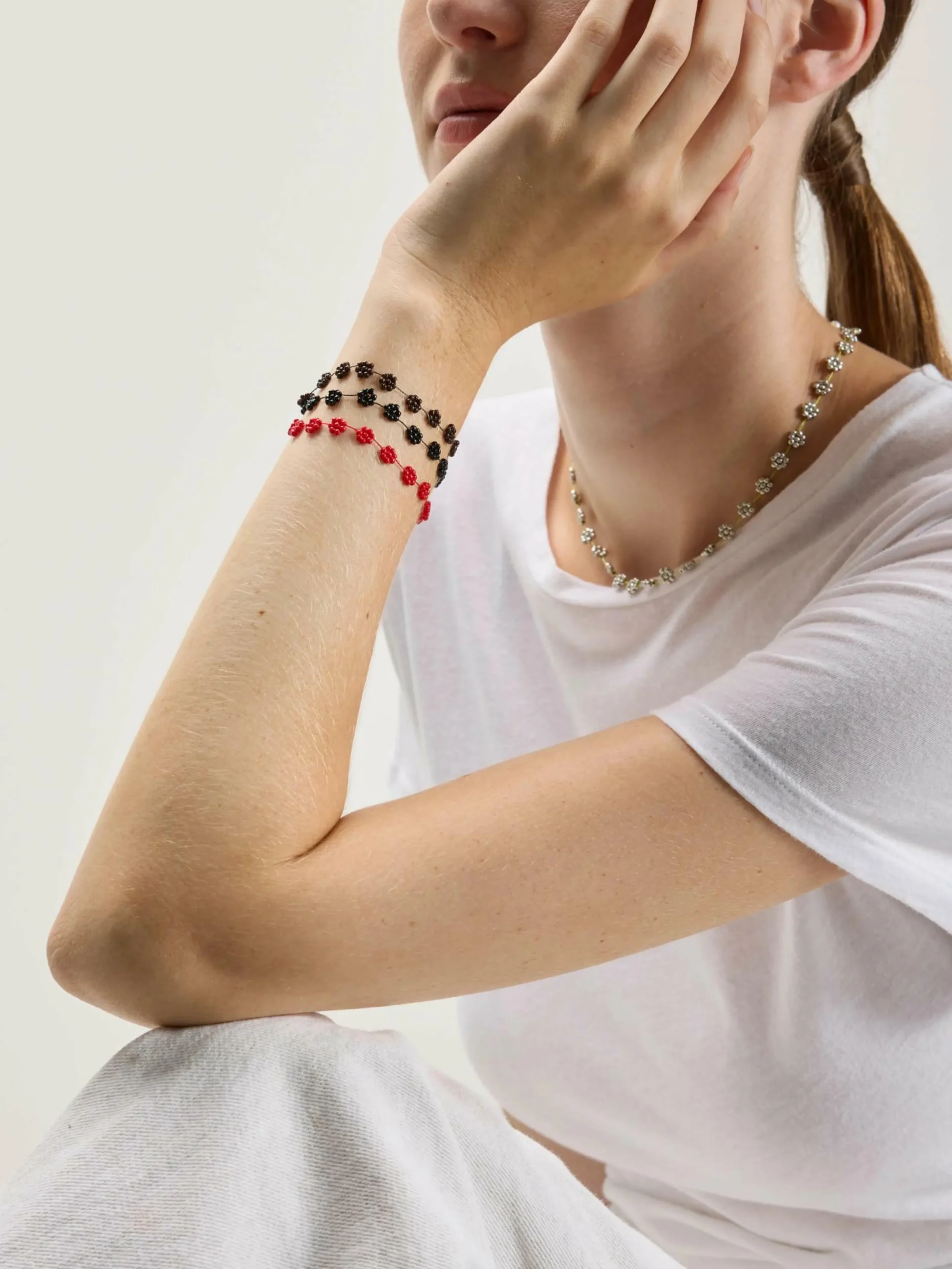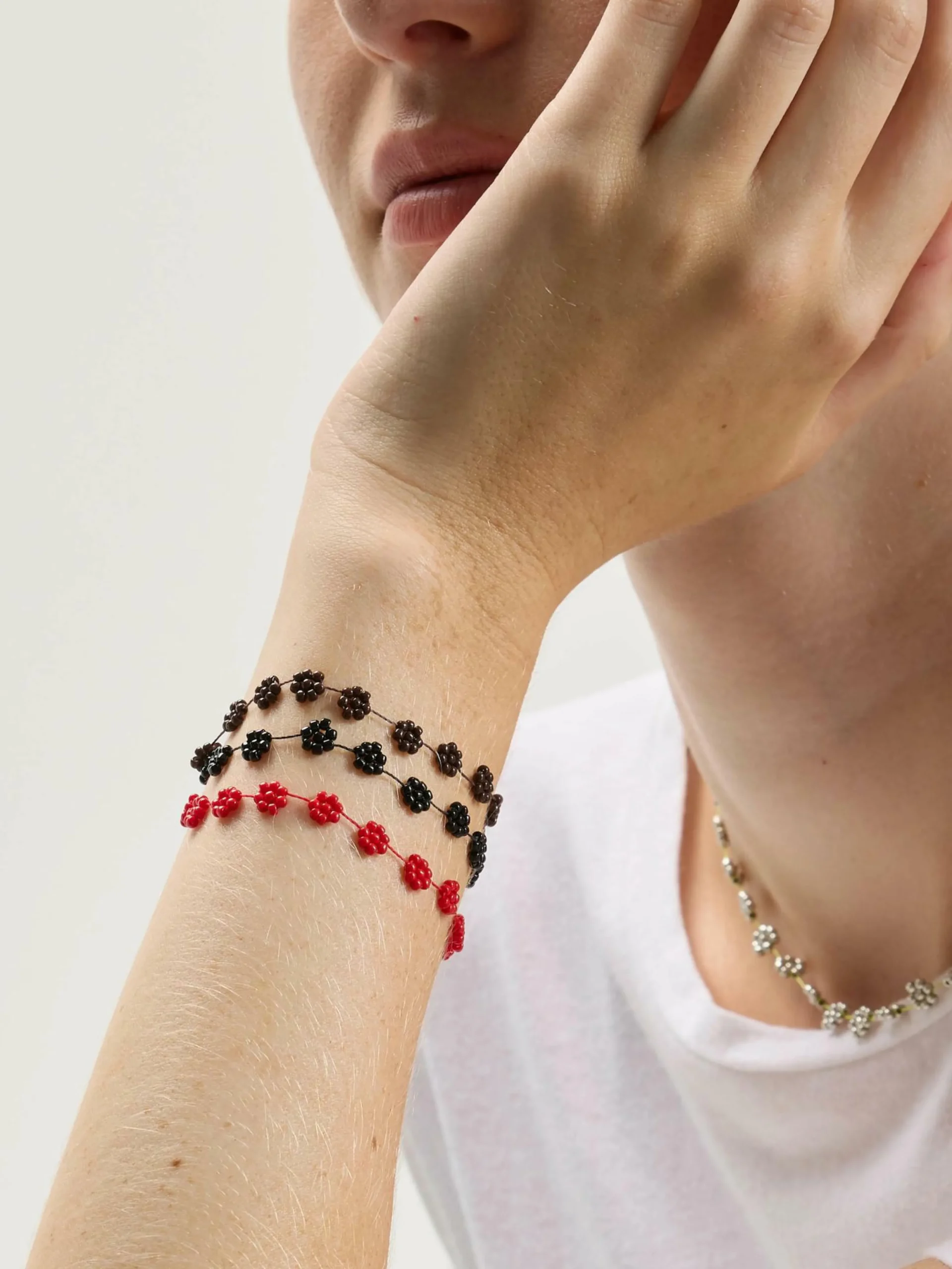 Le charmant bracelet Labro Fiori est composé de perles de verre montées sur un fil de nylon durable et doté d’un solide fermoir.