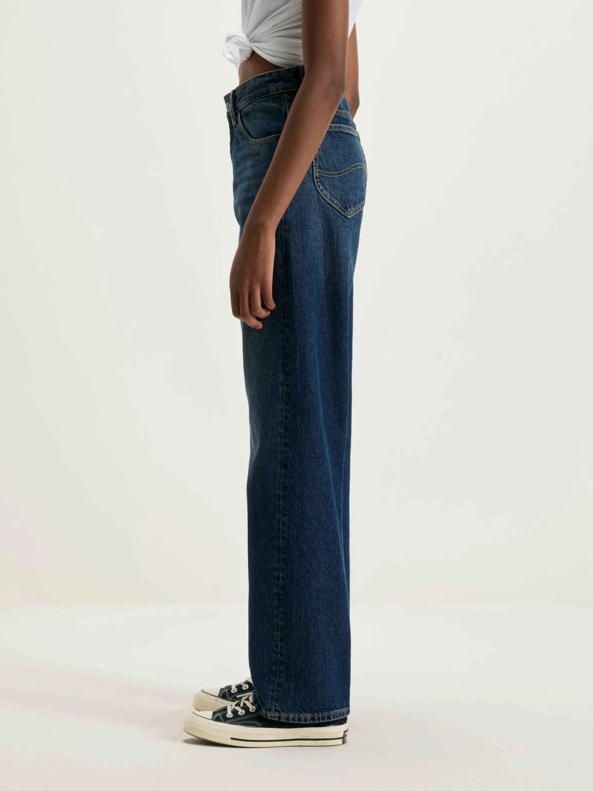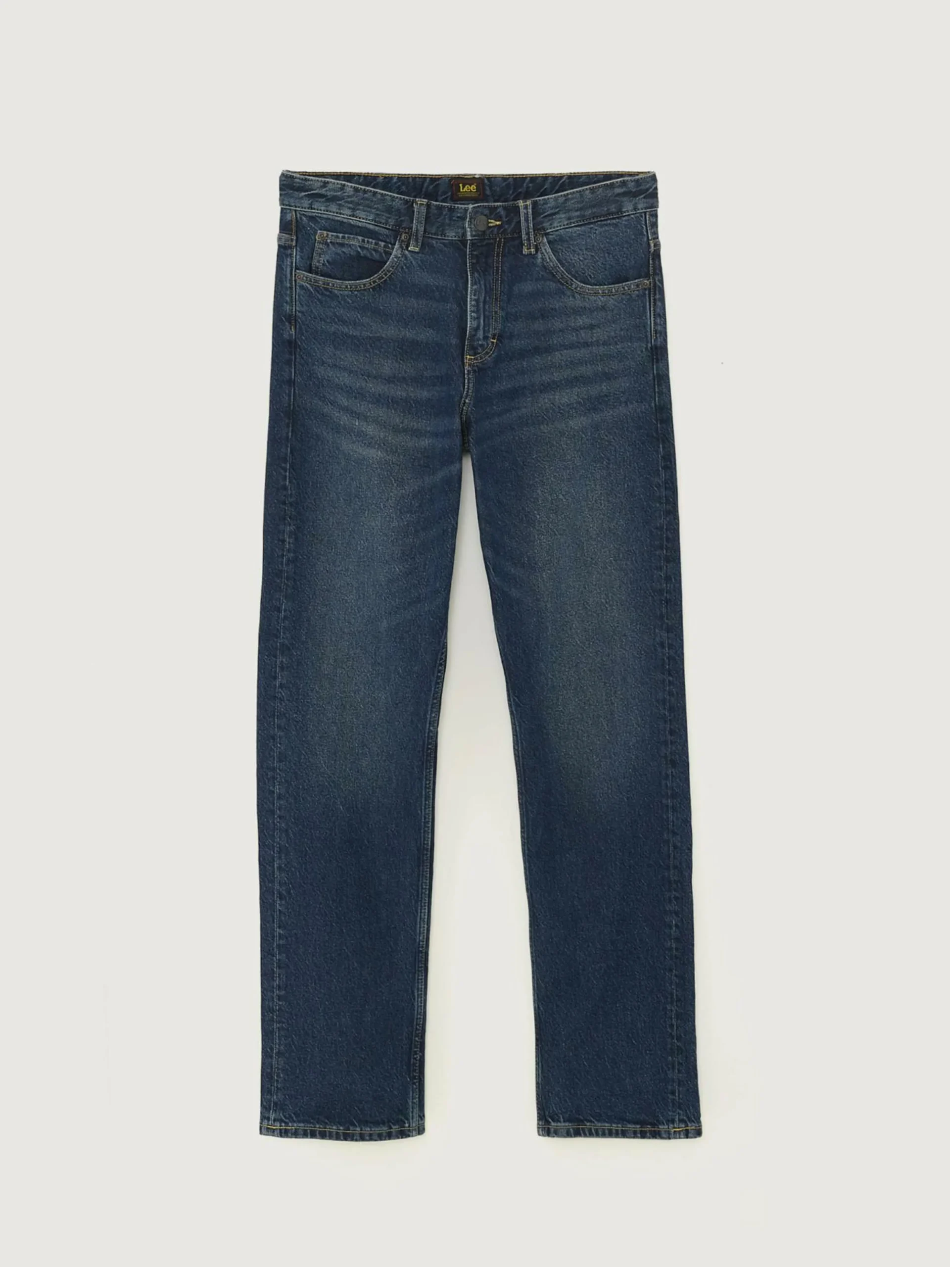 Le jean Lee Rider Classic low-stretch en Hyper Dark présente une coupe décontractée.