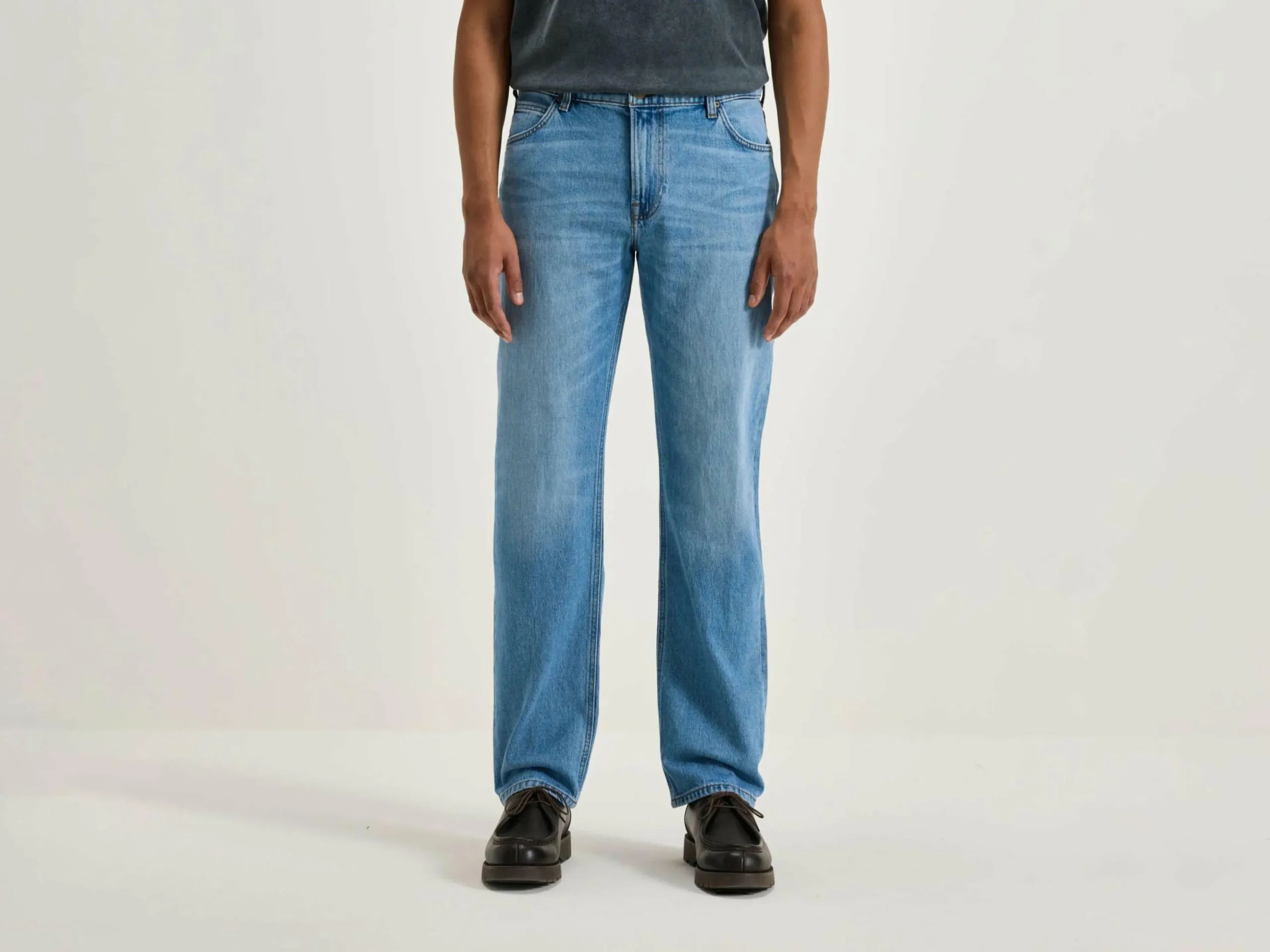 Le jean décontracté en coton biologique Lee West pour homme présente une taille standard, des cuisses et des genoux spacieux, ainsi qu’un soupçon d’élasticité pour une coupe active.