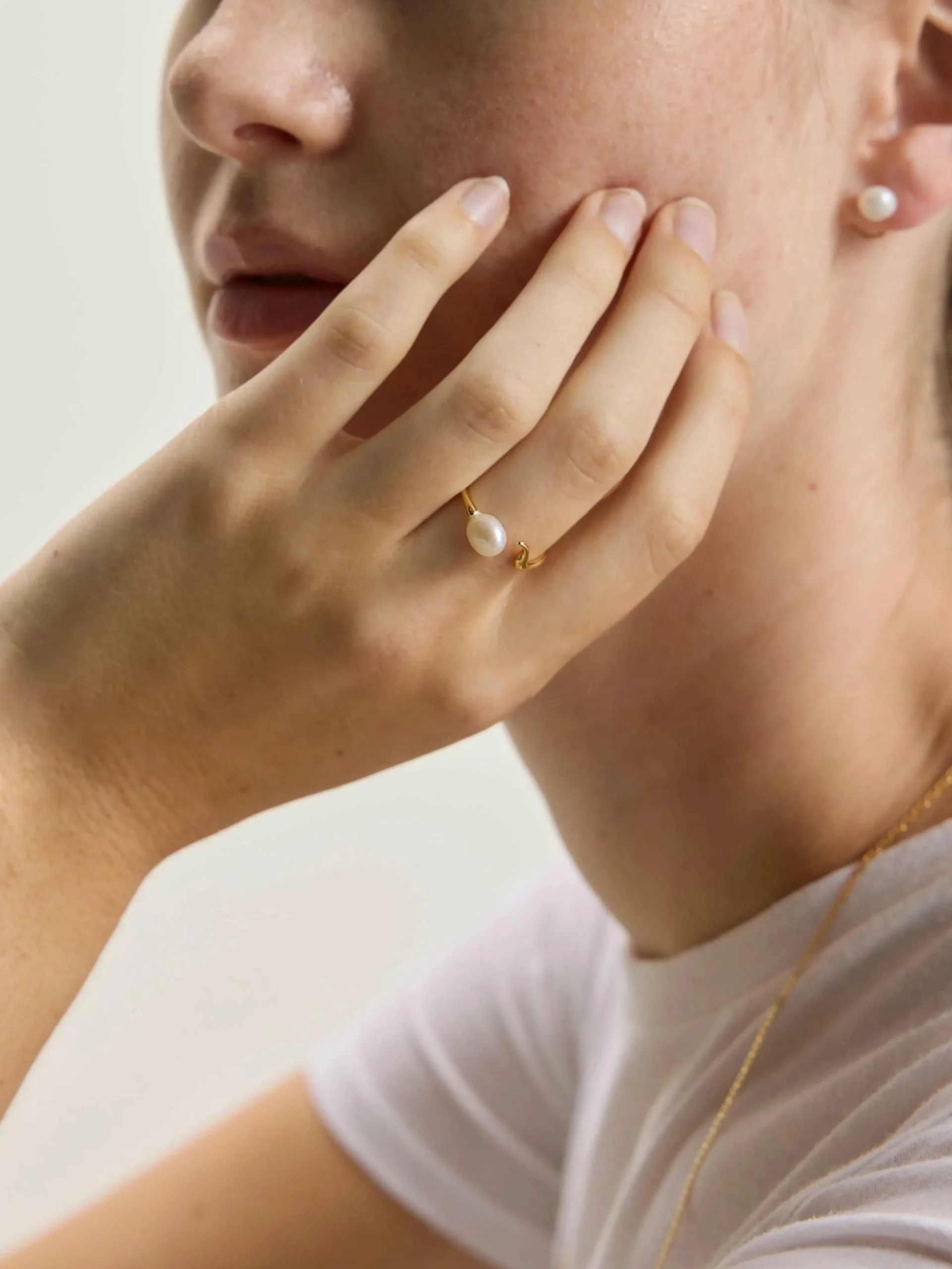 La bague Maria Black Moonshine est ornée d’une perle d’eau douce montée sur un anneau en argent recyclé plaqué or 18k.