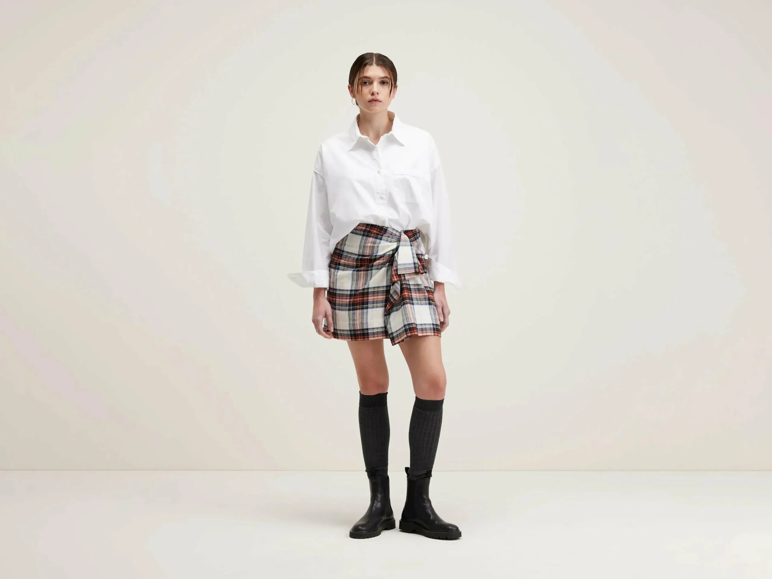 Mini jupe drapée en coton а carreaux avec nœud avant.