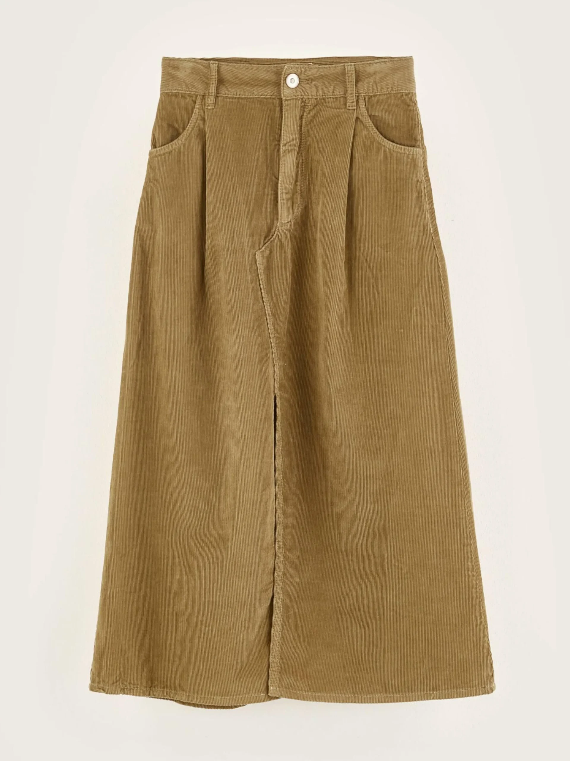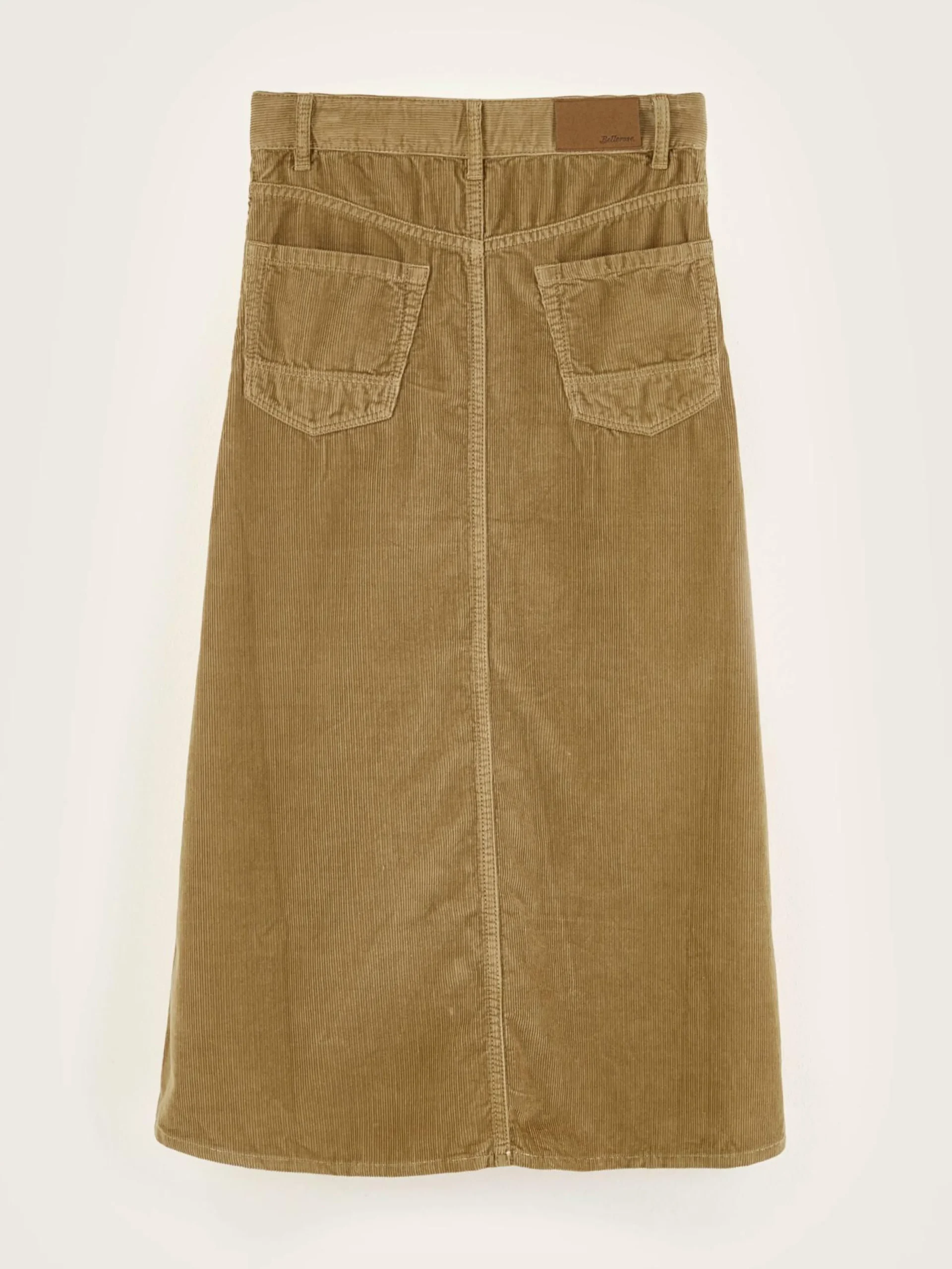 Jupe midi en vinyl de couleur kaki.