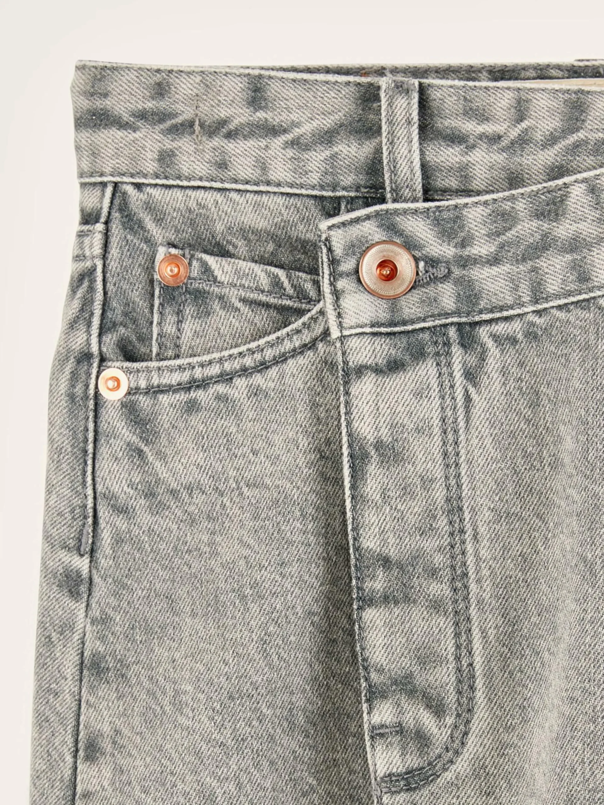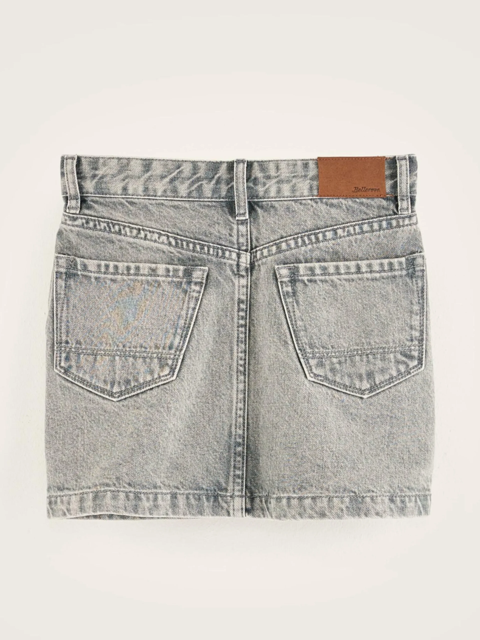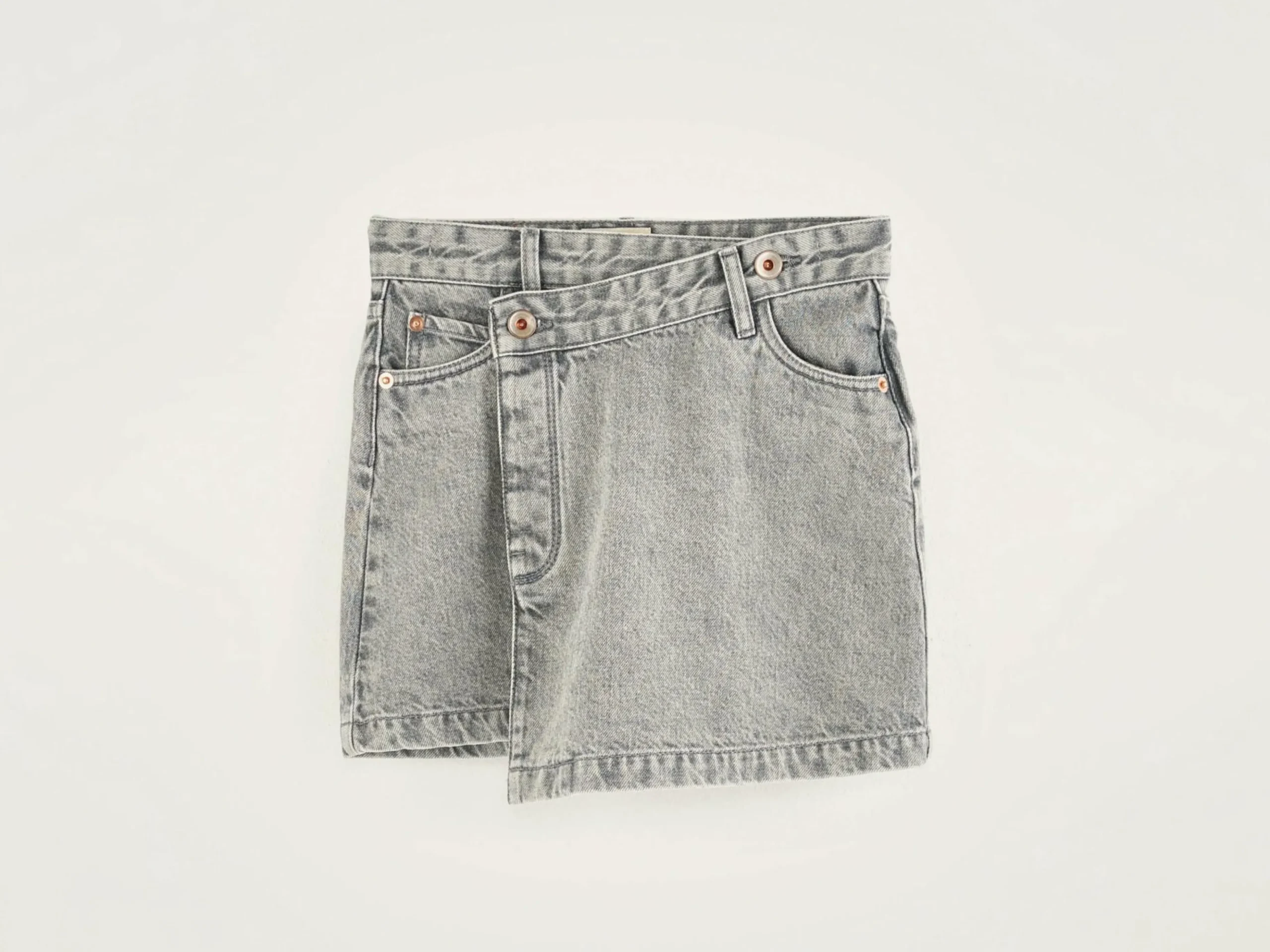 Minijupe portefeuille en denim couleur grey stone.