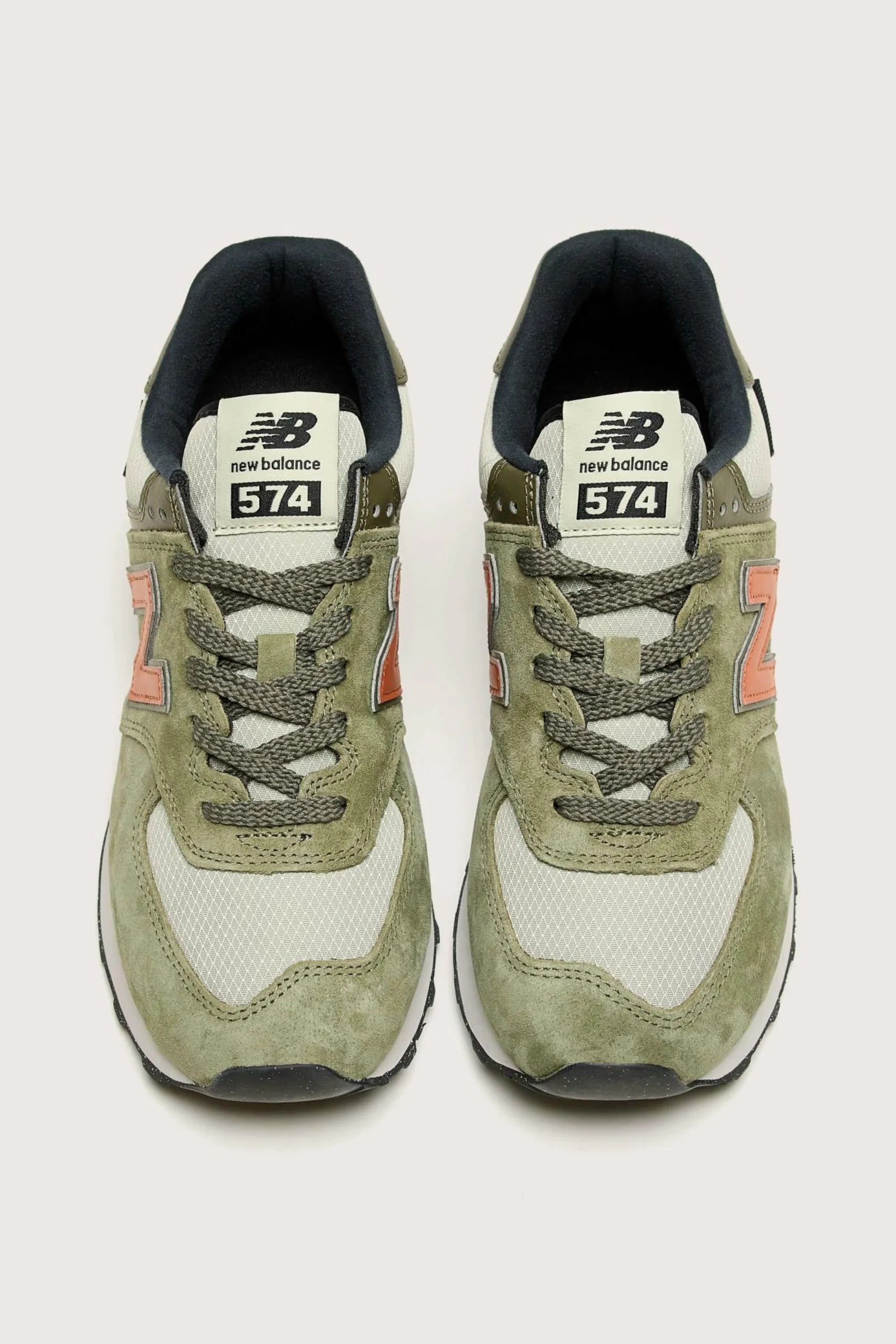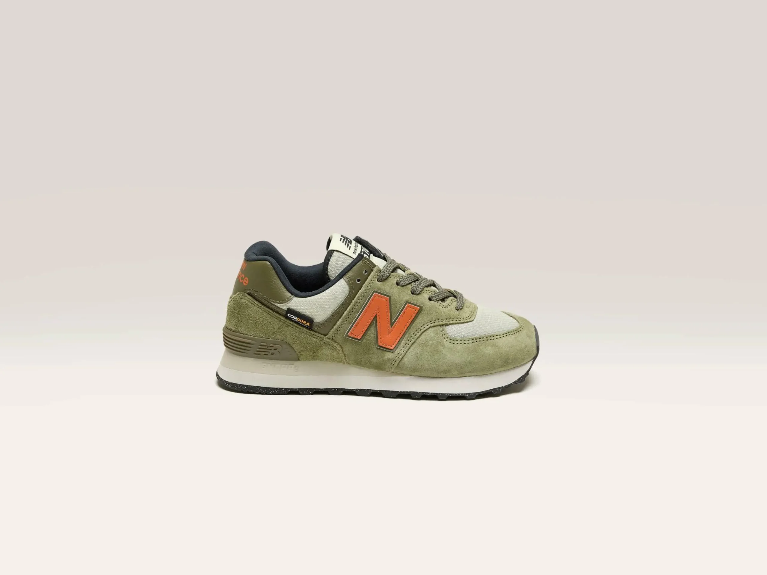 Les sneakers lifestyle New Balance 574 présentent un design hybride route/trail en suède avec un amorti EVA léger.