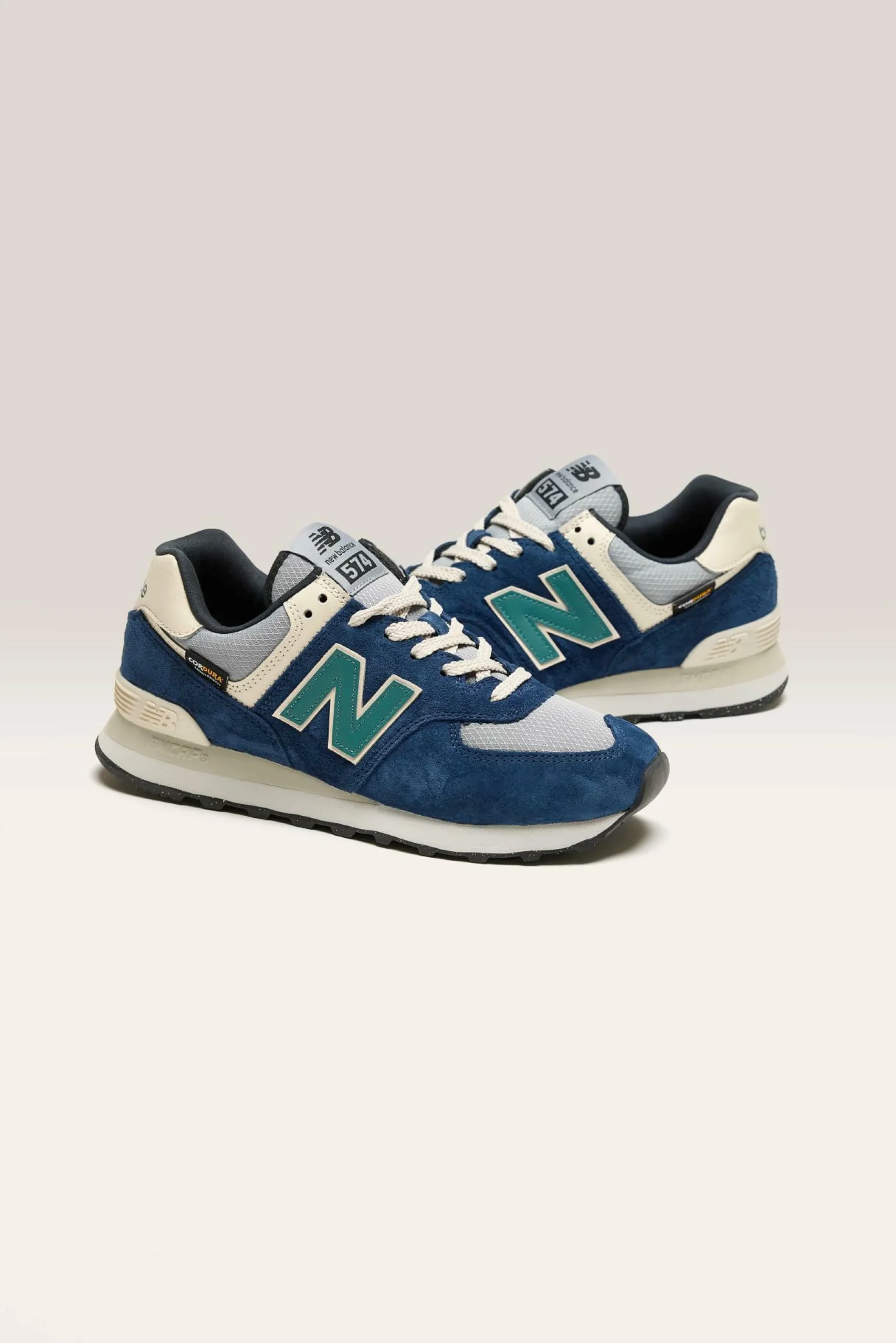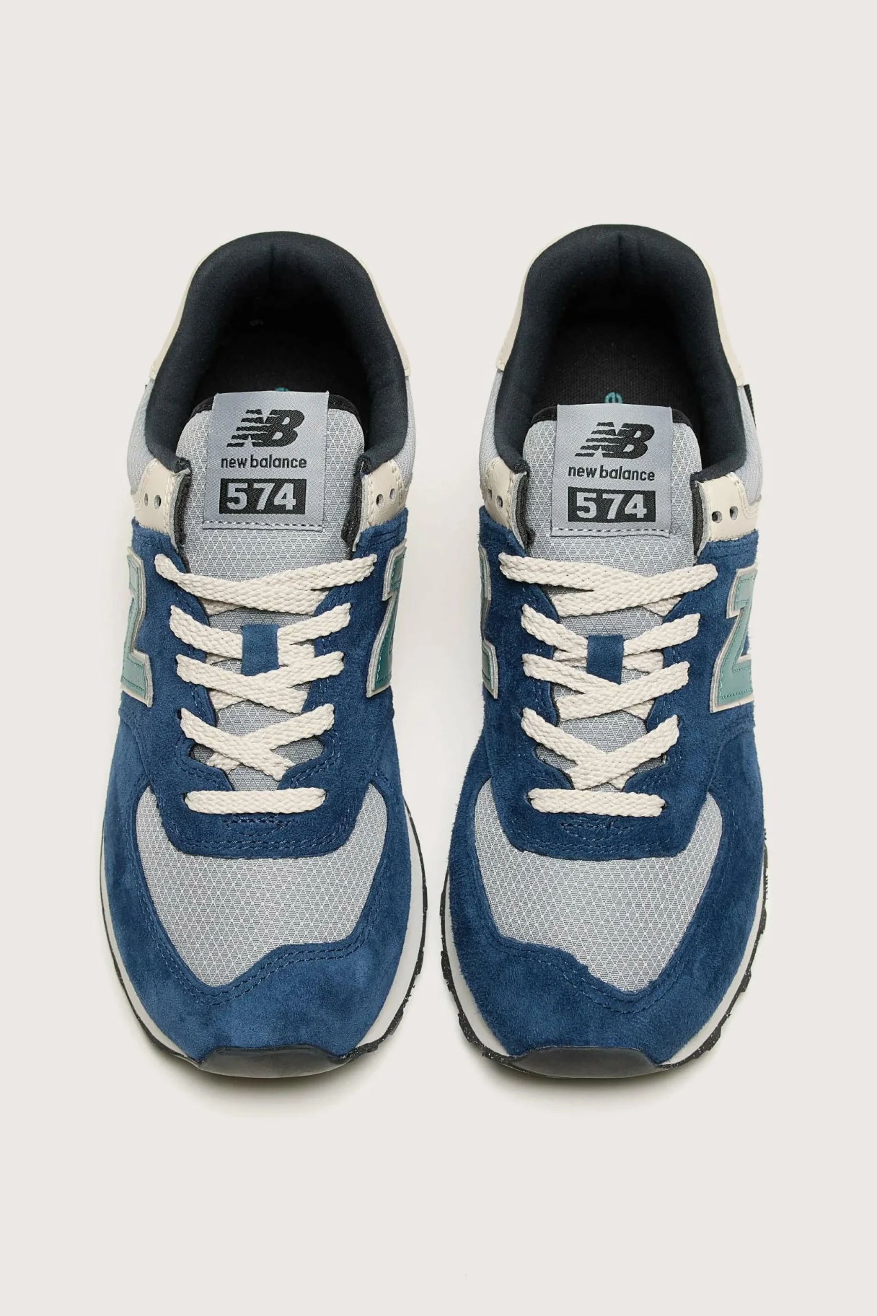Les sneakers lifestyle New Balance 574 présentent un design hybride route/trail en suède avec un amorti EVA léger.