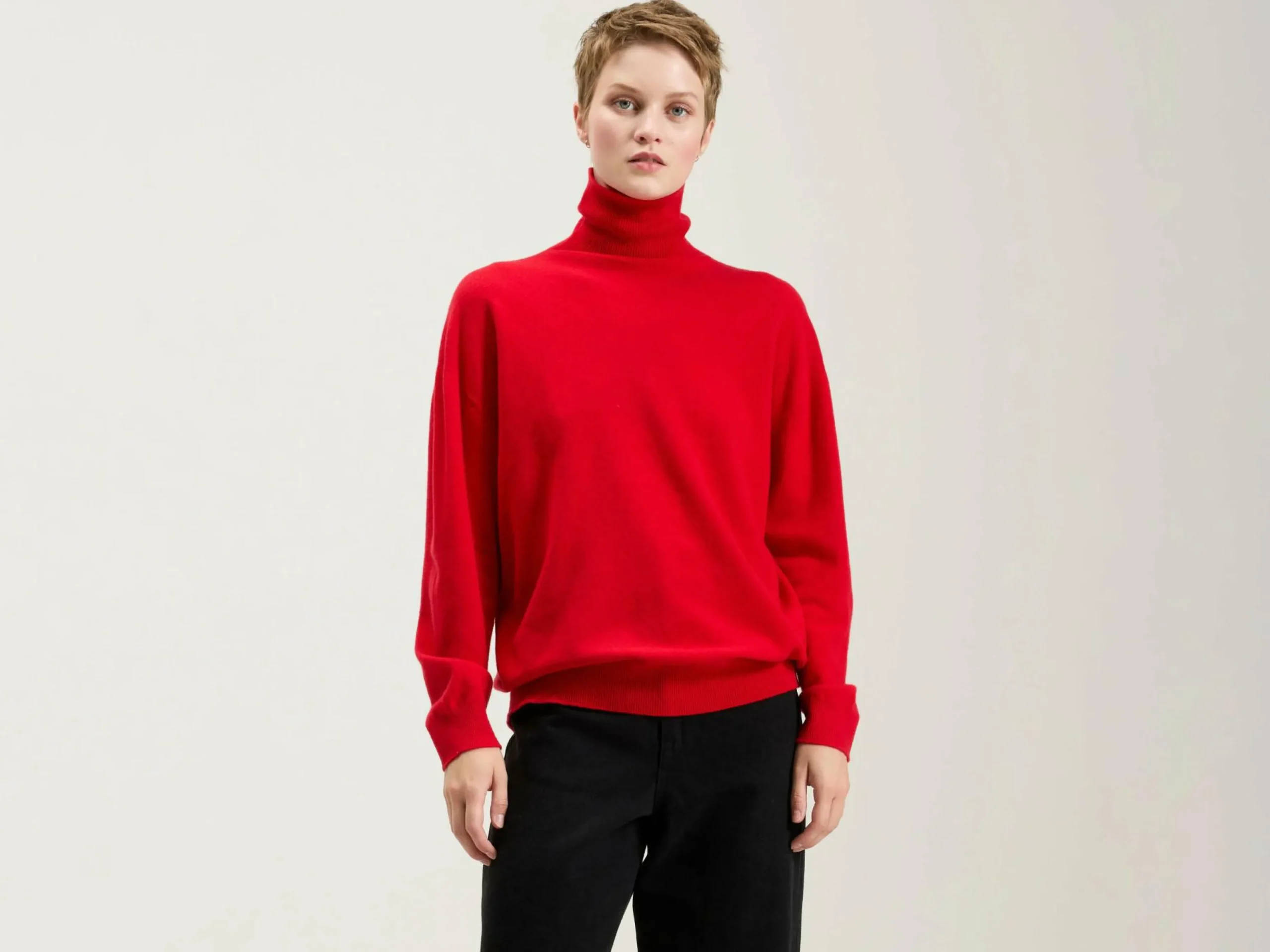 Le pull à col roulé Polly de la marque japonaise de luxe Nicholson & Nicholson présente une coupe décontractée en pure laine mérino.