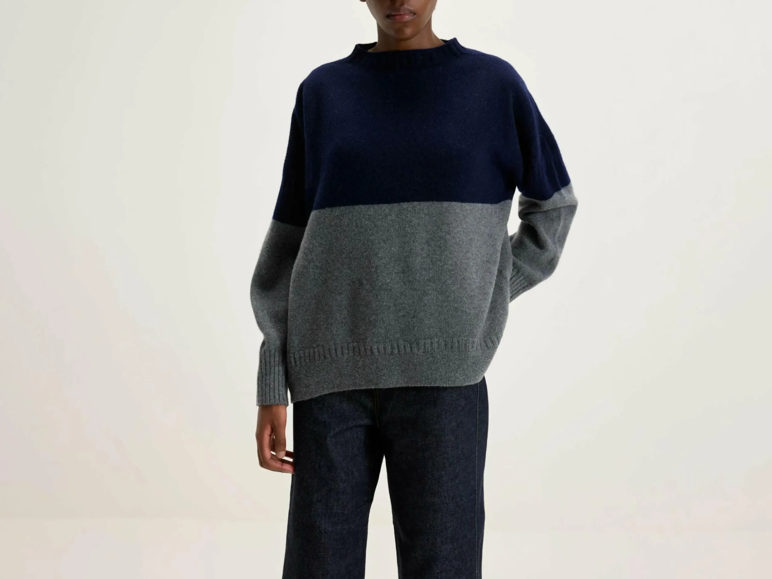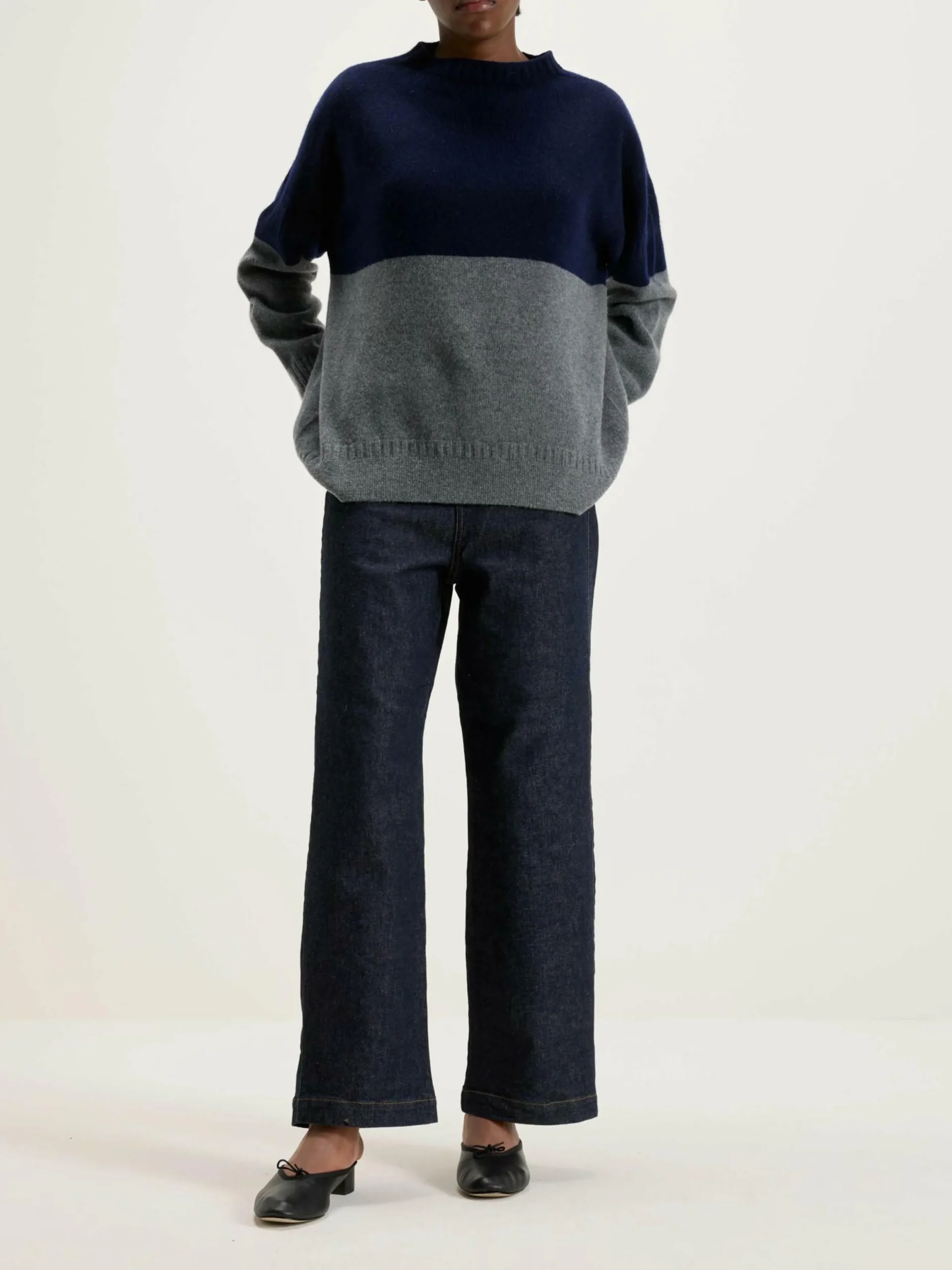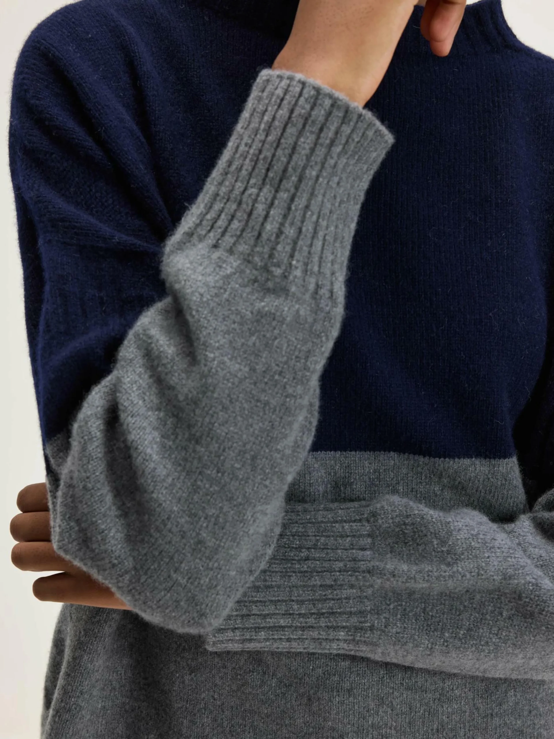 Le pull à col montant Hariot de la marque japonaise de luxe Nicholson & Nicholson présente une coupe polyvalente à enfiler et un col court, réalisés dans un motif de tricot de pêcheur doux.