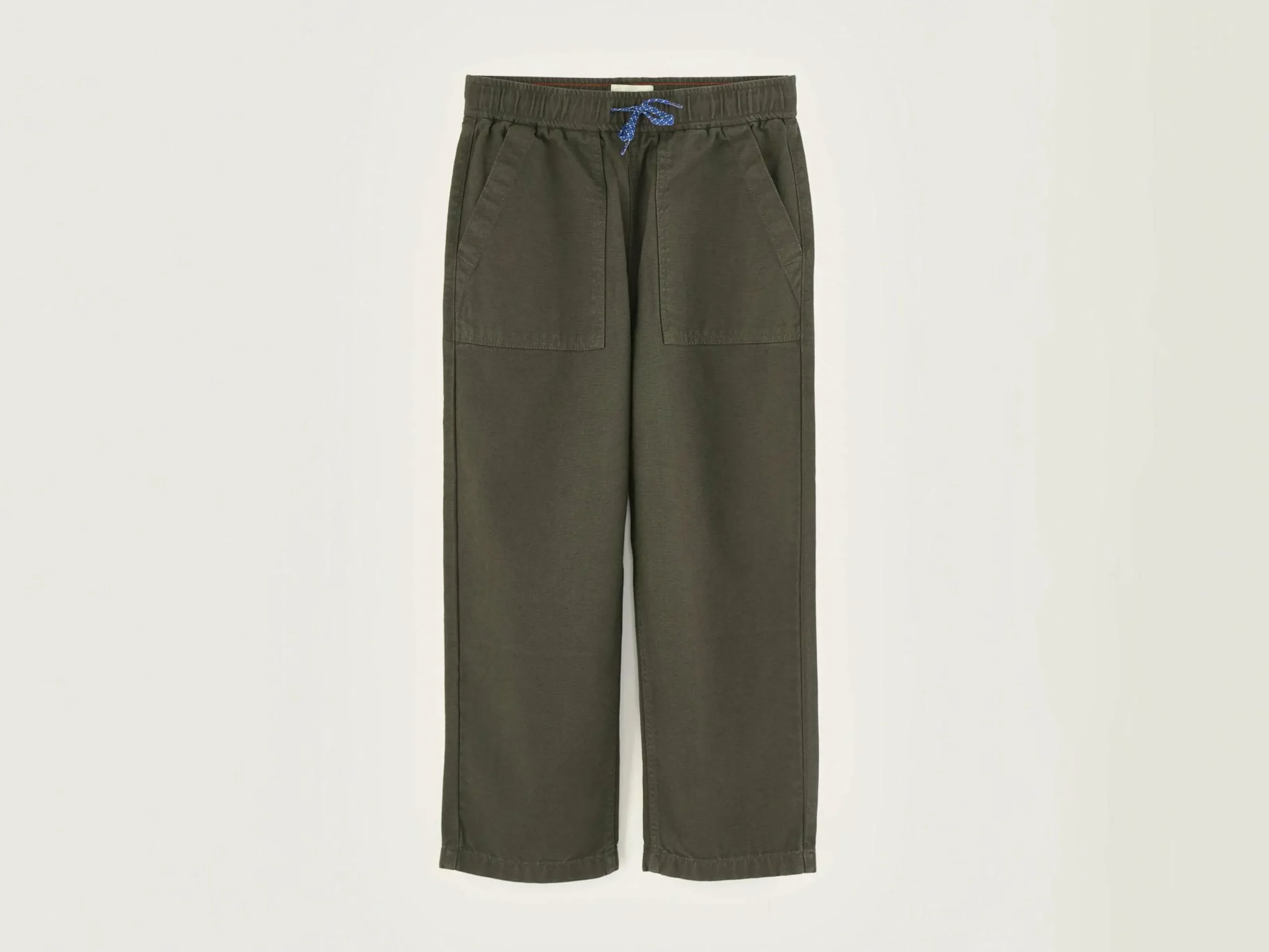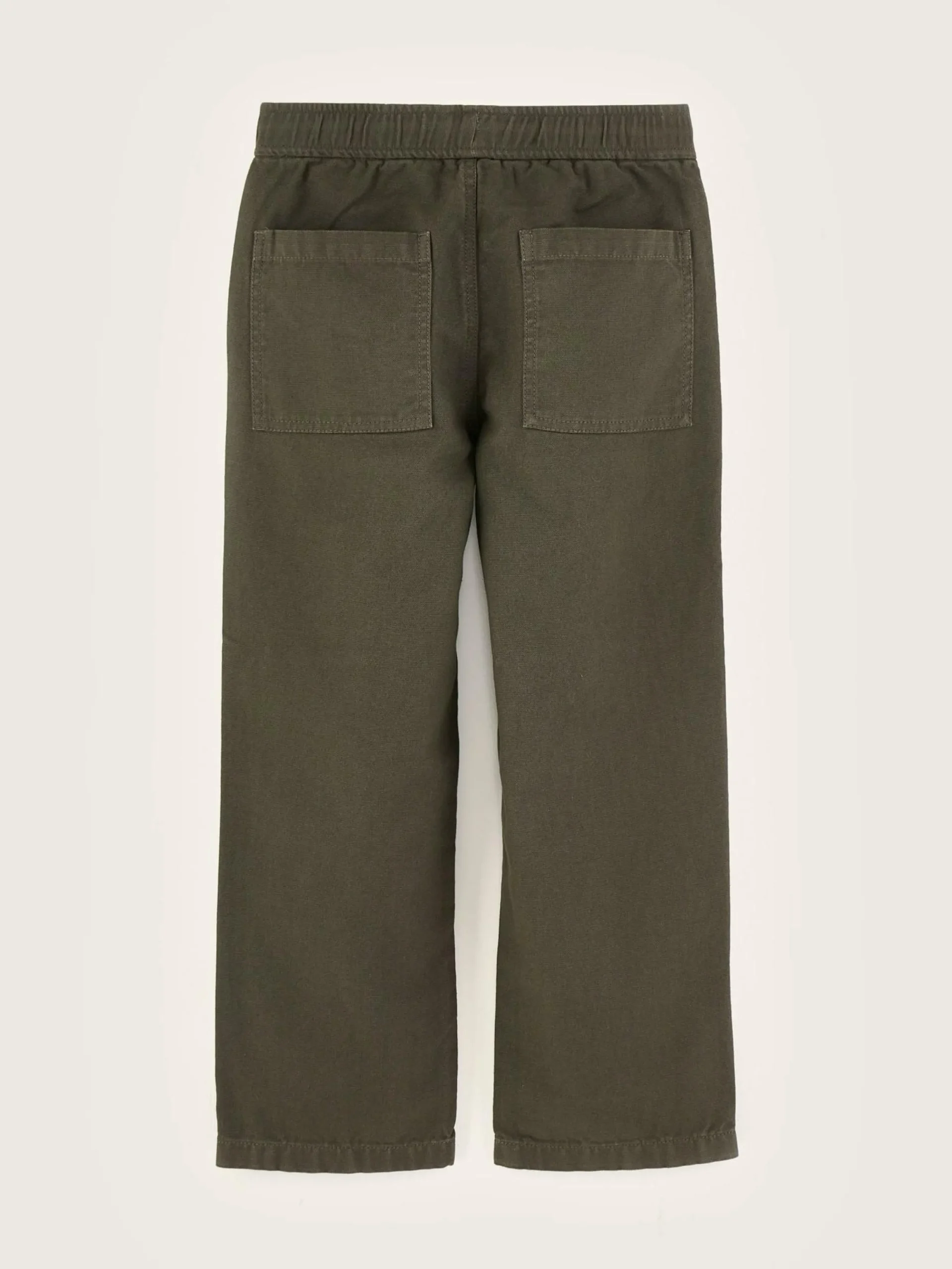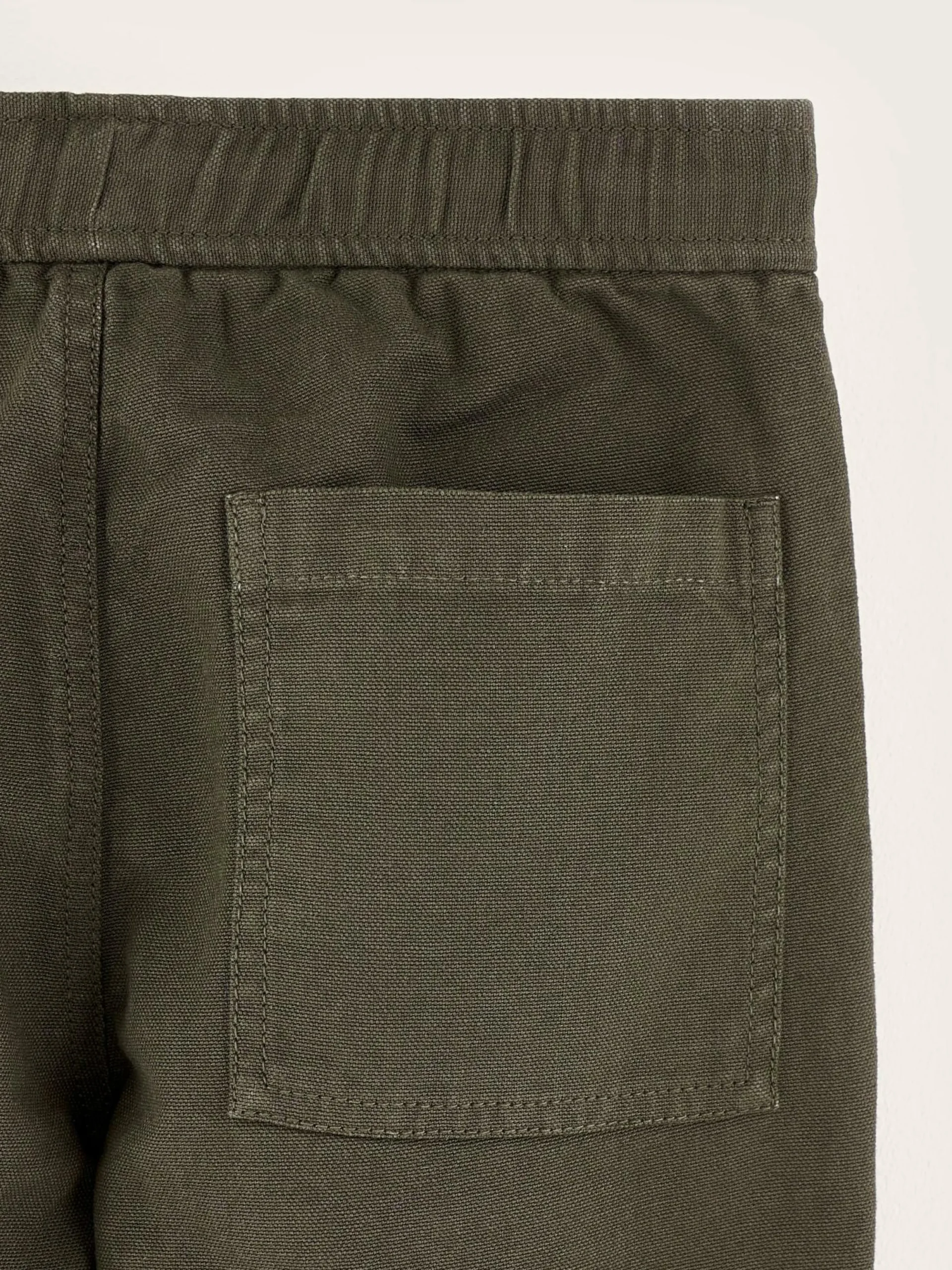 Pantalon baggy en toile de coton vert kaki, coupe décontractée et poches cargo.
