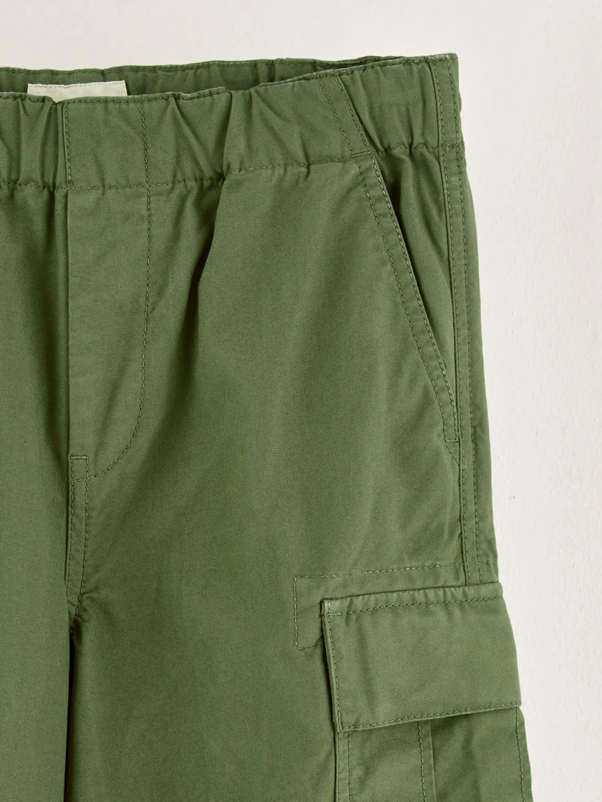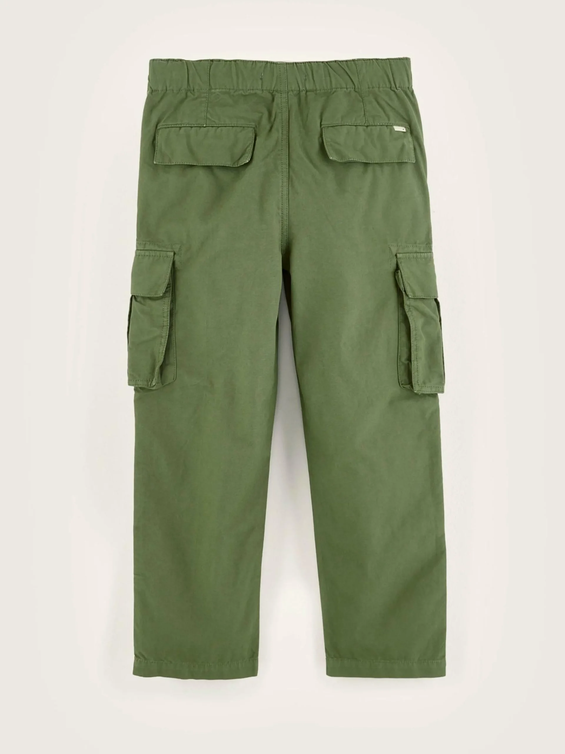 Pantalon cargo décontracté à jambes larges en coton ripstop couleur vert kaki.