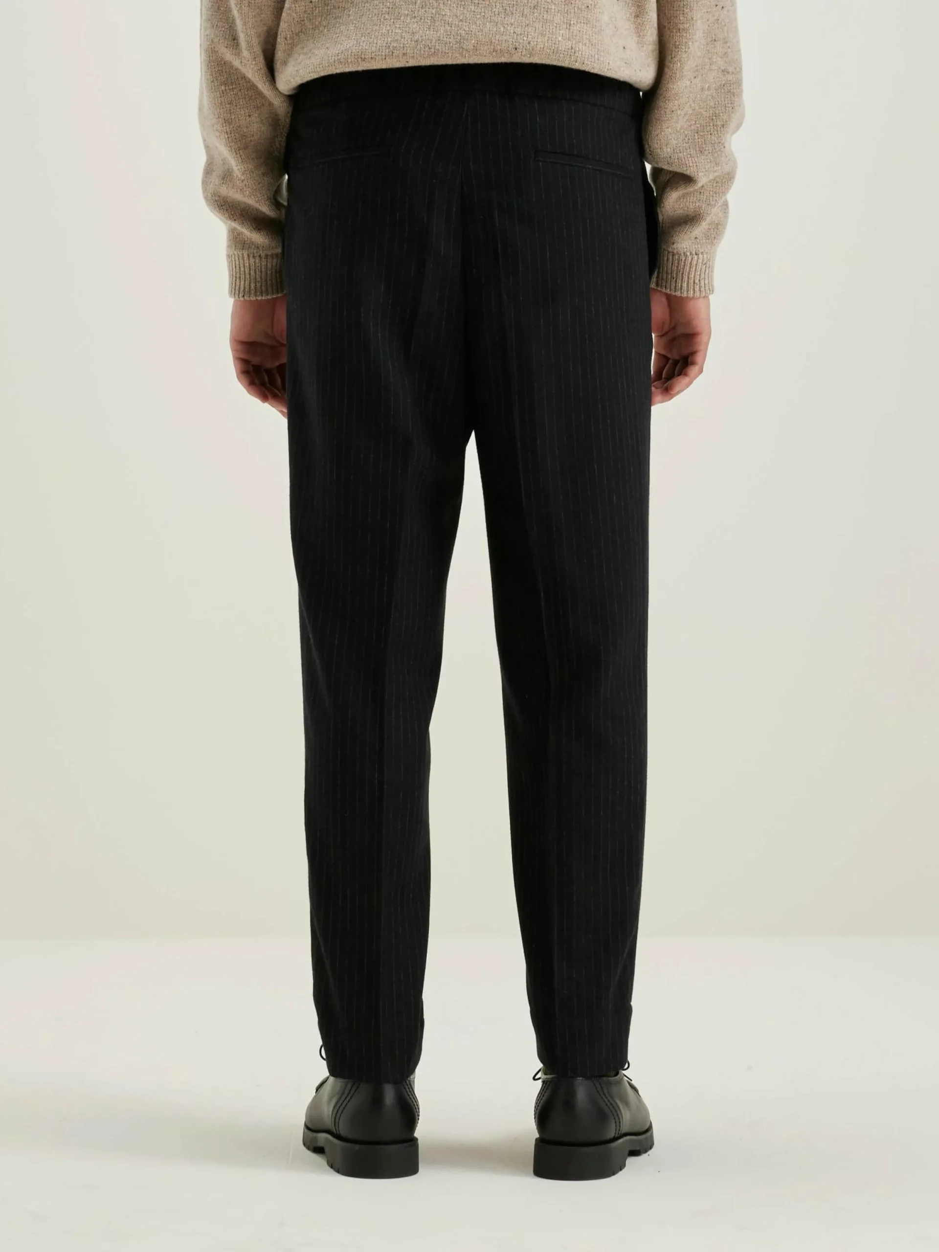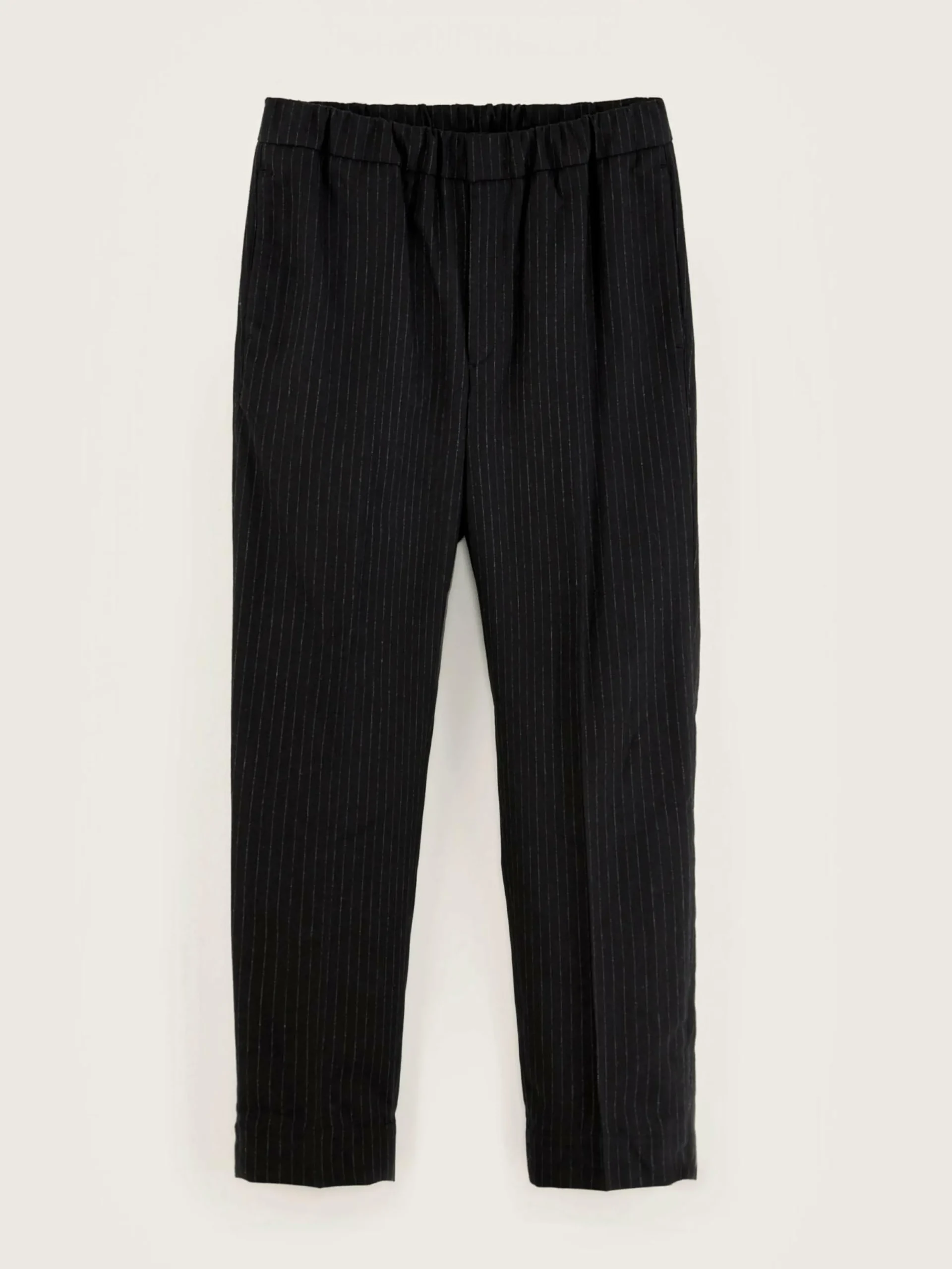 Pantalon décontracté, taille élastiquée et jambes larges et fuselées en tissu rayé.