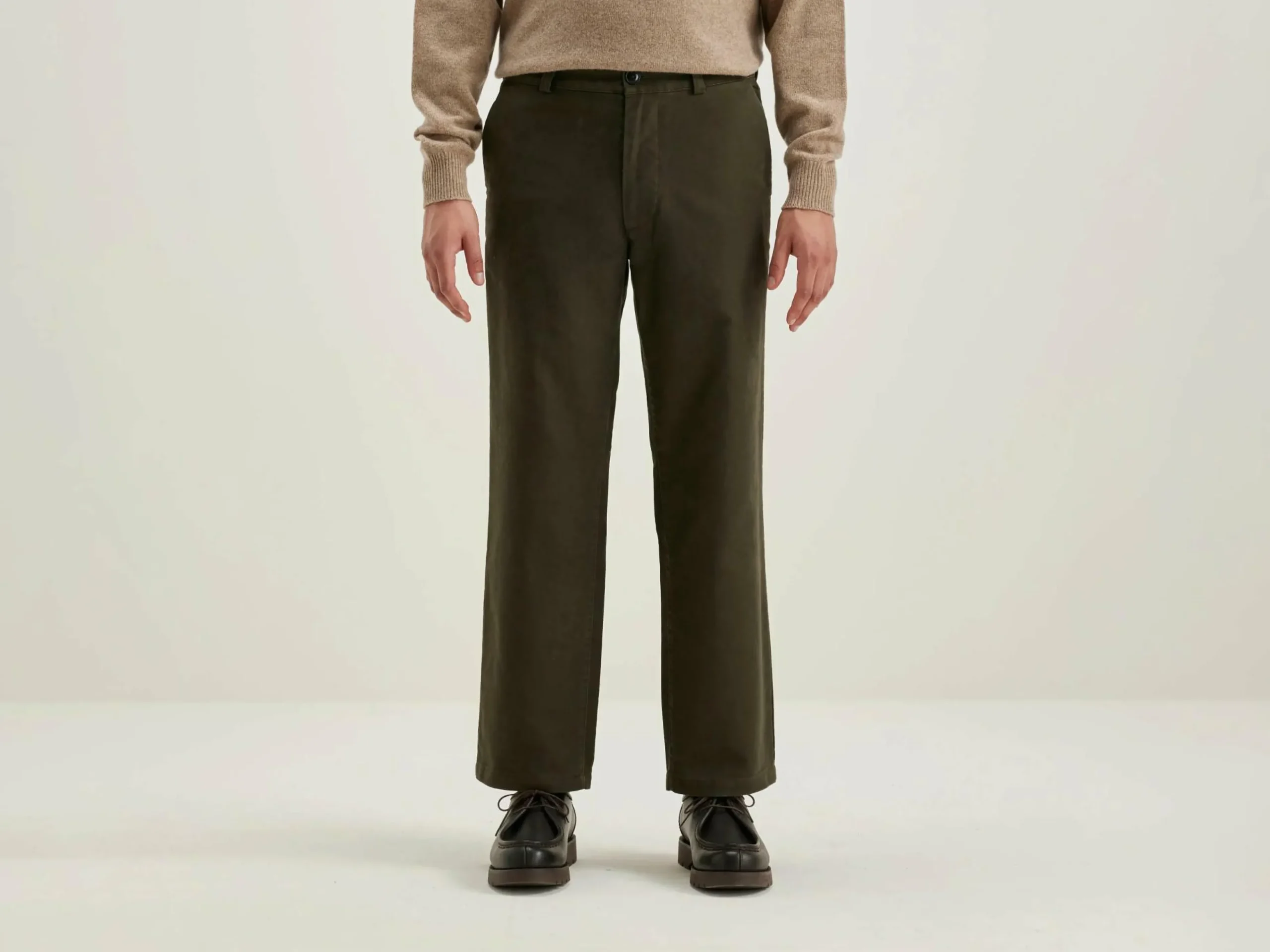 Pantalon minimaliste coupe regular en moleskine de coton dark olive.
