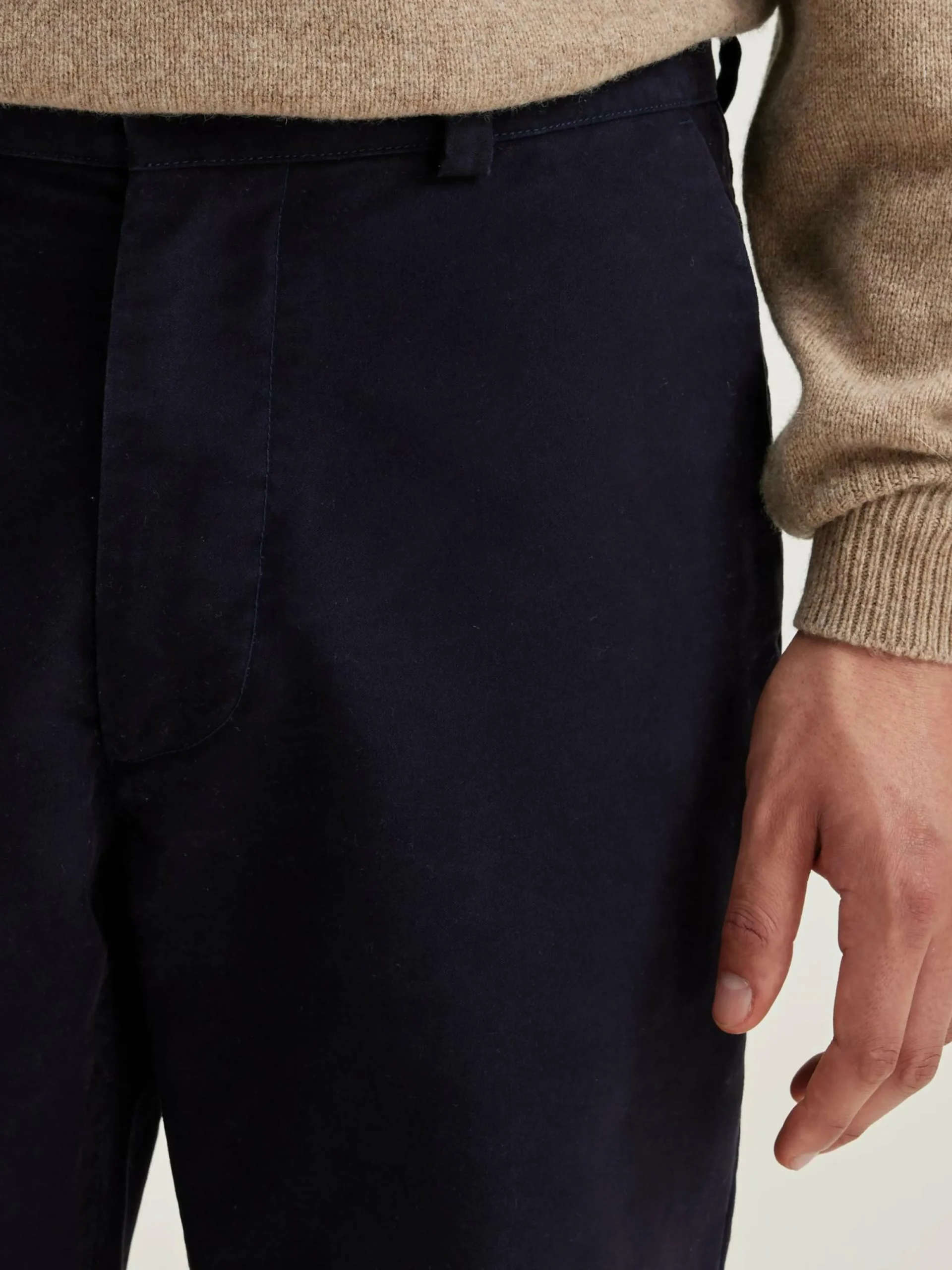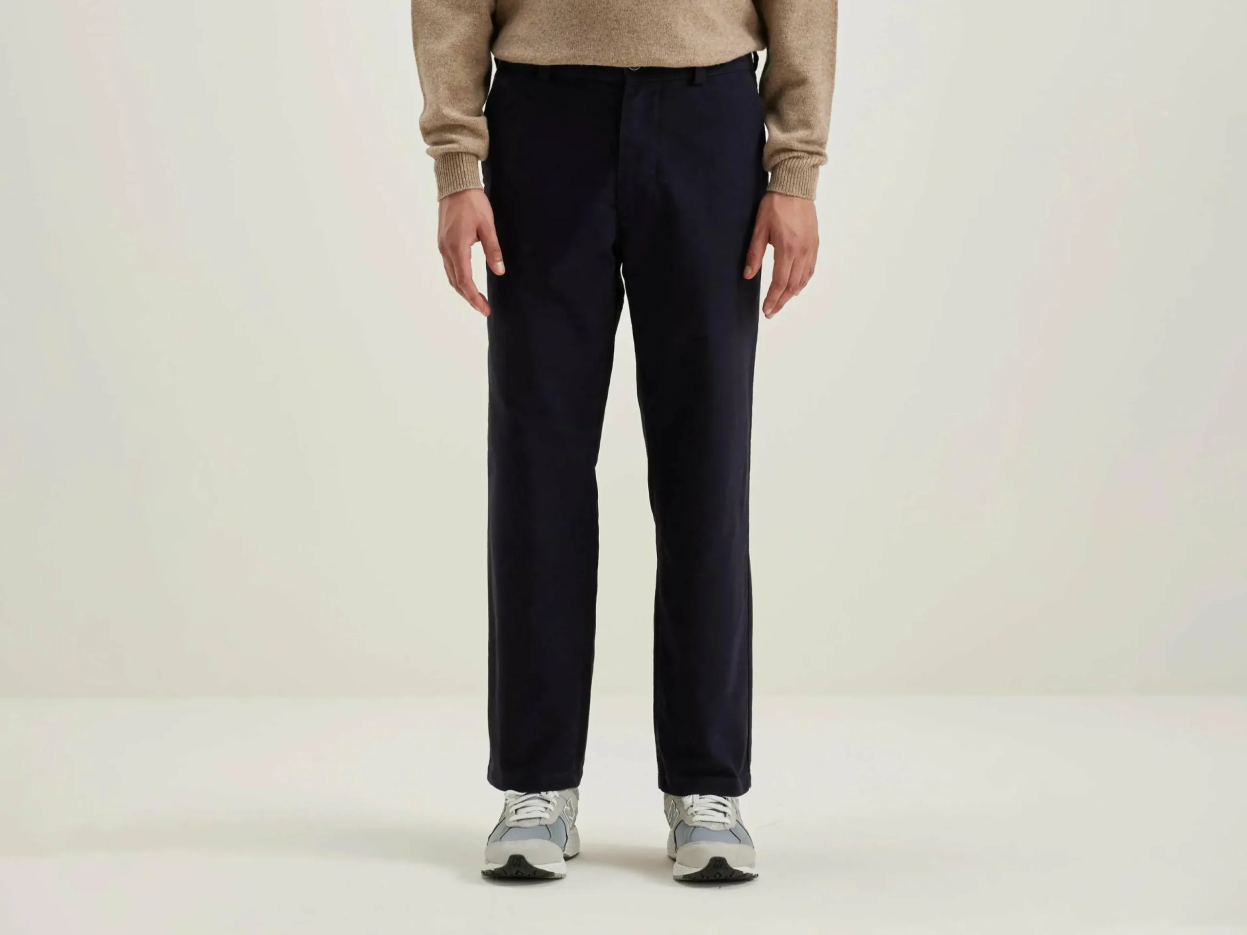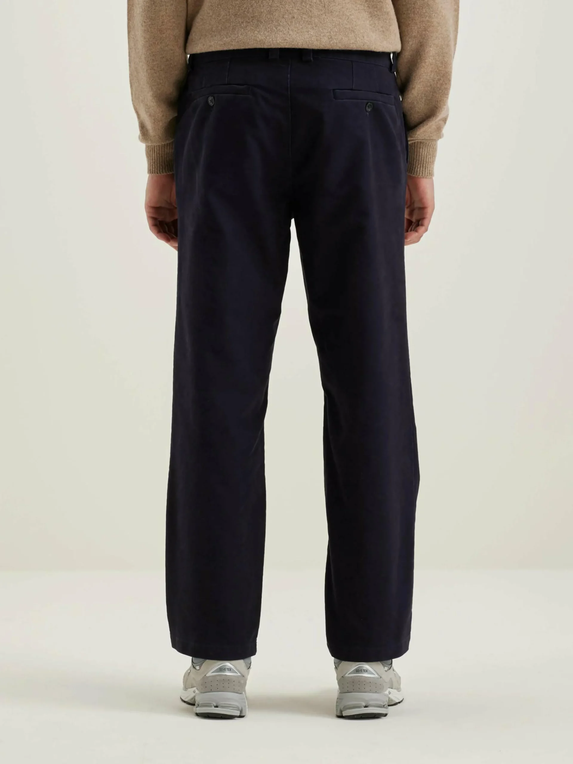 Pantalon minimaliste coupe regular en moleskine de coton bleu-noir.