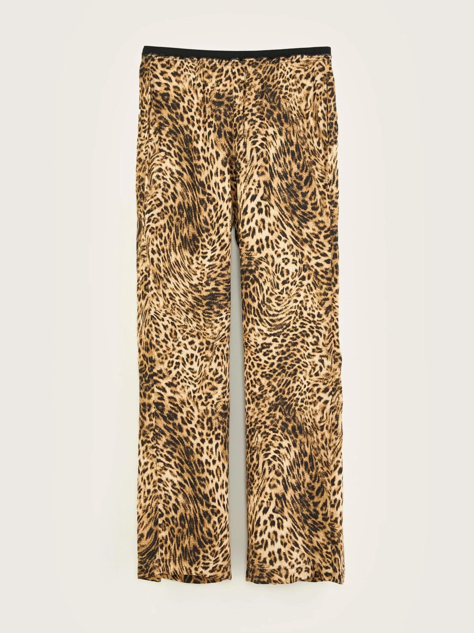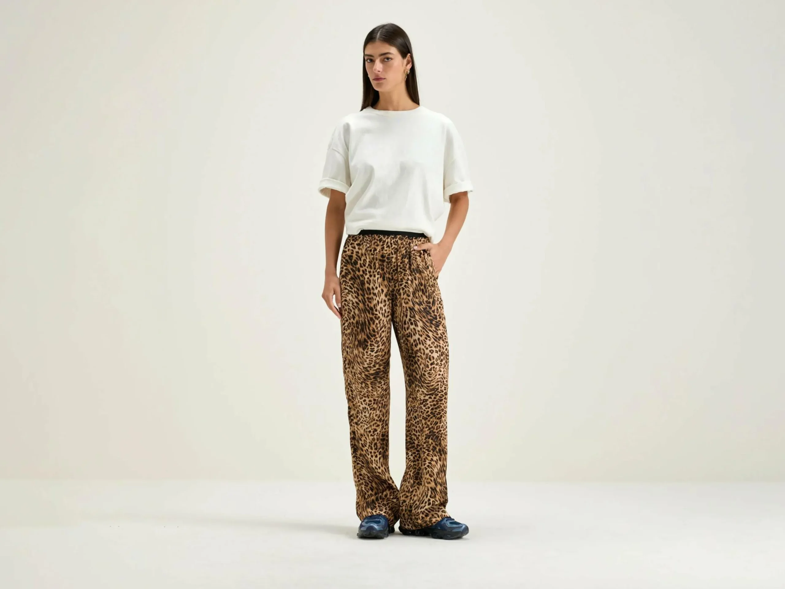 Pantalon droit décontracté avec ceinture élastique contrastée, en tissu imprimé léopard.